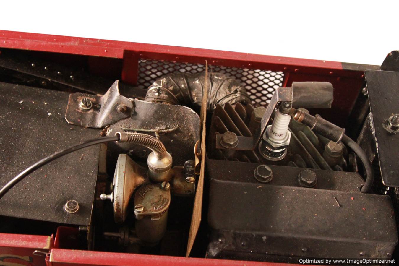 The model is very heavy and powered by a neatly packed in 36cc BSA petrol engine driving through a centrifugal clutch.