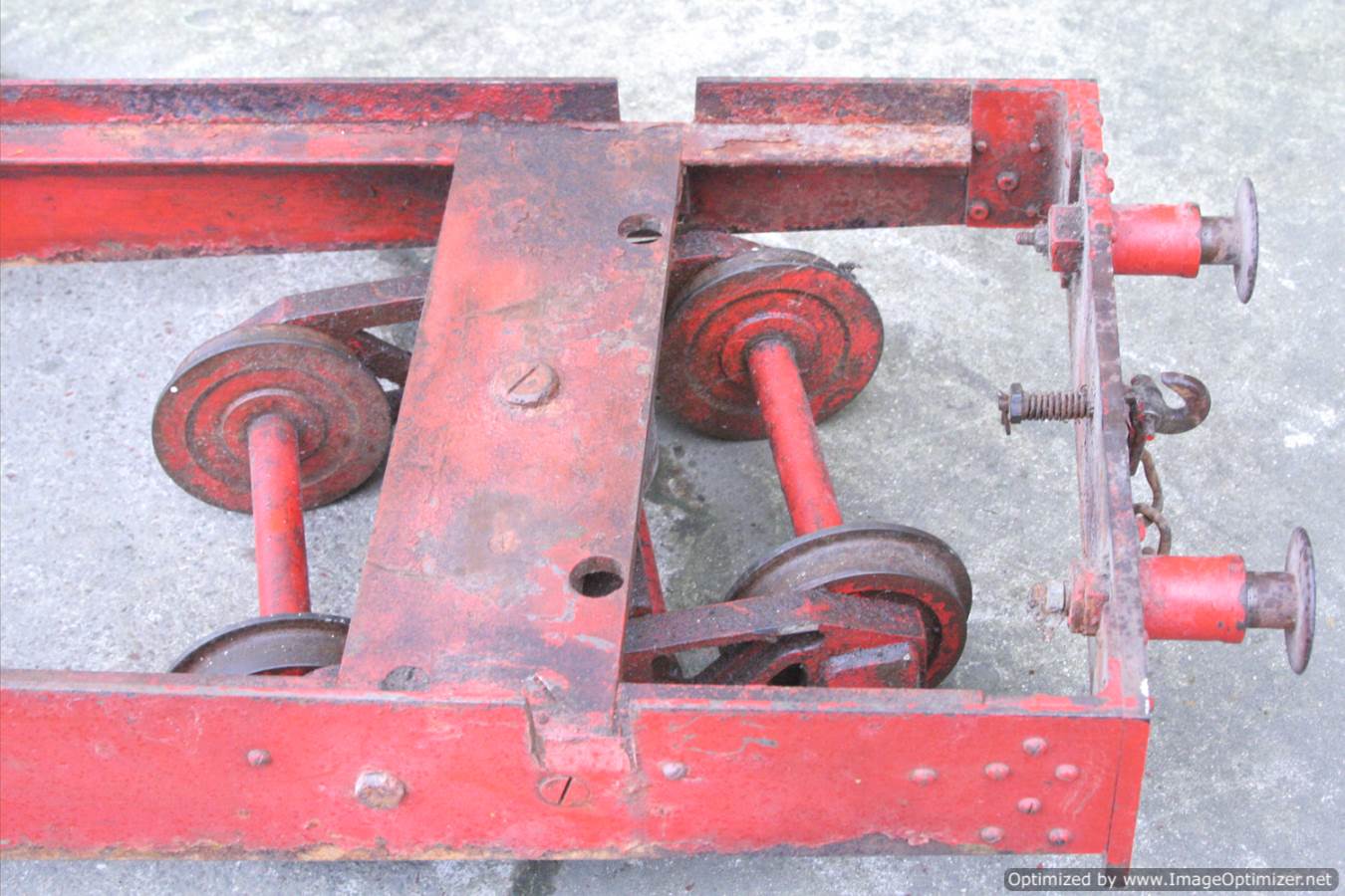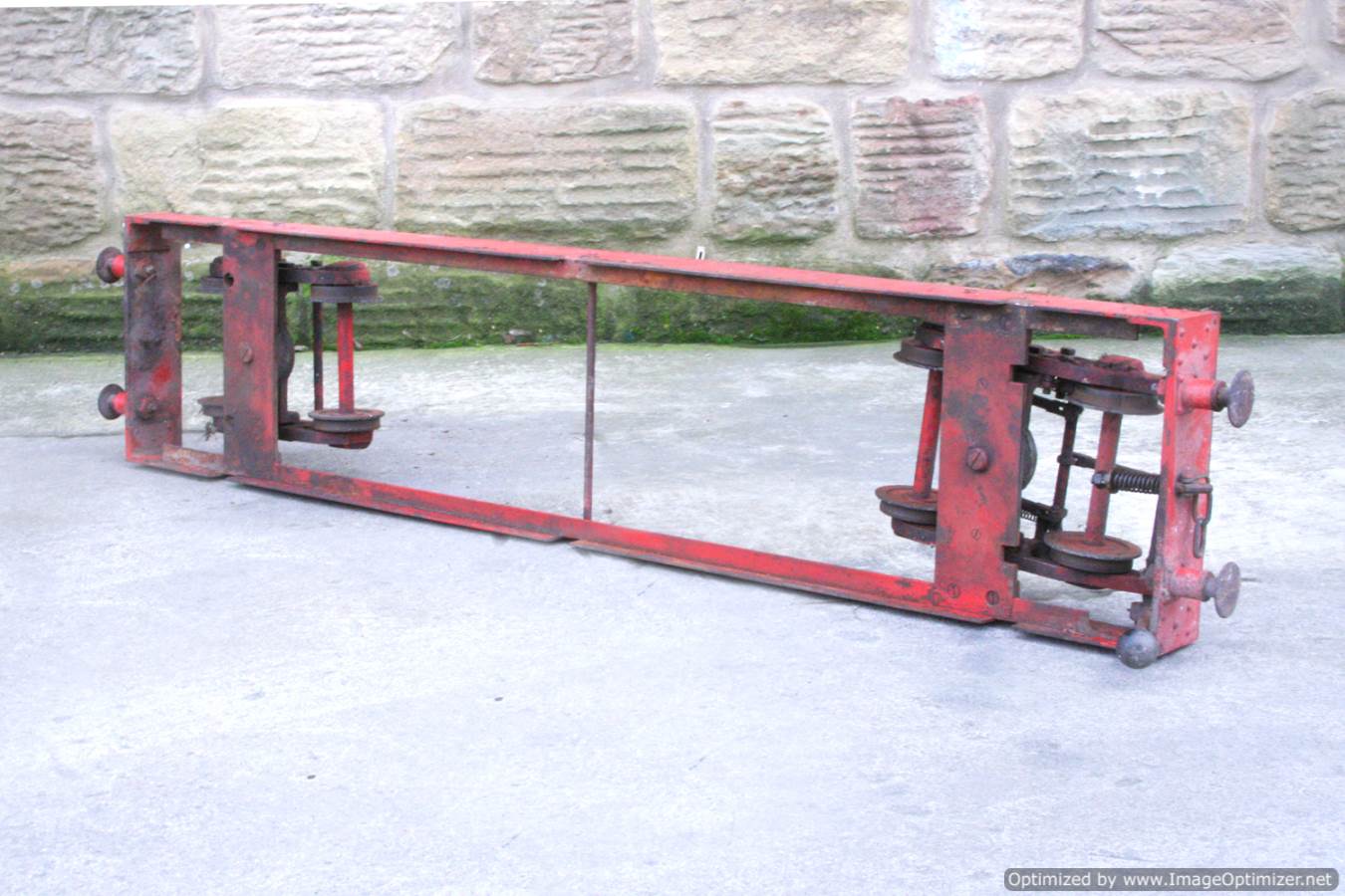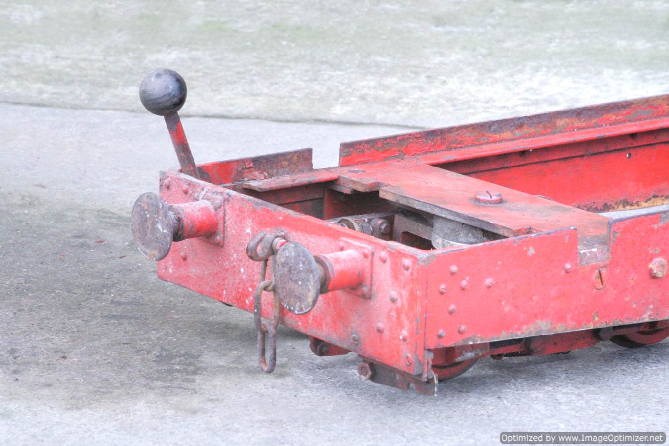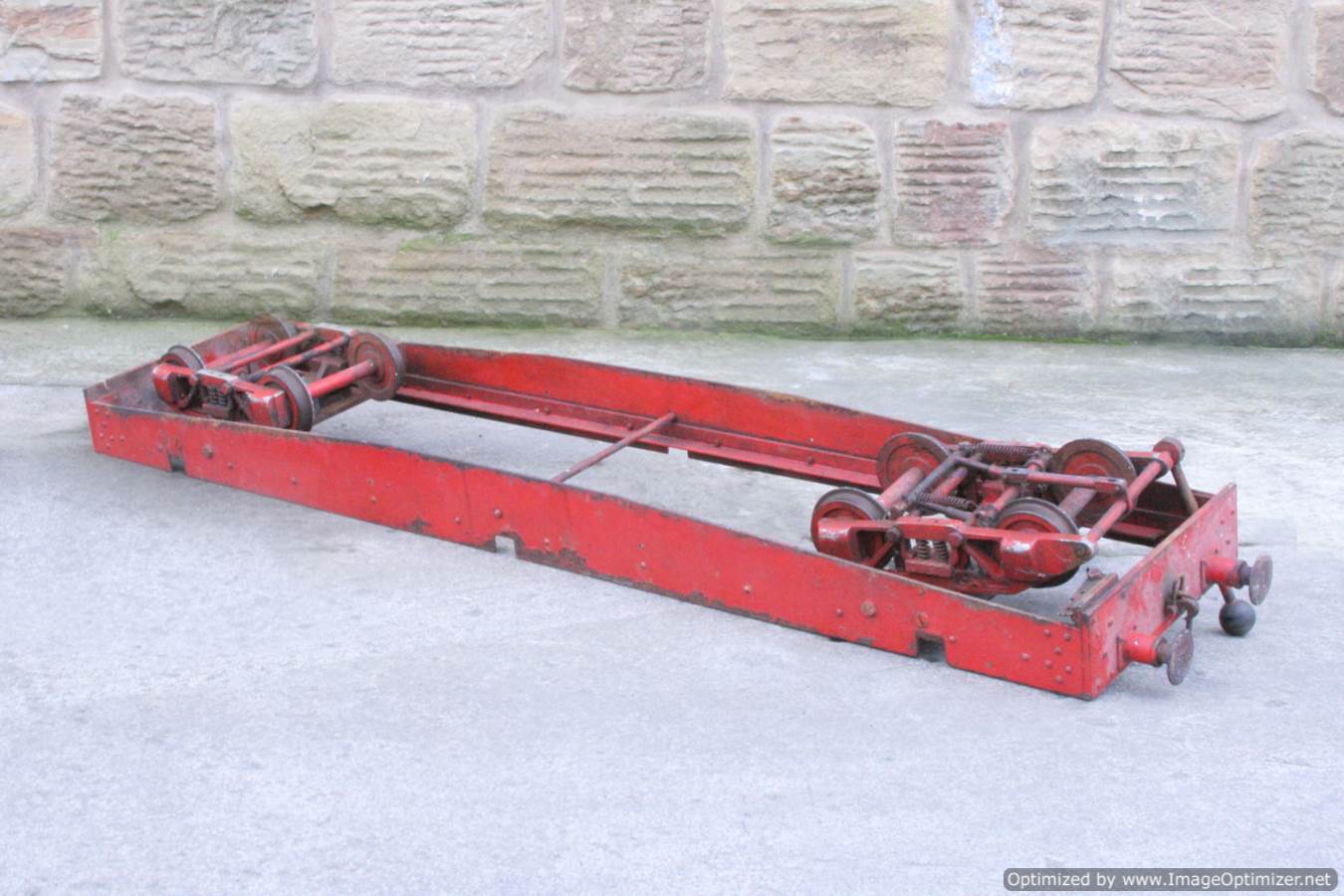 Here we have a 5" Gauge Riding truck. Missing a body, so in need of someone with basic woodworking skills to make up whatever you fancy to sit on. The frame is nicely made and substantial though, and the bogies are of equally robust build. It rides very nicely, and has brakes to the front bogie. Fitted with nicely made sprung buffers, this has all the hard work done for a nicely stable and usable riding truck. Another one that would be transformed with a lick of paint!