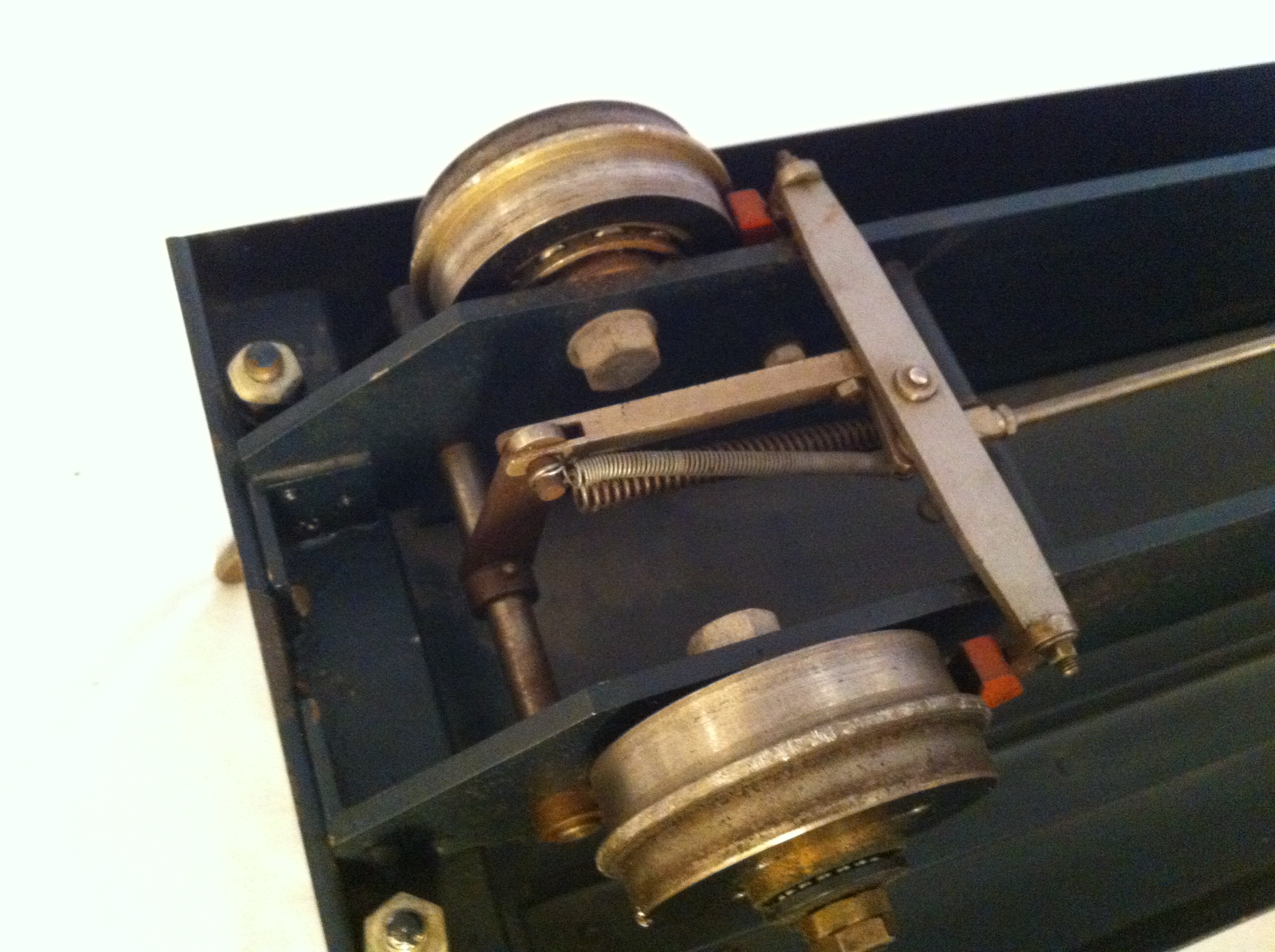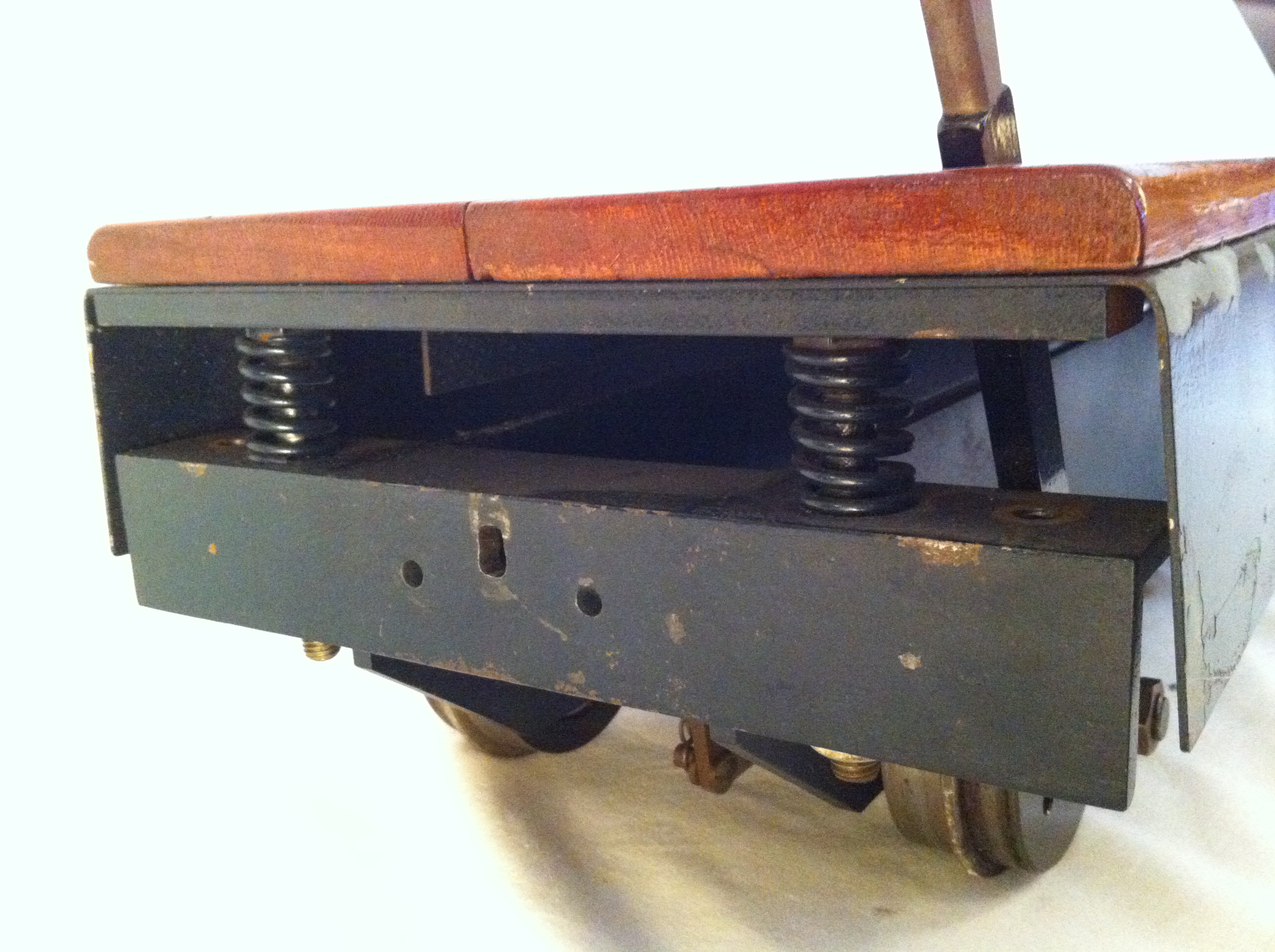 It's been designed I think (because of it's shallowness) to run on a raised track.  Although not a brand new item, it is basically unused, and as you can see it doesn't have footsteps fitted yet for either raised or ground level running.  A strongly built and well thought out little truck, ready for rigging up according to your track needs.