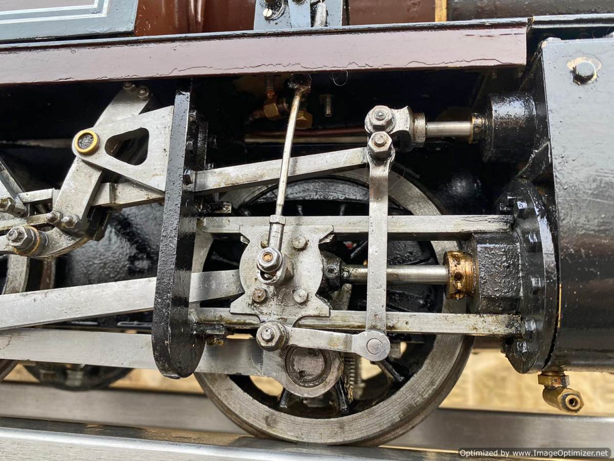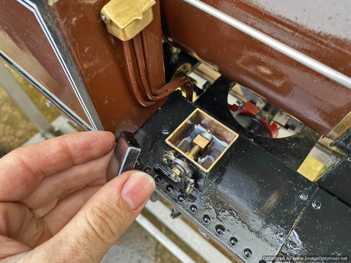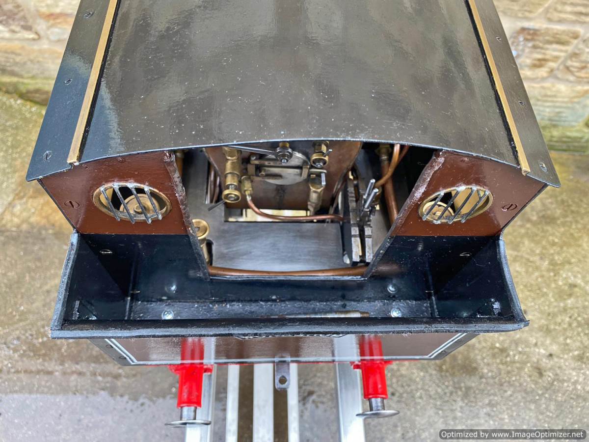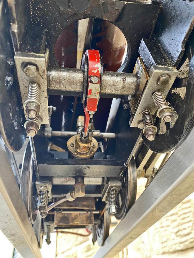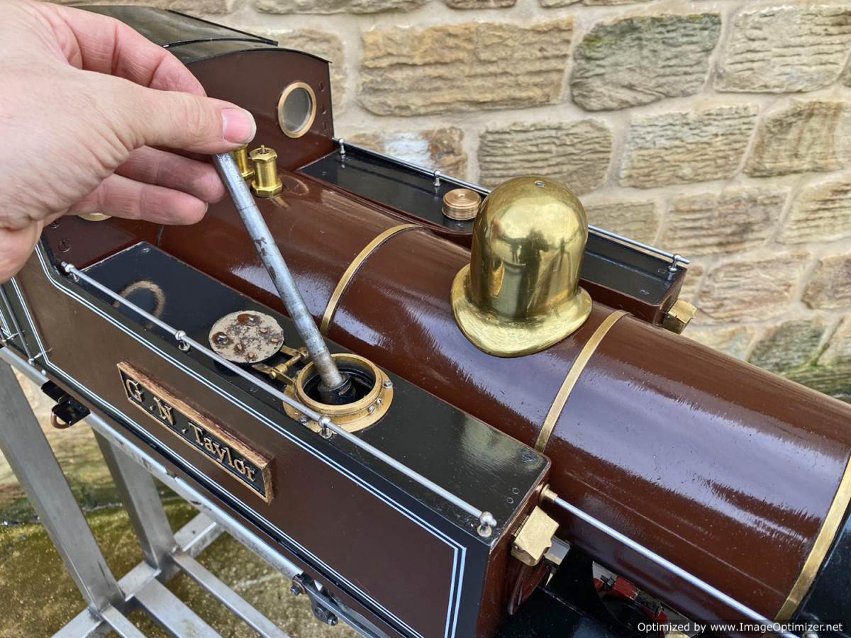 This loco has just benefited from an overhaul by her previous owner.  The bottom end doesn't have any significant slop present and we've given the copper, silver soldered boiler a twice working pressure hydraulic test to make sure all is well there too.  There's an injector, plus an axle pump with footplate mounted bypass and of course the hand pump hidden in the tank.  There's also a nice little cork float gauge in the left hand tank that pops up to show you the water level.  Lubrication is mechanical and in the usual place on the running board.