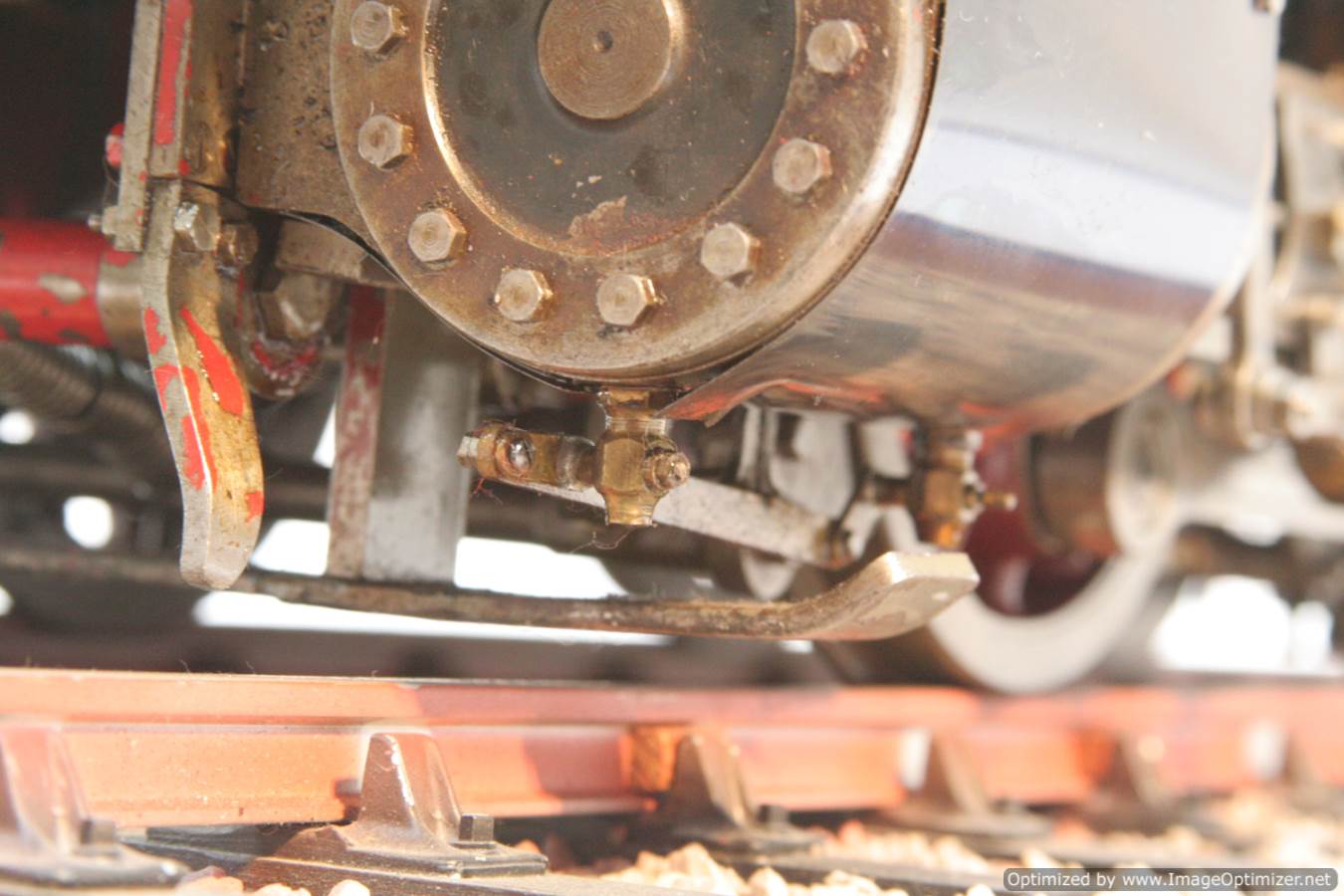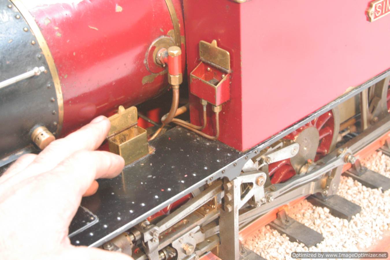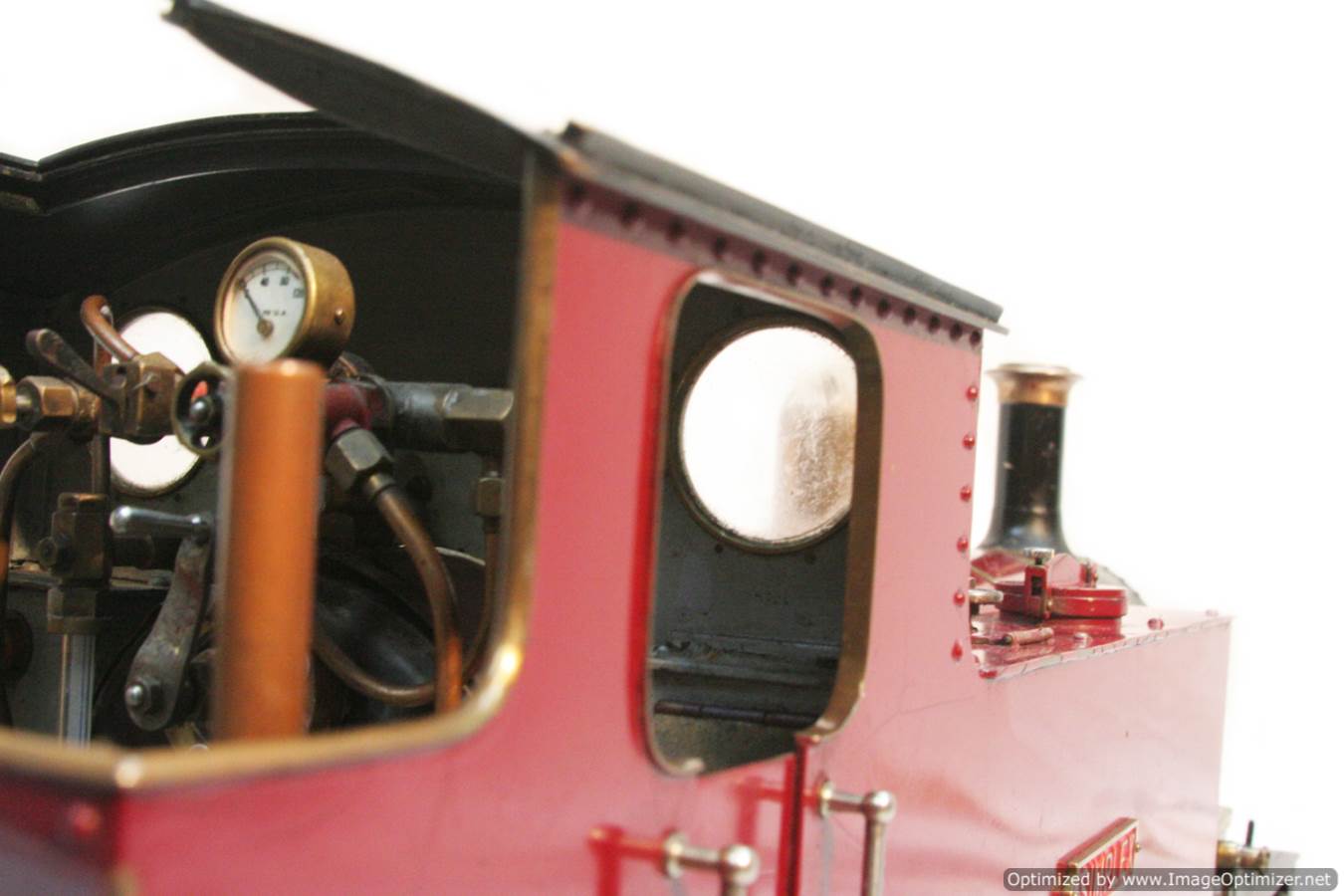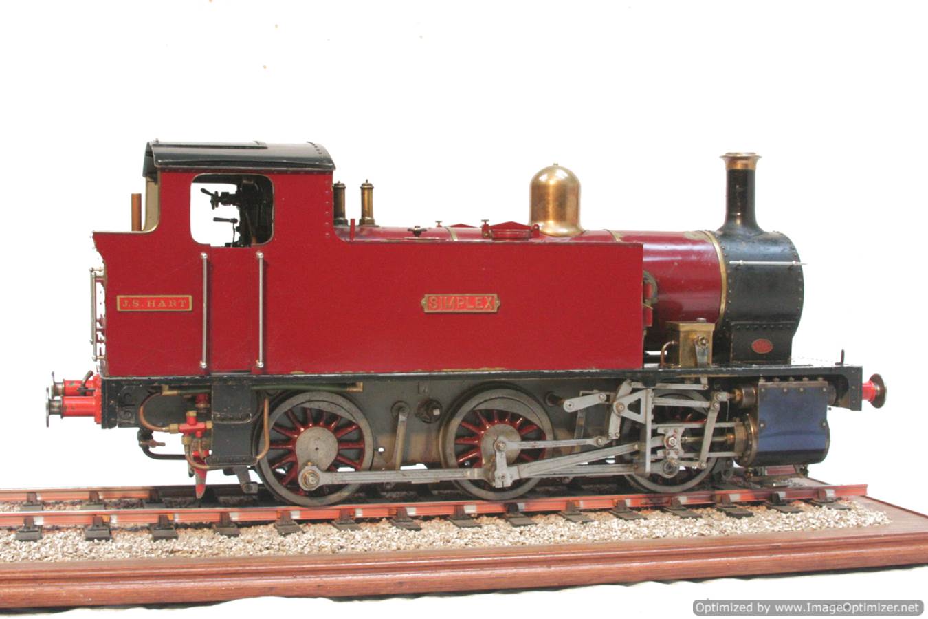 Here we have a well made, and in cosmetically 'run' condition Simplex to Martin Evans' design. Built interestingly by the same builder as the 7 1/4" gauge BR standard class 4 tank that we have just completed the full ground up re-build on, and so fundamentally this is a solidly built model. All the usual bits and bobs are there as it should be, there is an injector, an axle pump with footplate mounted bypass valve and a hand pump in the tank. Lubrication is the usual mechanical job under the front running board. The boiler is of course silver soldered copper, and nicely made, and of course as with all our models she can go fully checked out and tested, with a full fresh 4 year hydraulic certificate and a fresh annual steam certificate. You have to obviously look a little past the tatty paint on this one, but when you do, you'll seer that the machining work is pretty good, and the attention to detail make this a pretty well thought through Simplex.