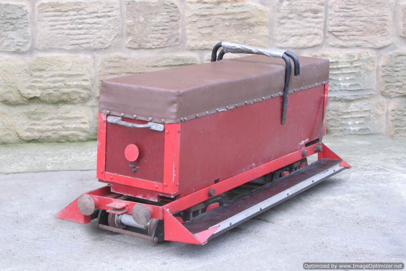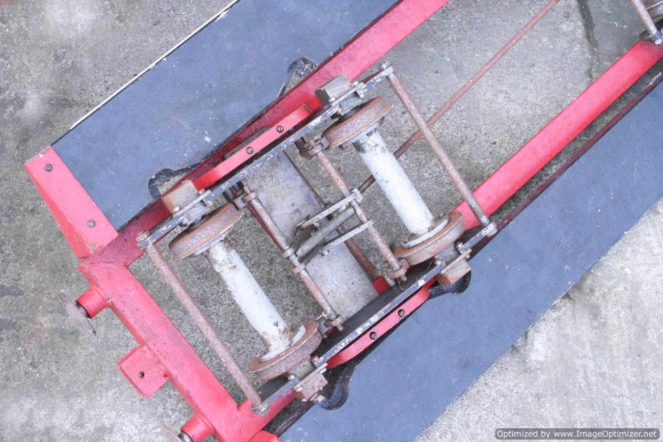 Here we have another solidly made 5" gauge sit astride riding truck. There are brakes to one of the bogies, and its a nice smooth riding wagon. Hopefully the photos will fill you in on the rest of the details.