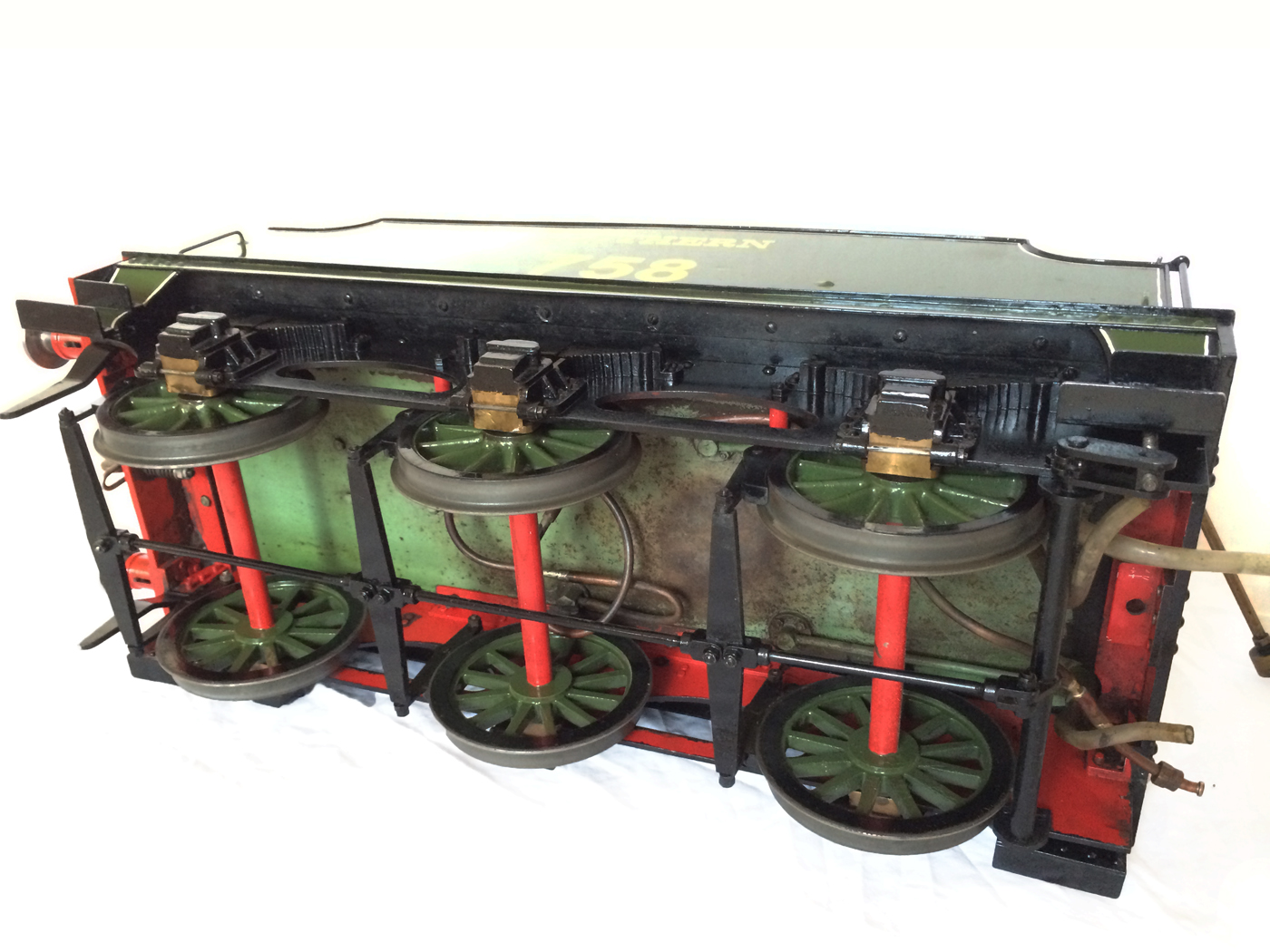 She is fitted with an injector, an axle driven eccentric water pump (with footplate mounted bypass valve) and also a tender hand pump should you find yourself in need,.... and the loco is also equipped with steam brakes, with the usual hand brakes to the tender.