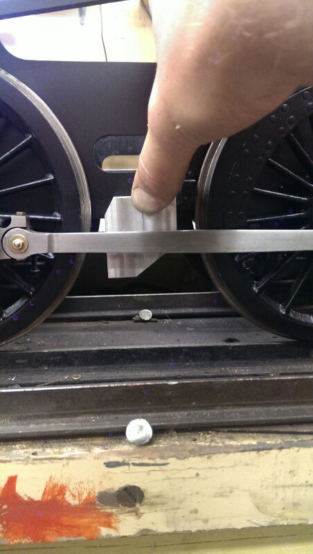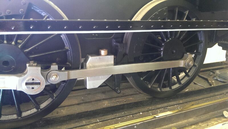 The first thing we did here was whip off the connecting rod and radius rod.  They were just plainly machined, and the prototypes were obviously fluted.  Also there were only 2 bolts through the return crank, where as the full size Stanier practice was for 4.  They are not absolutely perfect scale, as we were working with what was already there, but they do a pretty good job of approximating the reality, and certainly look much better than the original 2.