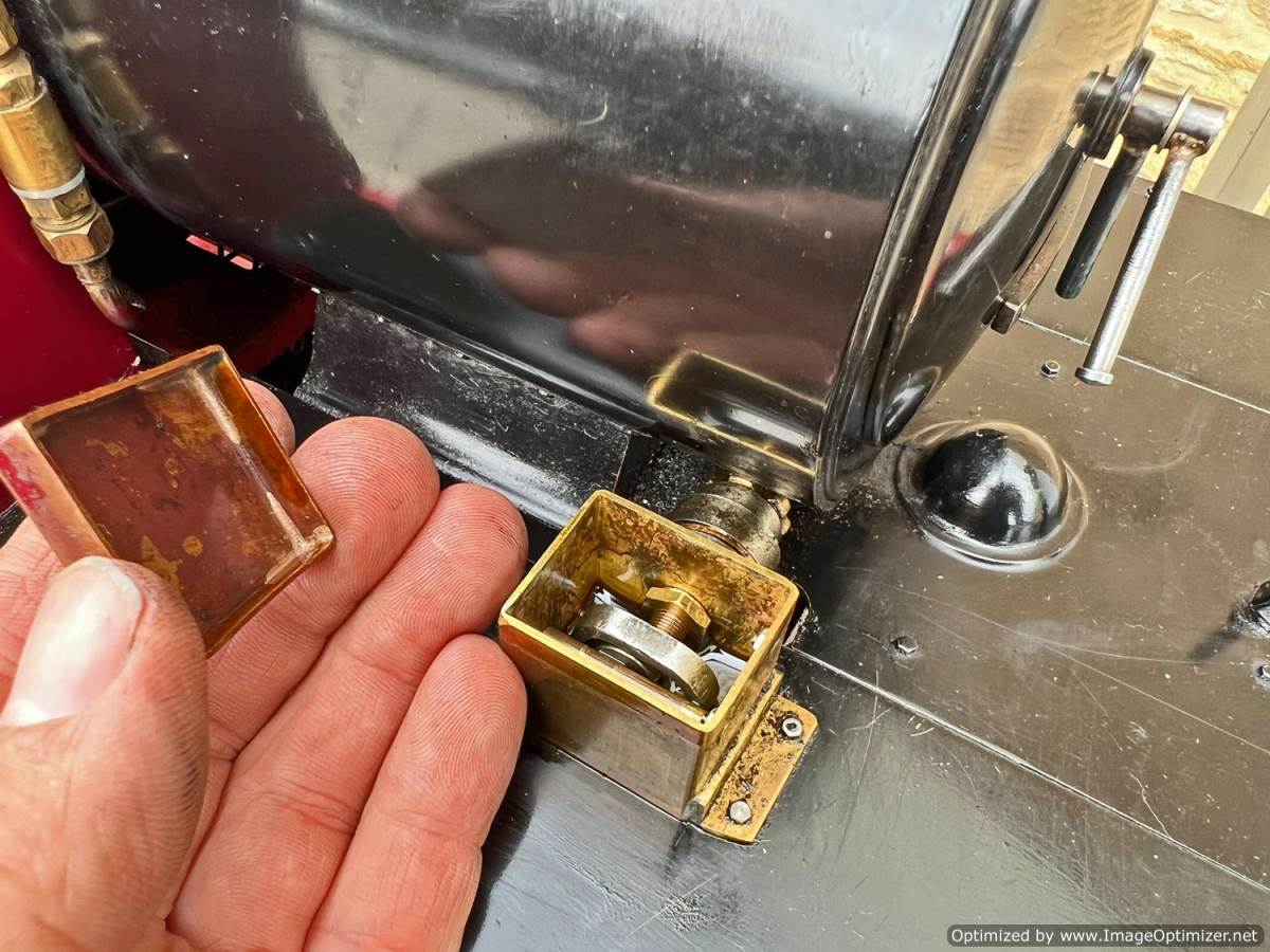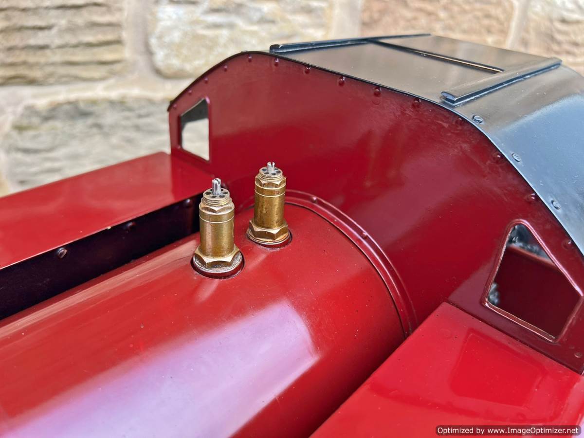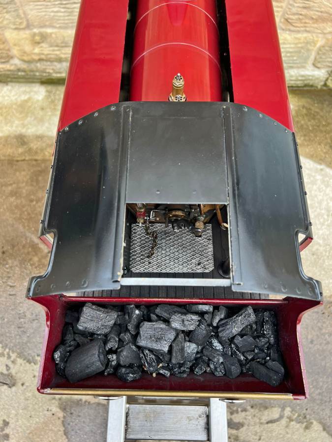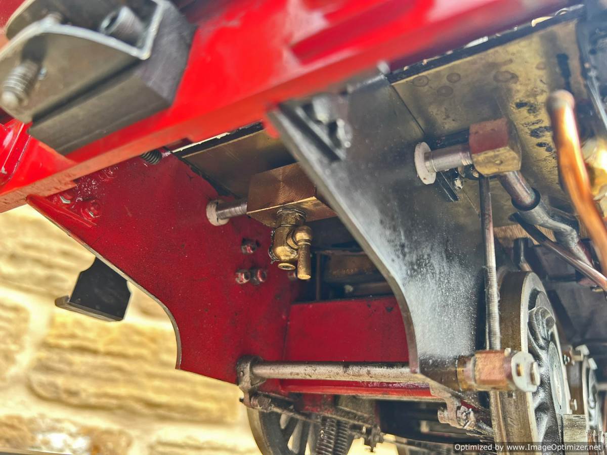 The model doesn't appear to have been run a great deal as everything is in really tight and clean condition, although the degree of soot in the smoke box shows that it has indeed run more than just the odd test steaming. Fitted with an injector, as well as an axle pump with footplate mounted bypass valve, and of course a hand pump in the tank as well. Lubrication is mechanical with a simple reservoir fitted to the front running board. Lots of nice touches including the neat brass oil troughs to enable easy lubrication of the axle boxes. The boiler is superheated and is neatly silver soldered, coming with boiler history as well as fresh hydraulic tests and a fresh annual steam test so she's ready to run.
