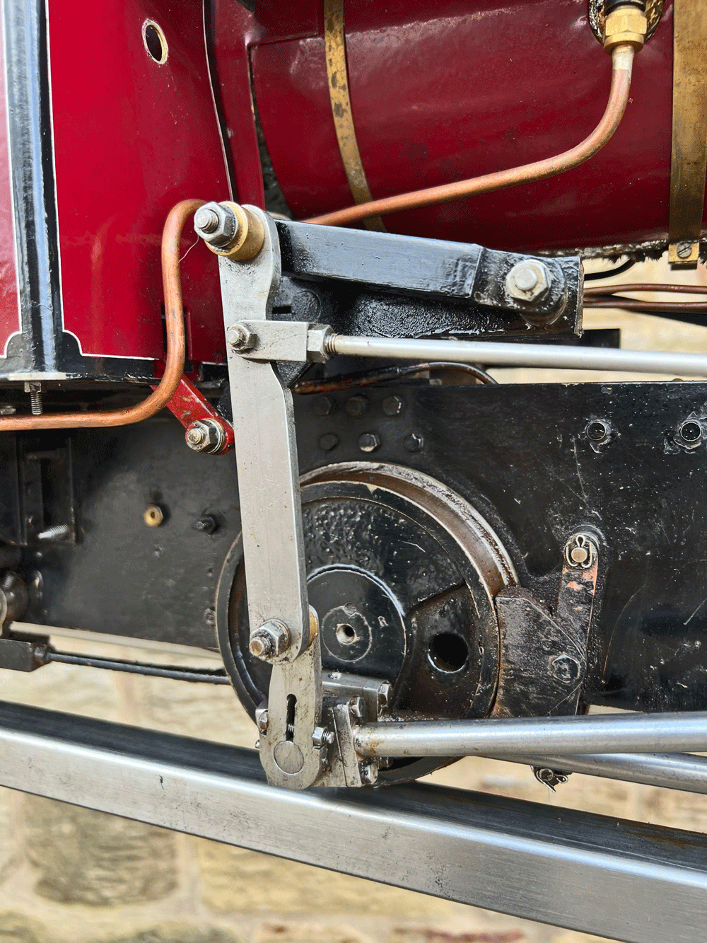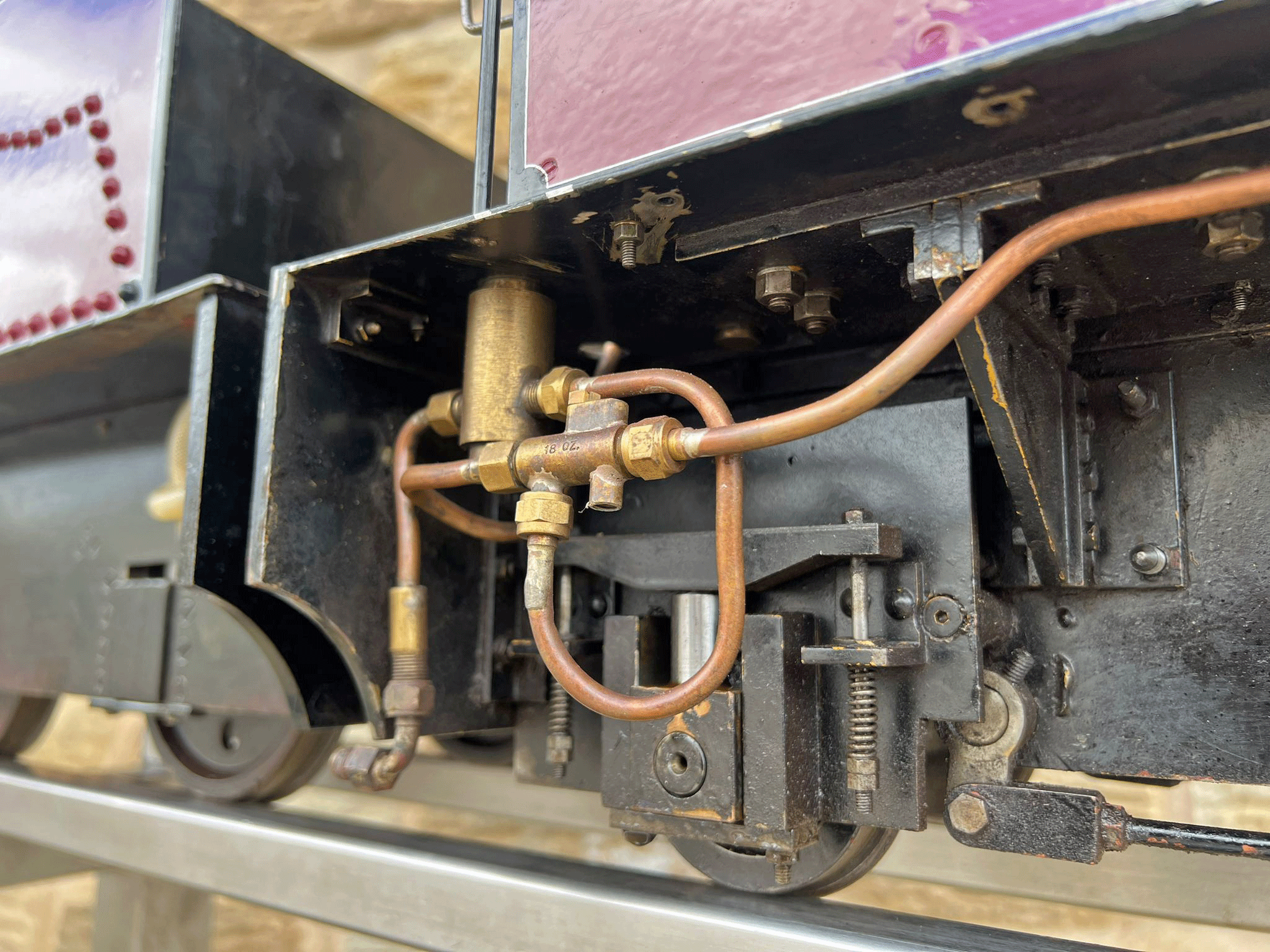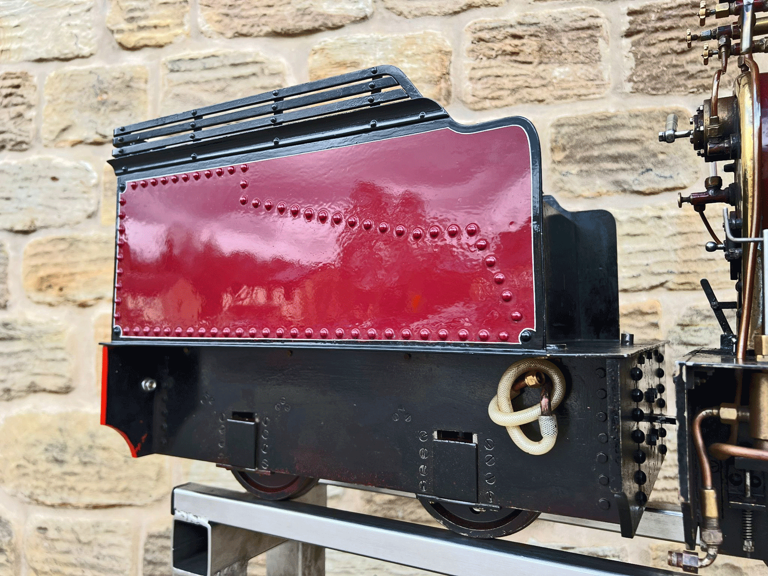 It's also a really nicely finished and presented loco. The paintwork is lovely, with beautifully executed hand painted lining, the tender is well made with lots of lovely rivet detailing, and generally everything is mechanically in good condition. The boiler is as you'd expect, fully silver soldered copper, and comes with a fresh 4 year hydraulic test and of course a fresh steam test so all's well and ready to run.