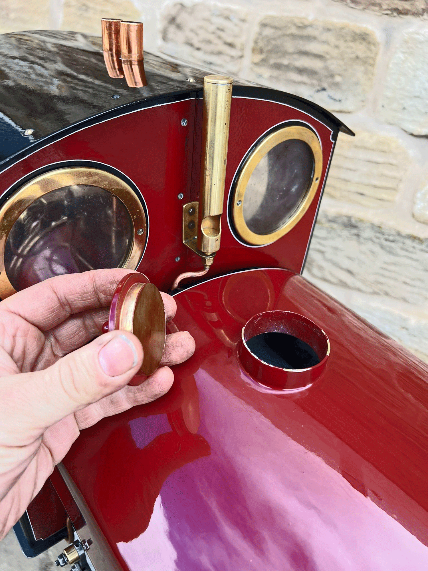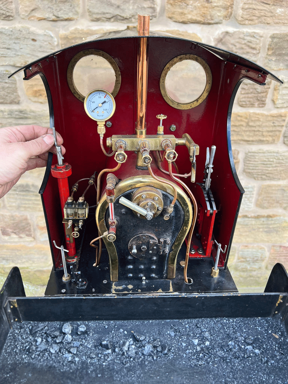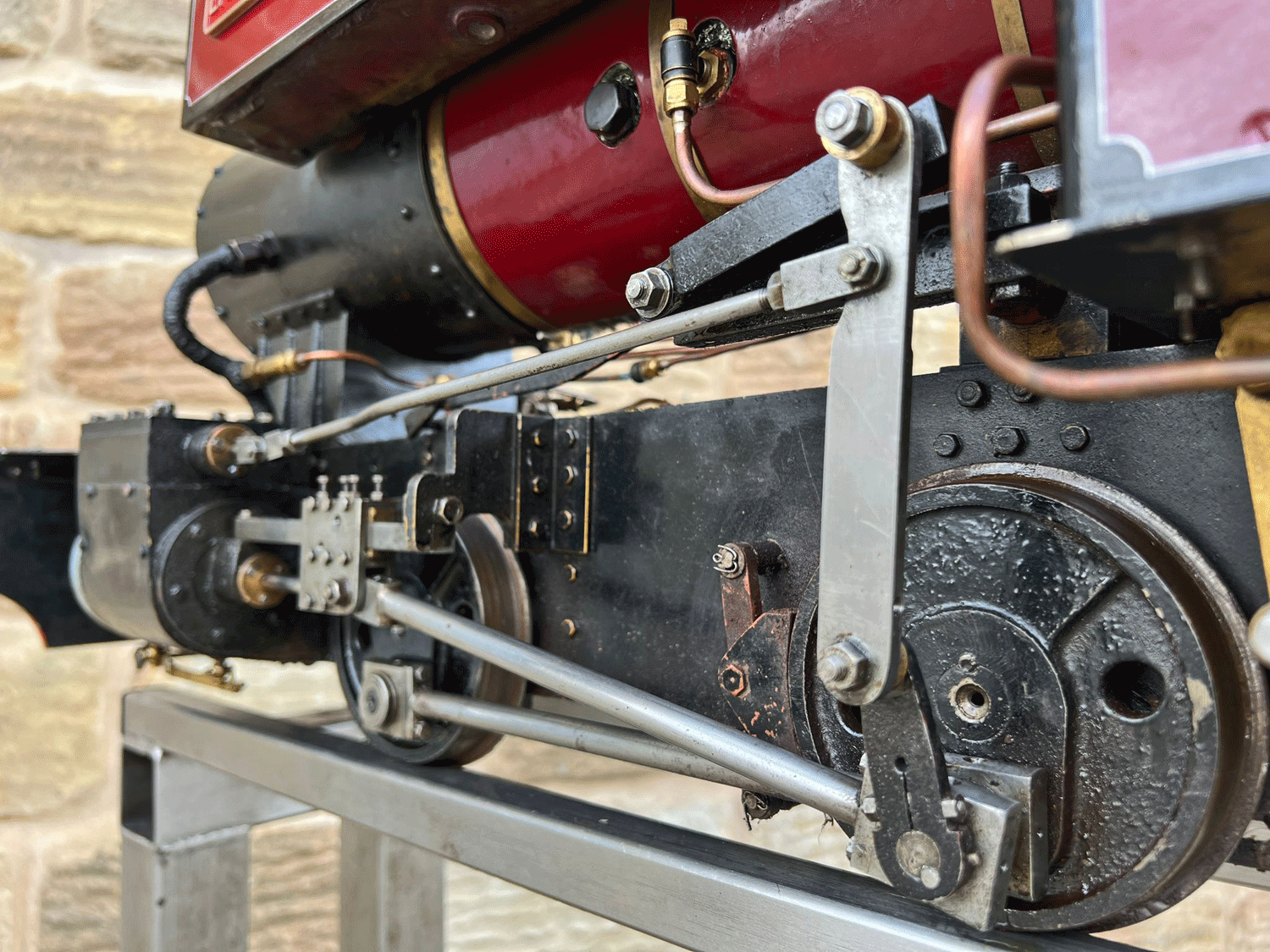 It's also a really nicely finished and presented loco. The paintwork is lovely, with beautifully executed hand painted lining, the tender is well made with lots of lovely rivet detailing, and generally everything is mechanically in good condition. The boiler is as you'd expect, fully silver soldered copper, and comes with a fresh 4 year hydraulic test and of course a fresh steam test so all's well and ready to run.