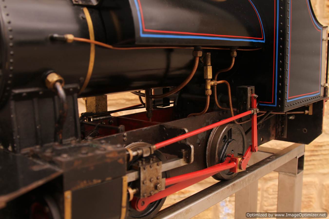 All the usual bits and bobs are there.  There is an injector fitted, as well as an axle pump with footplate fitted bypass valve.  Lubrication is mechanical and easily accessible on the running boards.  The rest is pretty straight forward Sweet Pea fare.  The rear of the cab helpfully swings out of the way so that you can slide the marine ash pan and grate out at the end of your play, which I a nice little feature,..... as are the well proportioned wooden 'dumb' buffers.  All in all an attractive loco that you can just take away and play with.  As with al our finished models, she can be given a full 4 year hydraulic boiler test, as well as a fresh annual steam test so she's ready to go.