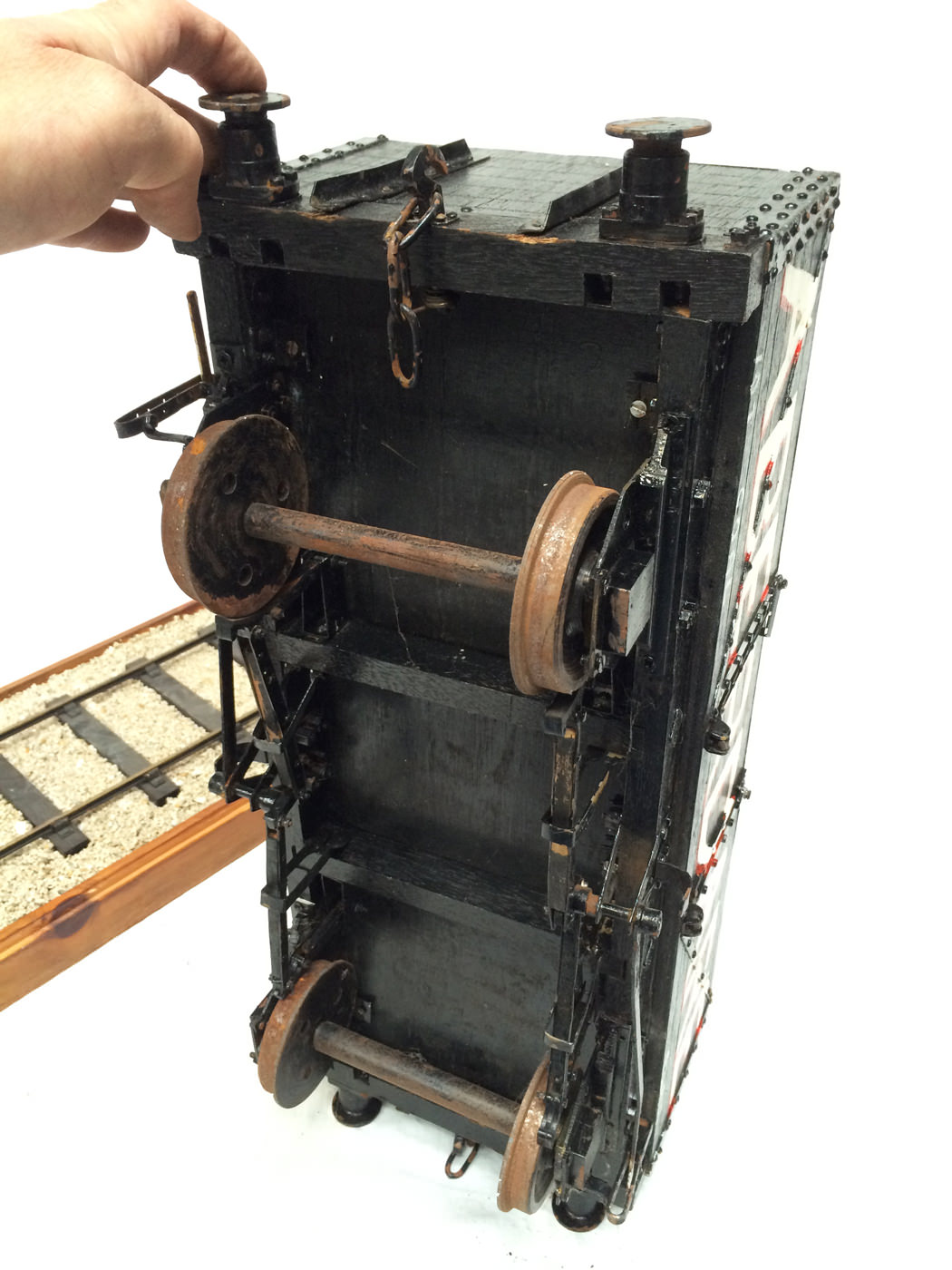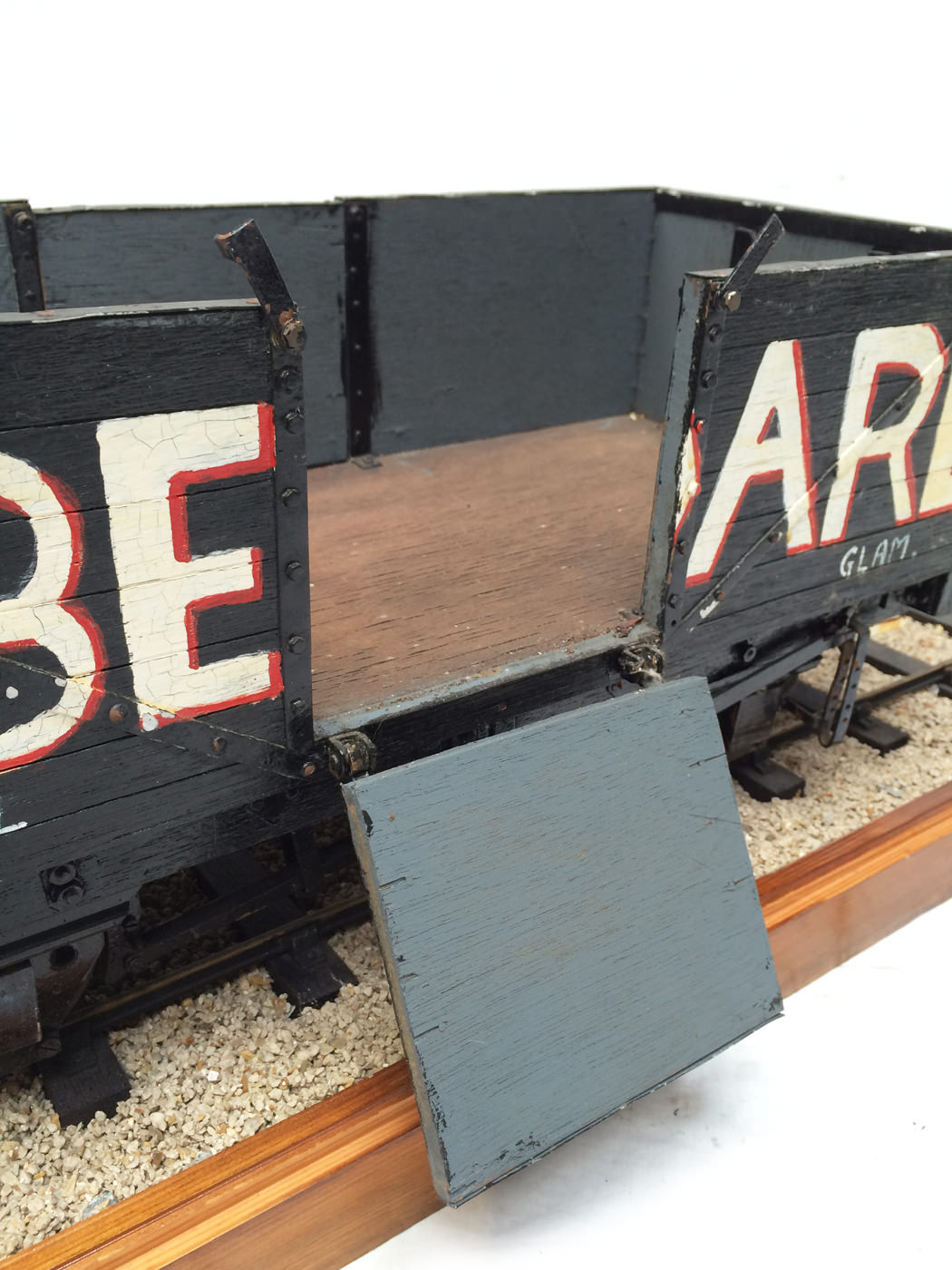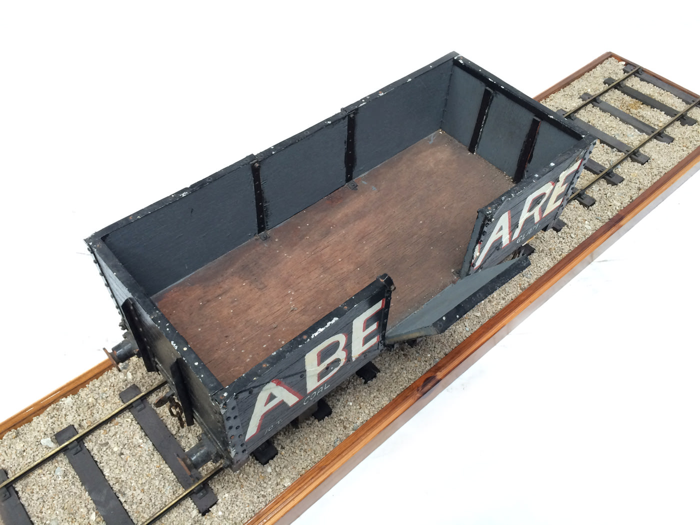 Here we have a fairly basic and simply made 5" gauge private owner wagon. The photos will tell the story better than words of course, but suffice to say that it's in good running order, the wheels and springs work freely and the doors drop as they should. This wagon and it's sister (also for sale) are never going to win any awards for technical accuracy or quality of build. But they'll still be fun to run behind your loco and are of substantial enough construction to make them potentially convertible to riding trucks.