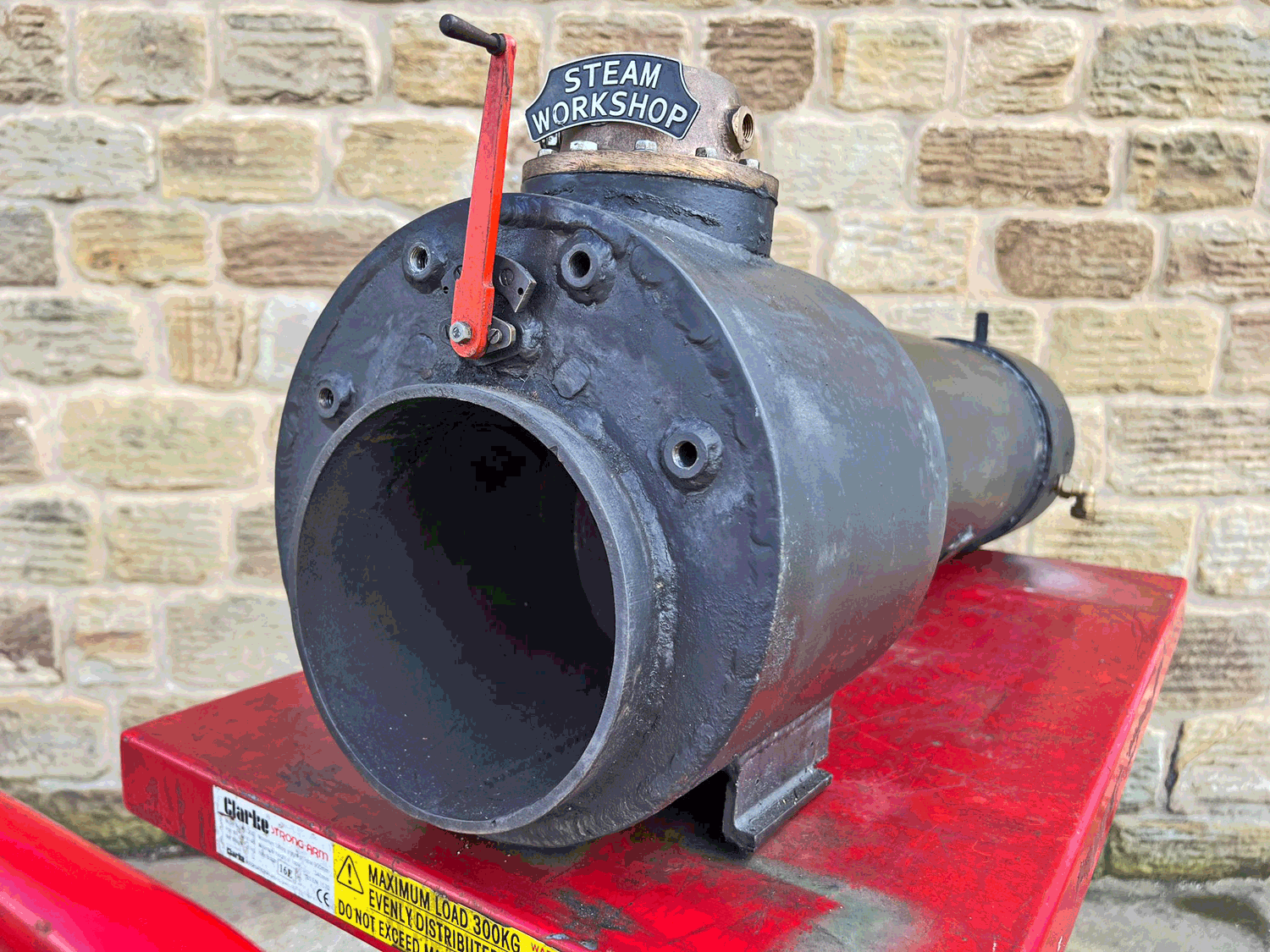 Here we have a 7 1/4" gauge steel boiler for a Bagnall to the MJ Engineering drawings. A used boiler, but in good condition throughout. Comes with both past boiler certs as well as a current hydraulic test and good ultrasonic thickness test results. Fitted with it's regulator and a smokebox, with some smoke box plumbing present,...... we also have a cast Bagnall chimney here in the workshop too if you'd like that as well.