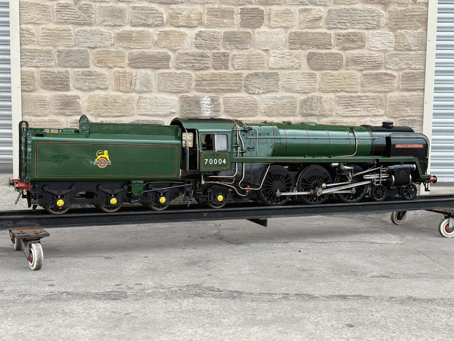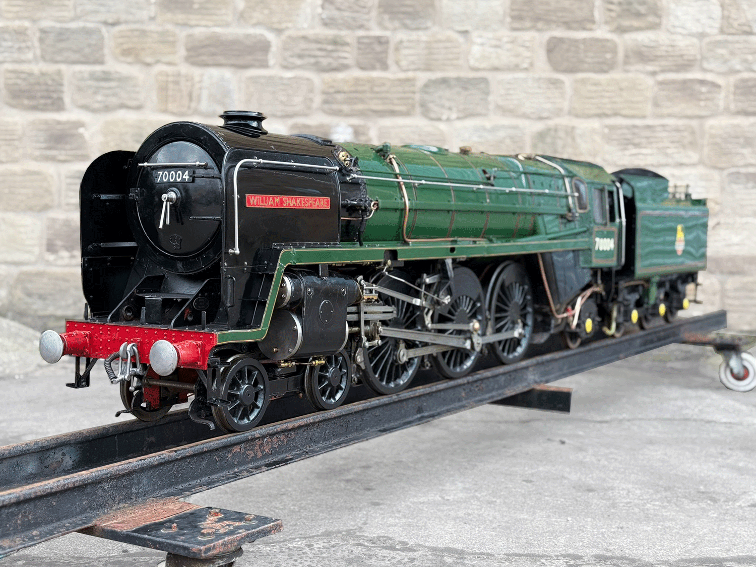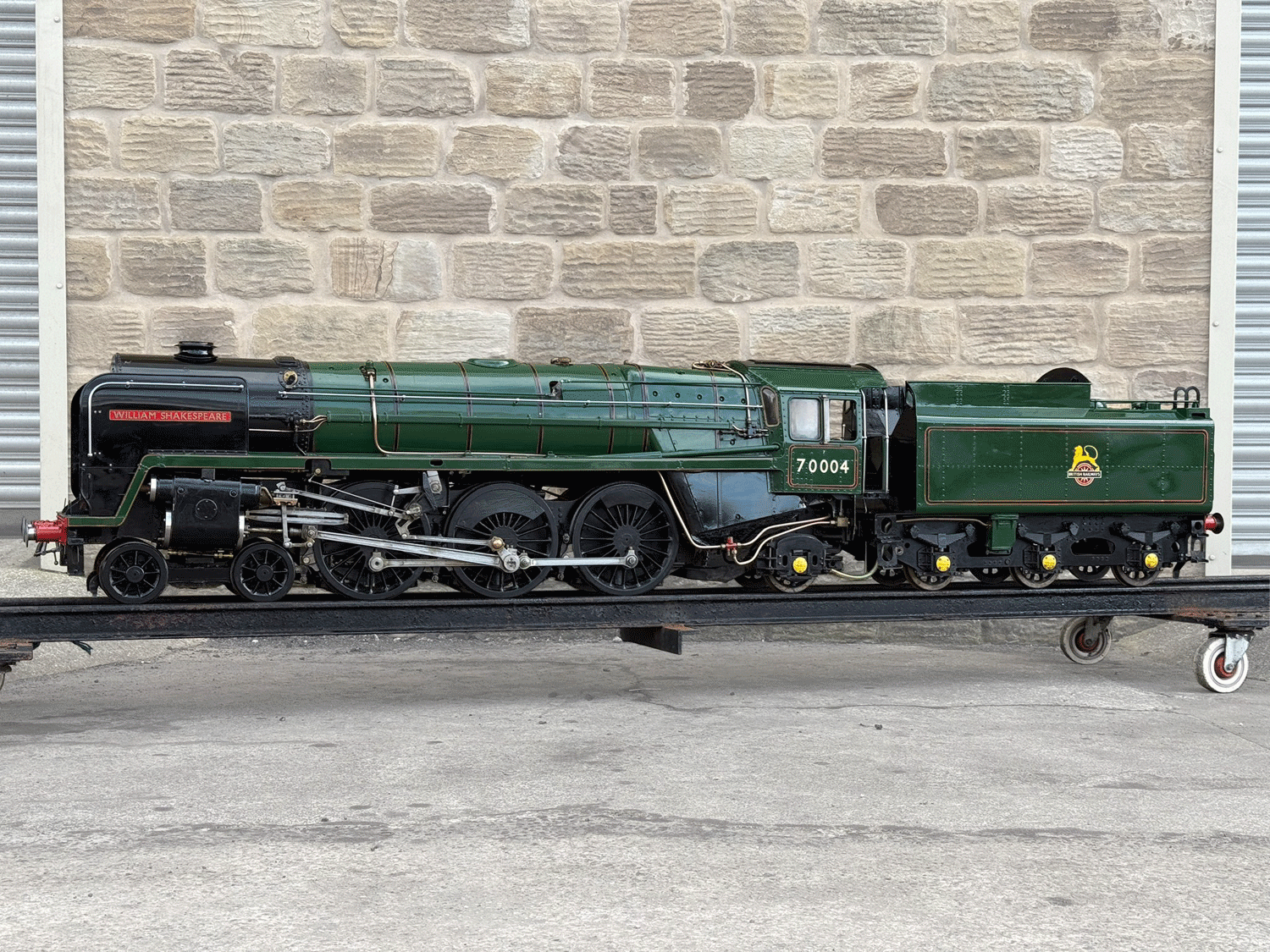 Here we have a big and impressive machine. A 7 1/4" gauge BR Britannia, Number 70004 'William Shakespeare'. The silver soldered copper boiler can come as you'd expect with a fresh hydraulic test as well as fresh steam tests so we know all is well there.
