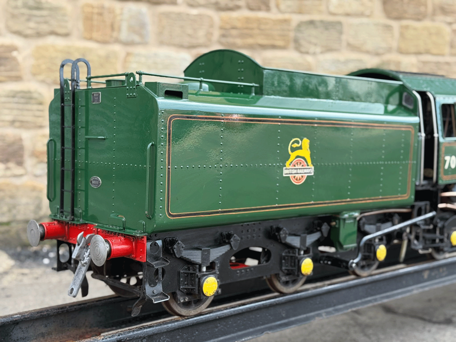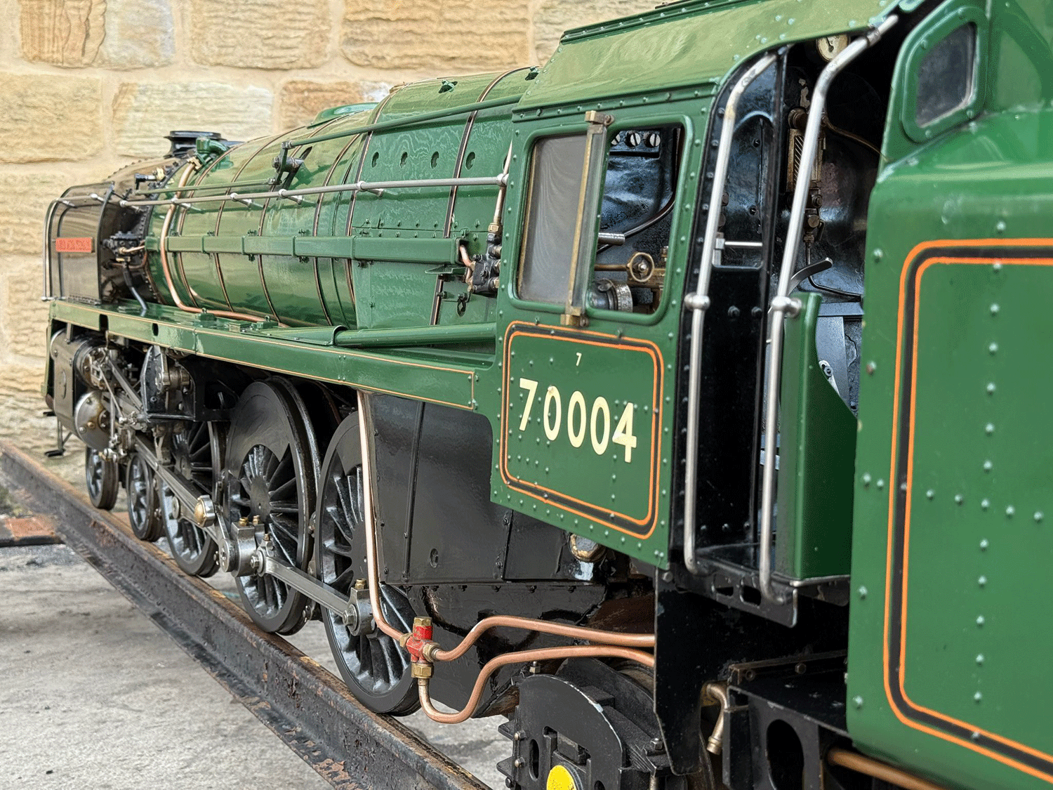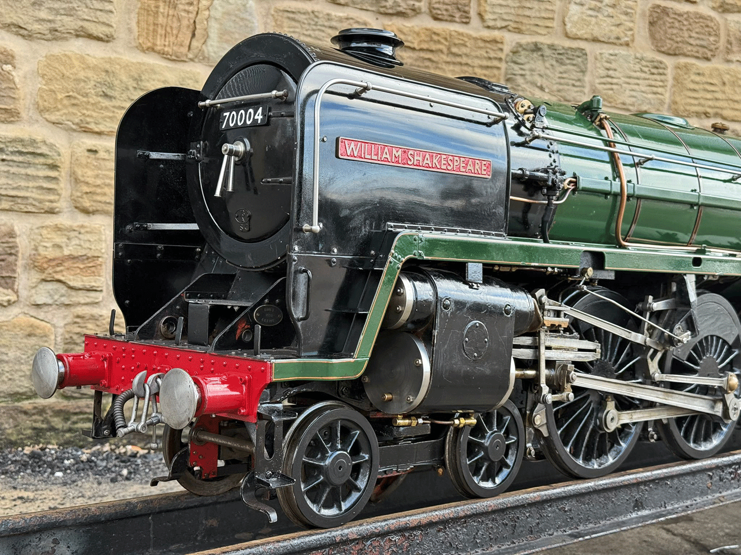 Here we have a big and impressive machine. A 7 1/4" gauge BR Britannia, Number 70004 'William Shakespeare'. The silver soldered copper boiler can come as you'd expect with a fresh hydraulic test as well as fresh steam tests so we know all is well there.
