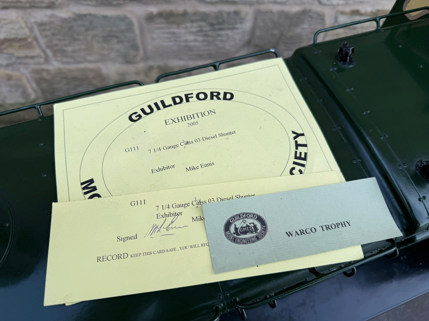 Here we have a particularly finely made and detailed 7 1/4" gauge BR Class 03 shunter. An extremely rarely modeled prototype in this or any gauge, possibly a unique model in 7 1/4", which has always baffled us here at Steam Workshop, as it's a particularly attractive prototype. Battery powered and extremely well resolved throughout, if you'd like us to put it through our Diesel Workshop for the full weathering, sound, smoke, lights and radio control treatment it would certainly be a very worthy candidate!