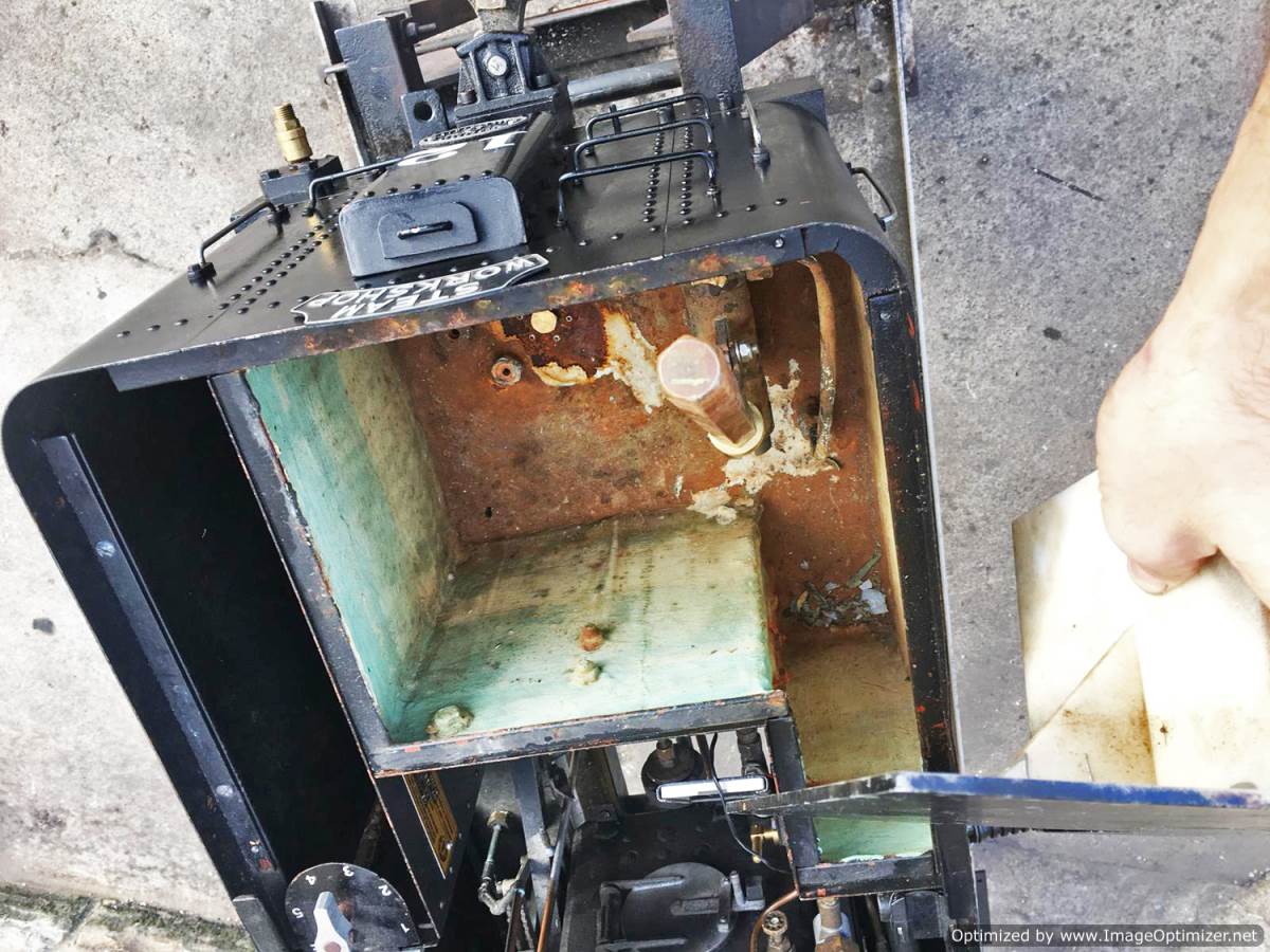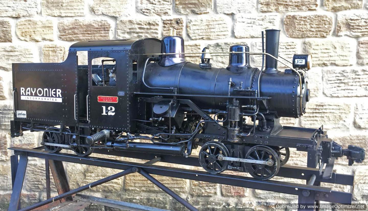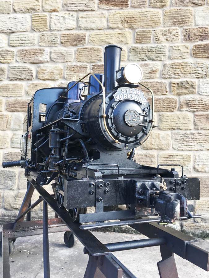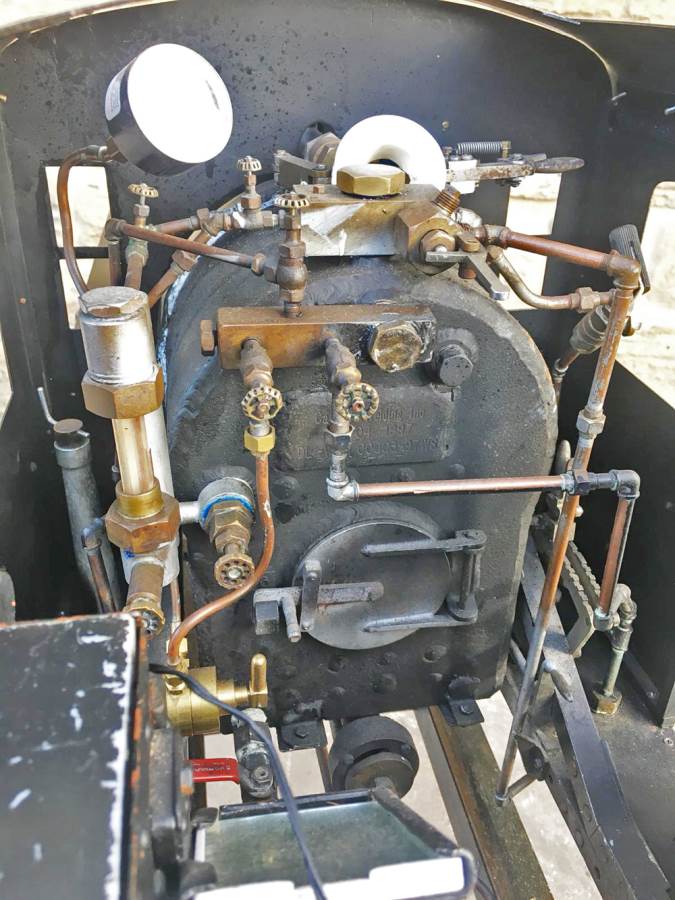 Here we have another unusual and rare beast.  A 7 1/4" gauge twin cylinder Heisler loco.  Fitted with a steel boiler, (which can of course be given a full and fresh hydraulic test and steam test).  The loco is currently set up for gas firing, with the large gas bottle carried in one of the two carriages that are available to buy with the loco.  It would be perfectly possible to drop out the gas burner and fit a grate though, so she could be converted here in the works to coal firing for you with relatively little effort if you'd prefer.