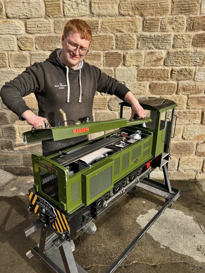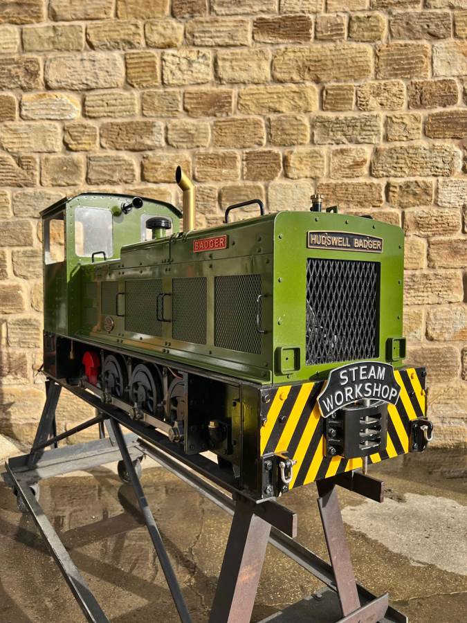 Here we have a superbly made models in 7 1/4" gauge of a 2'6" gauge Hudswell Clarke Diesel 'Badger', named after the full size prototype that used to be a resident at Statfold Barn but now working again over on the St Nicholas Abbey railway in Barbados!