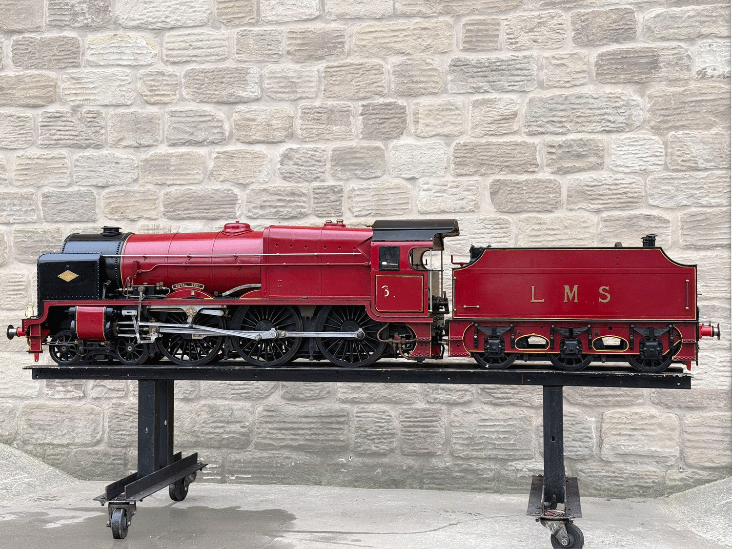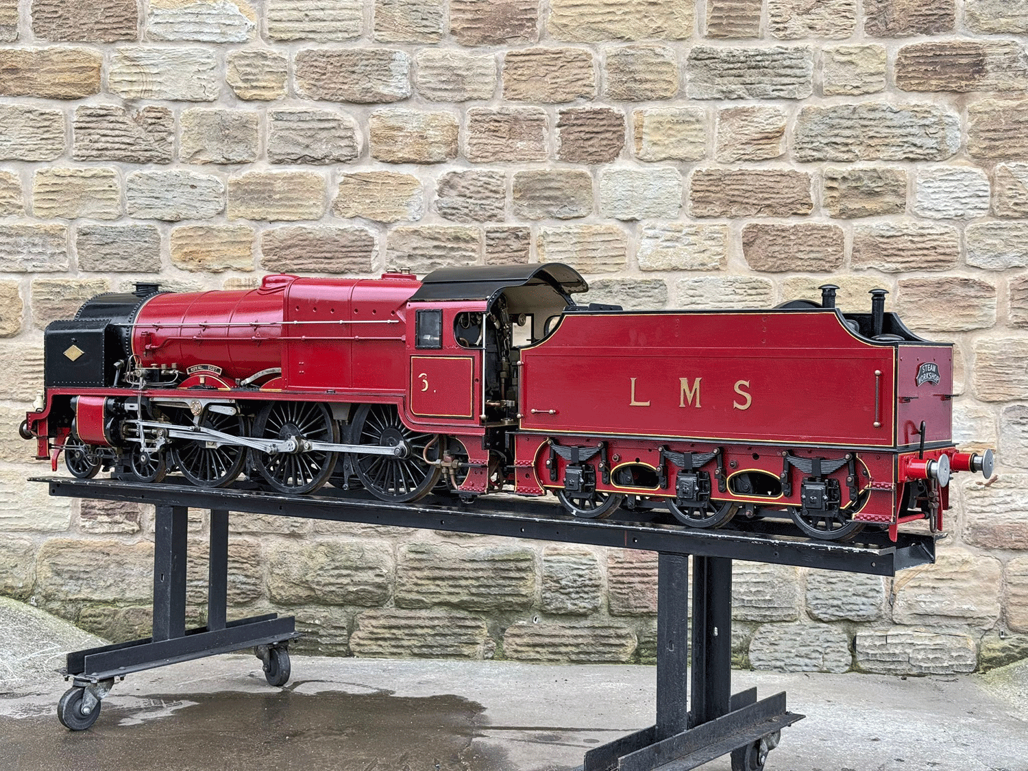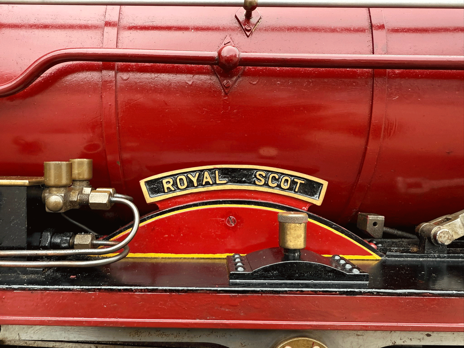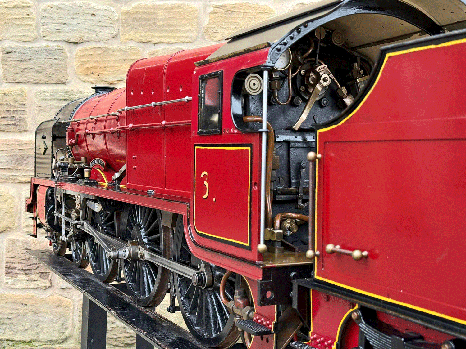 Here we have a 7 1/4" gauge LMS Fowler Royal Scot. Built from the Bassett Lowke castings to the Henry Greenly drawings. This is essentially a brand new loco having only been test steamed a couple of times on completion, even though we've known it to be finished to this stage for over 25 years! The loco was finished off by the late John Goulden, and I (Simon) took it to display at Llangollen's Steam Steel and Stars gala nearly 20 years ago now!