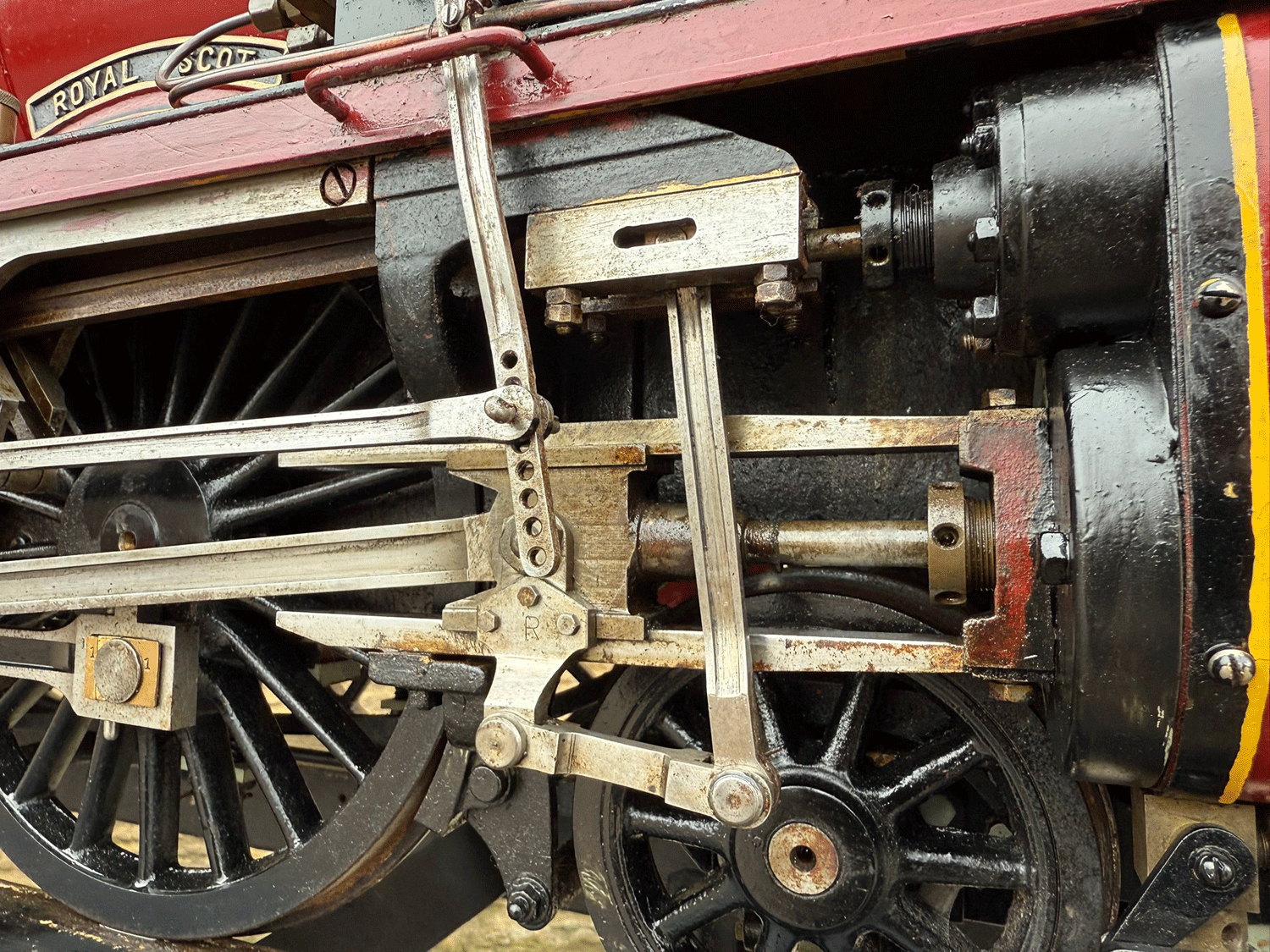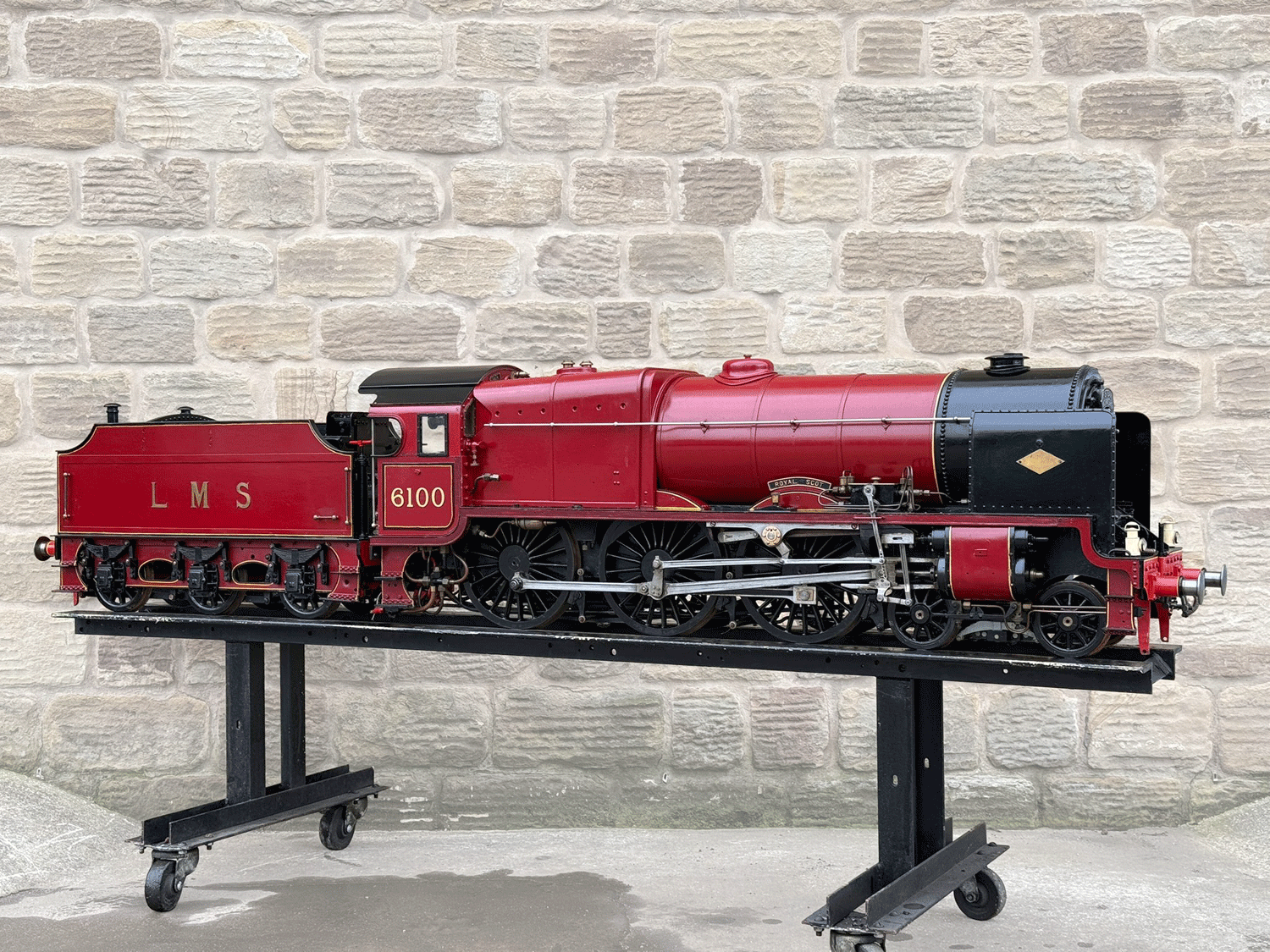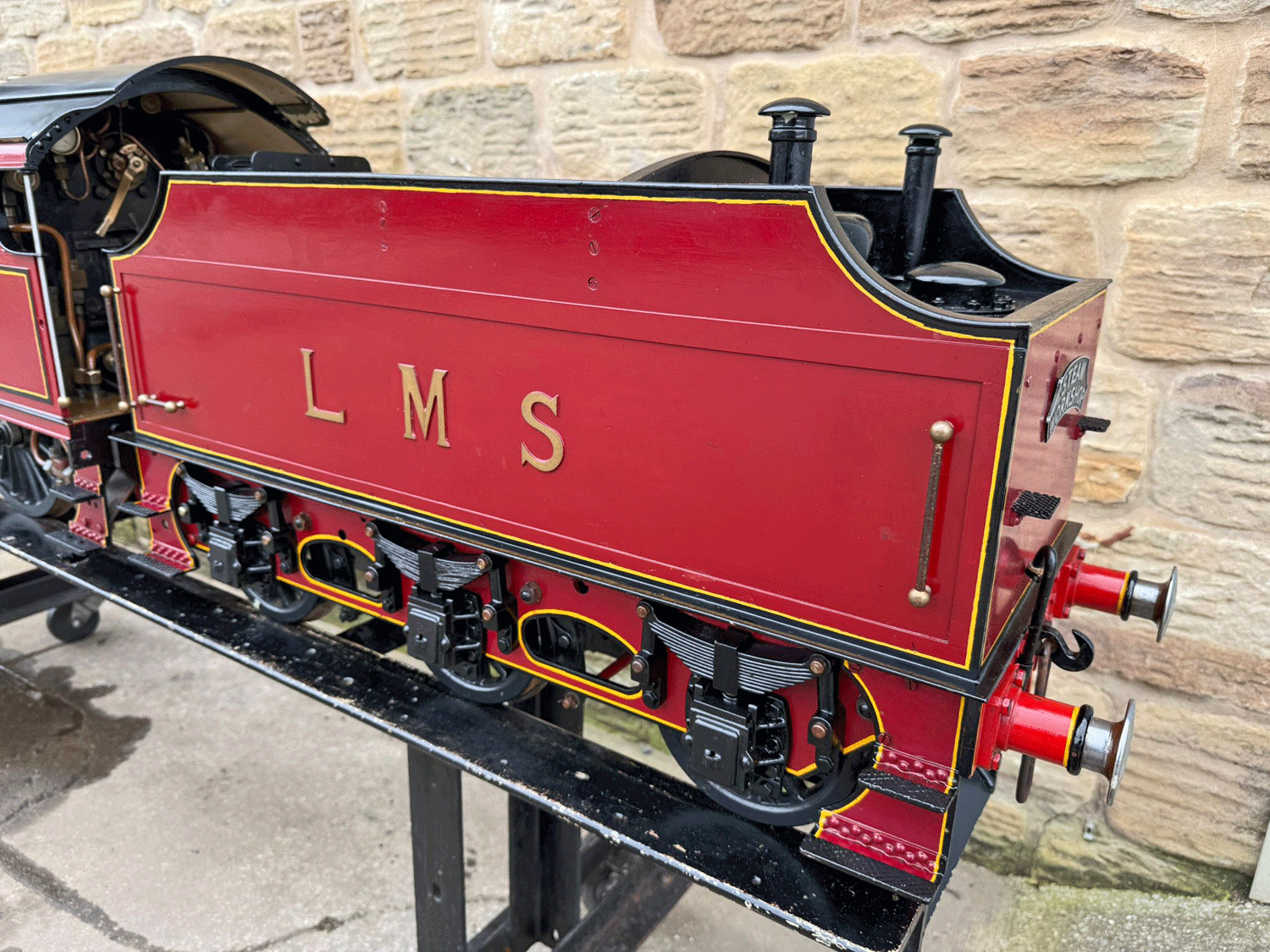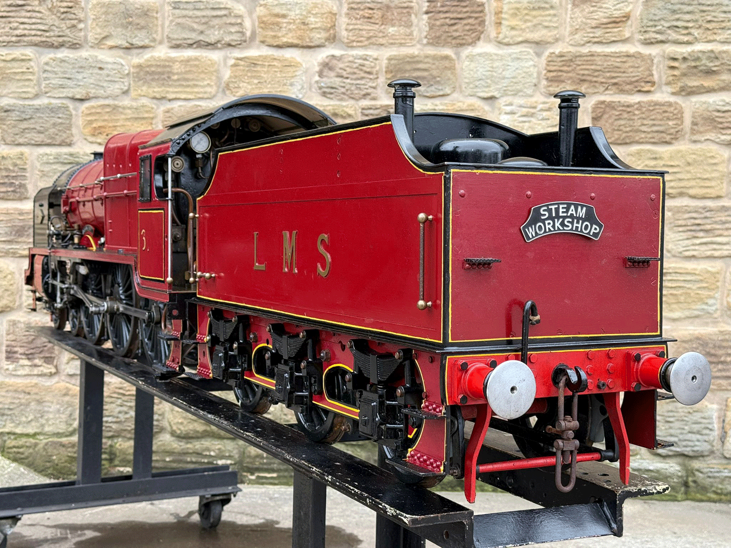 Here we have a 7 1/4" gauge LMS Fowler Royal Scot. Built from the Bassett Lowke castings to the Henry Greenly drawings. This is essentially a brand new loco having only been test steamed a couple of times on completion, even though we've known it to be finished to this stage for over 25 years! The loco was finished off by the late John Goulden, and I (Simon) took it to display at Llangollen's Steam Steel and Stars gala nearly 20 years ago now!