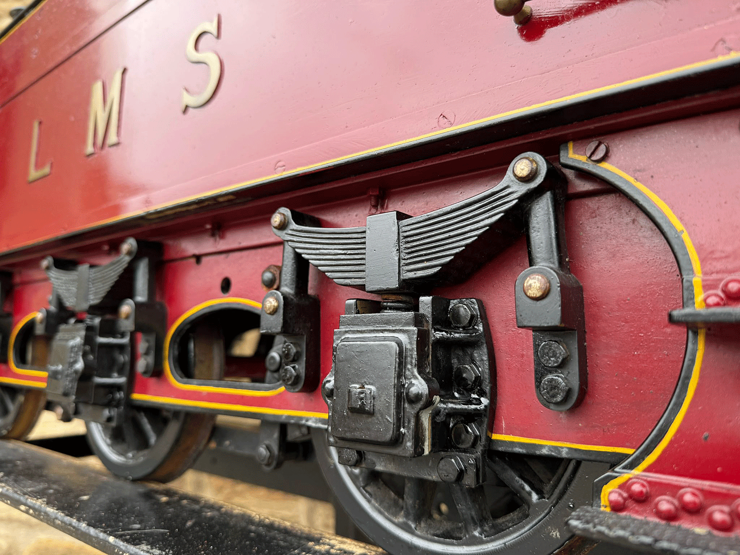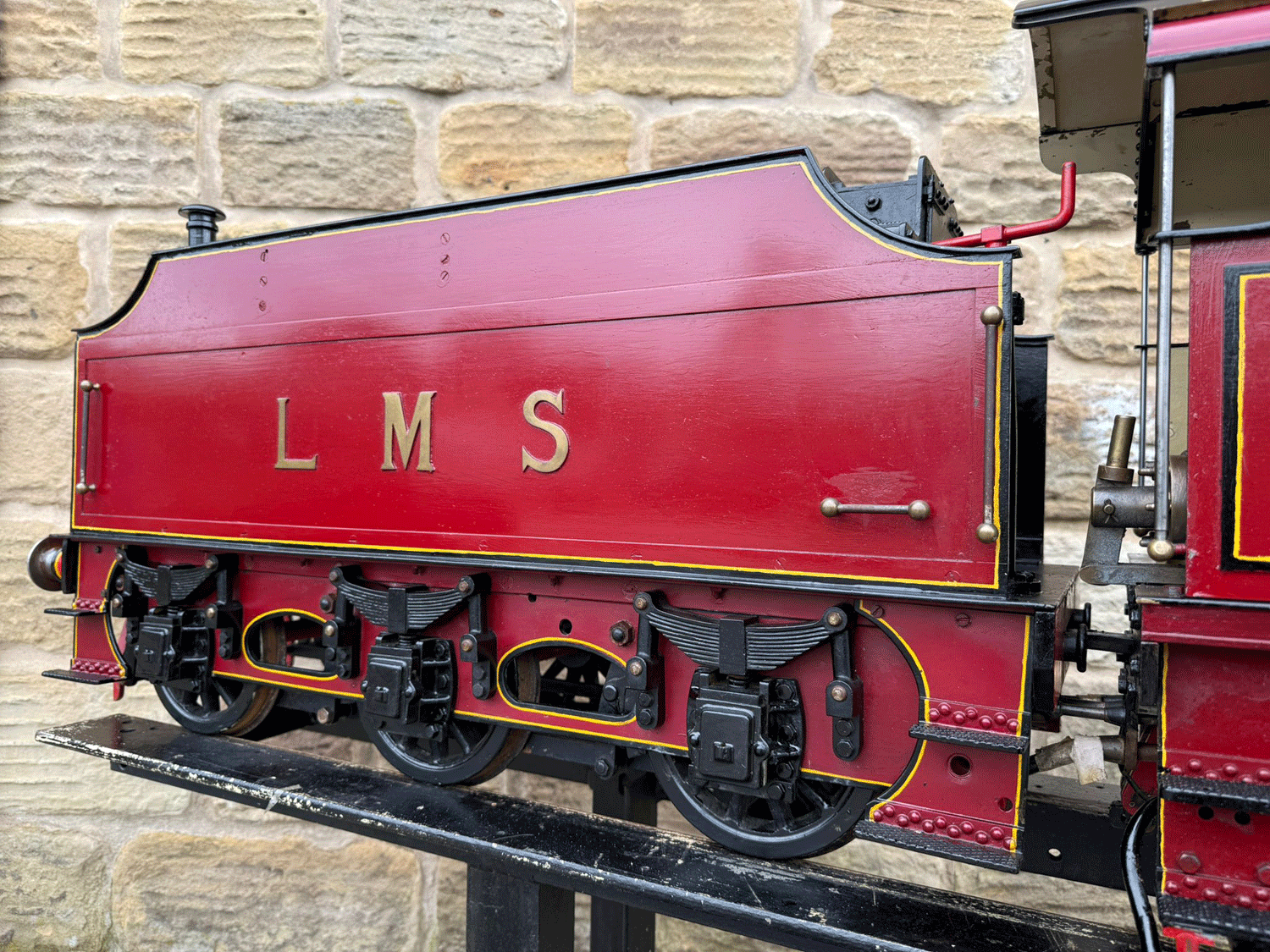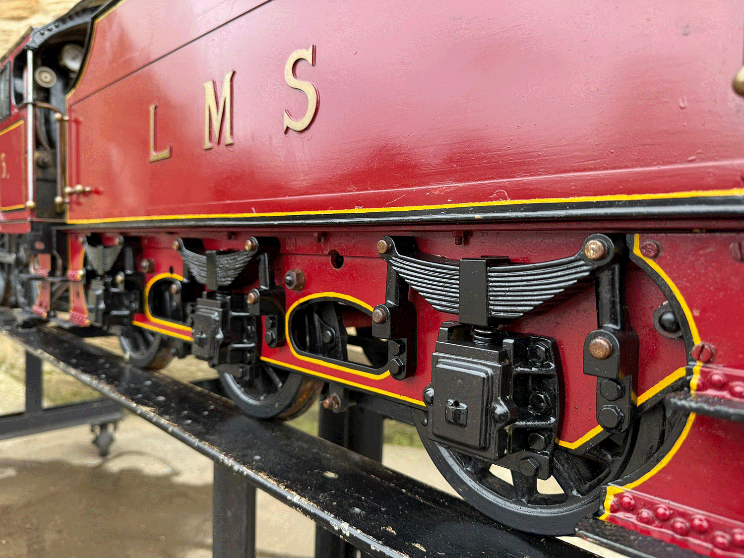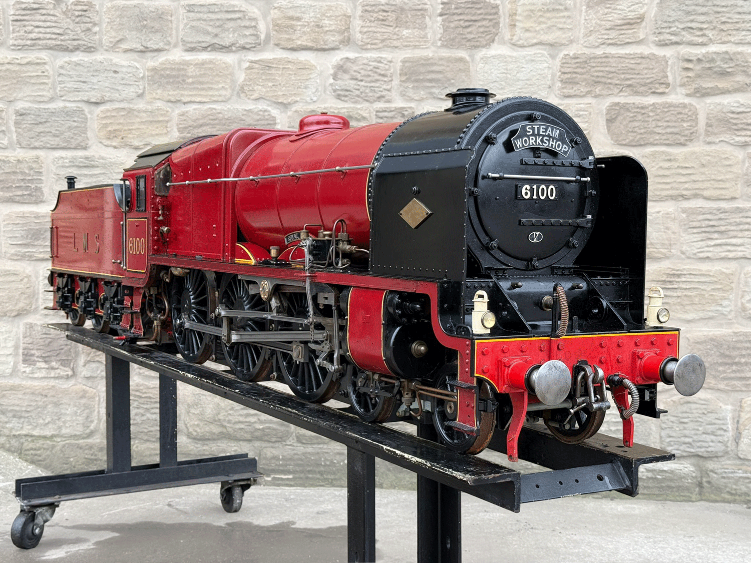 Here we have a 7 1/4" gauge LMS Fowler Royal Scot. Built from the Bassett Lowke castings to the Henry Greenly drawings. This is essentially a brand new loco having only been test steamed a couple of times on completion, even though we've known it to be finished to this stage for over 25 years! The loco was finished off by the late John Goulden, and I (Simon) took it to display at Llangollen's Steam Steel and Stars gala nearly 20 years ago now!