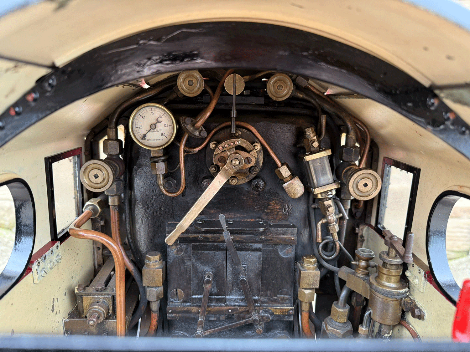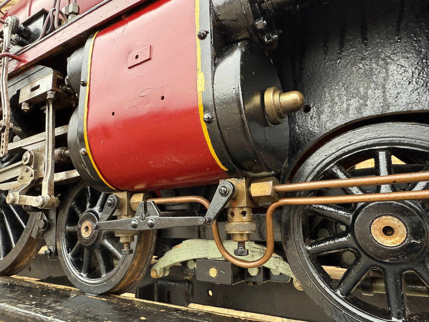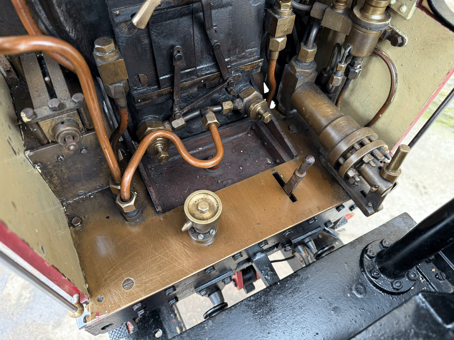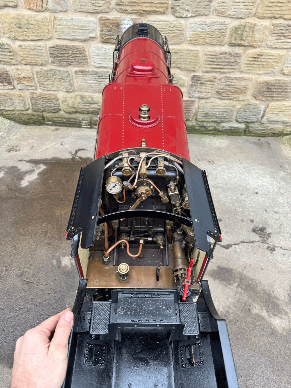 It's a 2 cylinder model, in typical Greenly style, so everything is heavily engineered and very robust. The huge silver soldered copper boiler is very solidly built, and can of course come with fresh twice working pressure hydraulic tests as well as a fresh steam test. Mechanically everything is tight as you'd expect for a well engineered model. Fitted with two decent injectors and chunky mechanical lubricators.