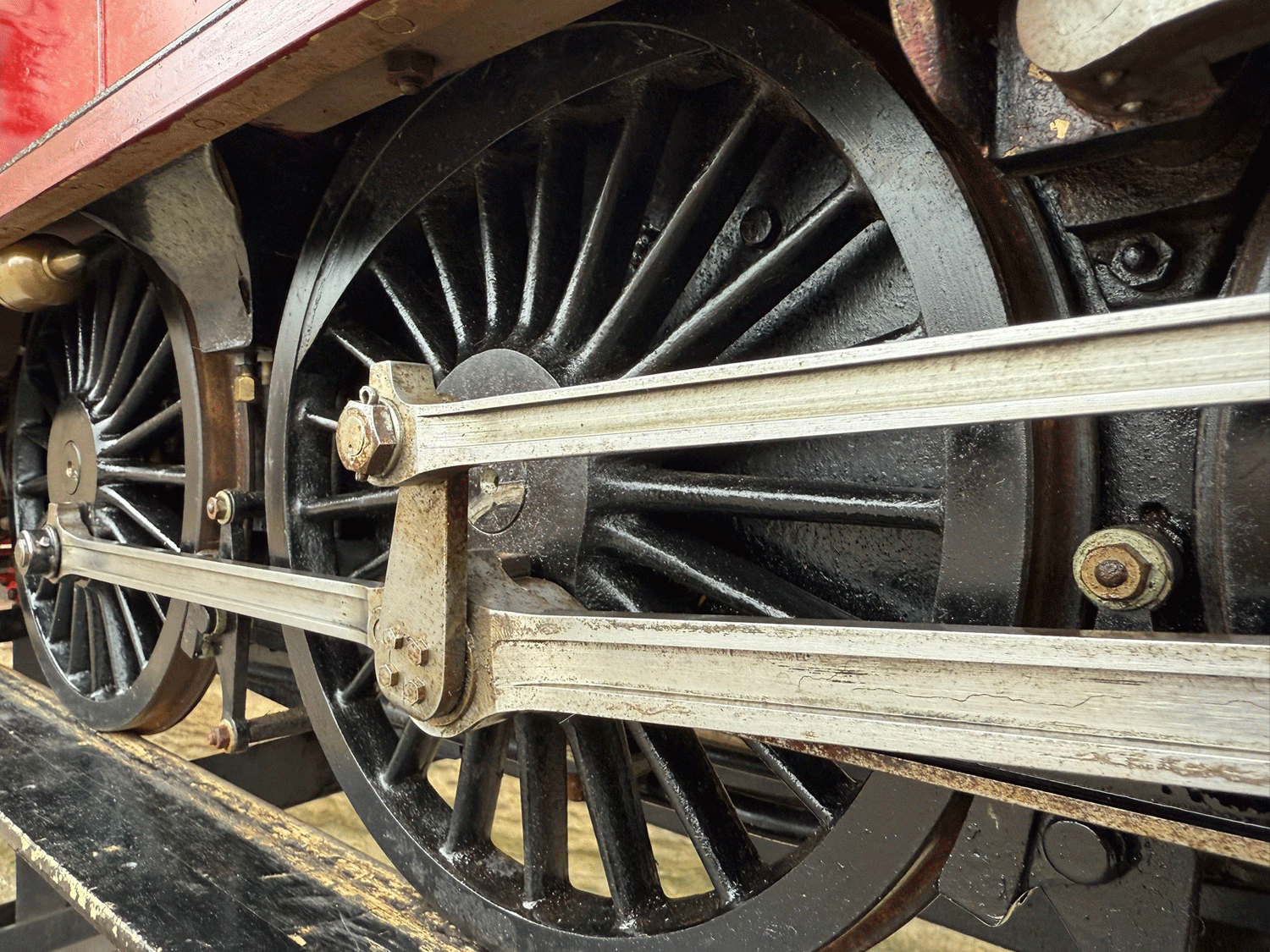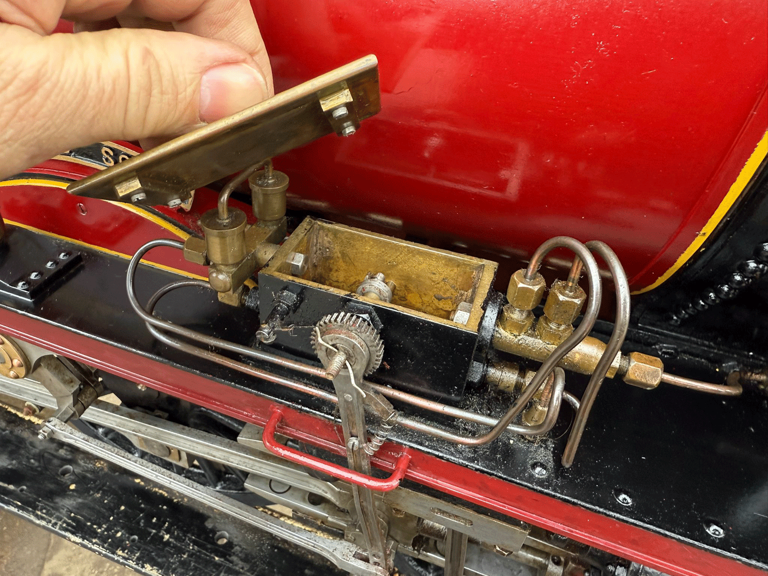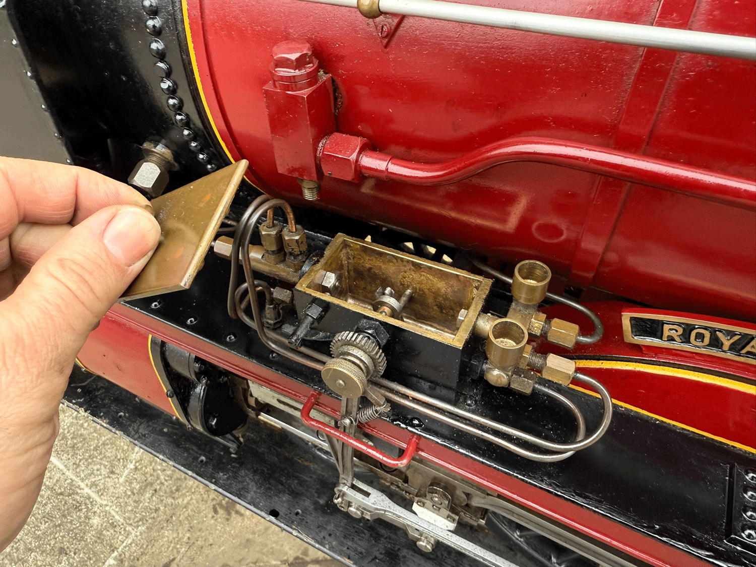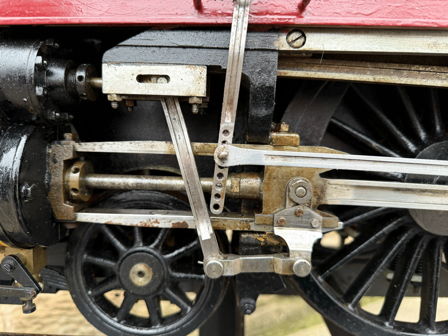 It's a 2 cylinder model, in typical Greenly style, so everything is heavily engineered and very robust. The huge silver soldered copper boiler is very solidly built, and can of course come with fresh twice working pressure hydraulic tests as well as a fresh steam test. Mechanically everything is tight as you'd expect for a well engineered model. Fitted with two decent injectors and chunky mechanical lubricators.