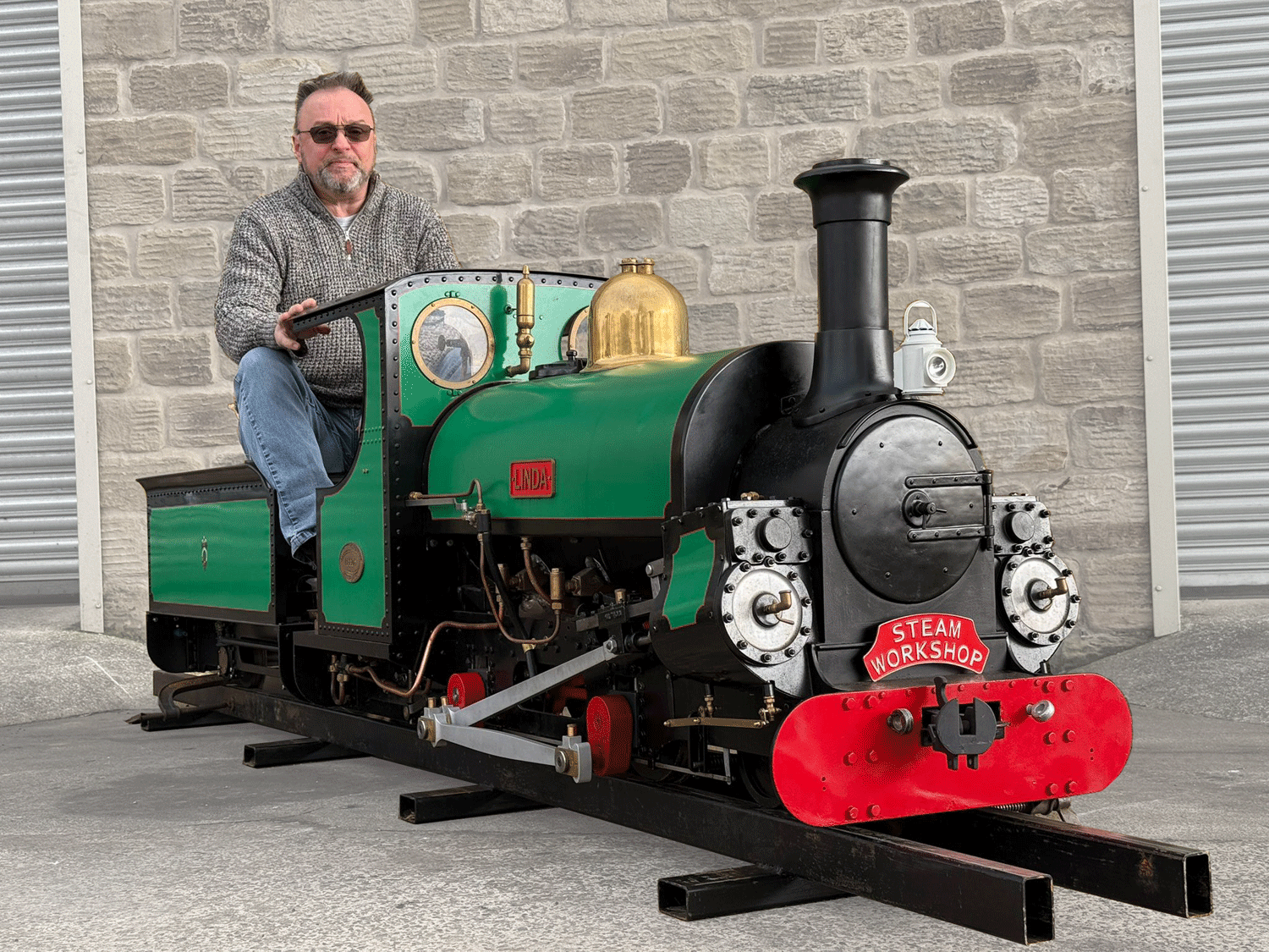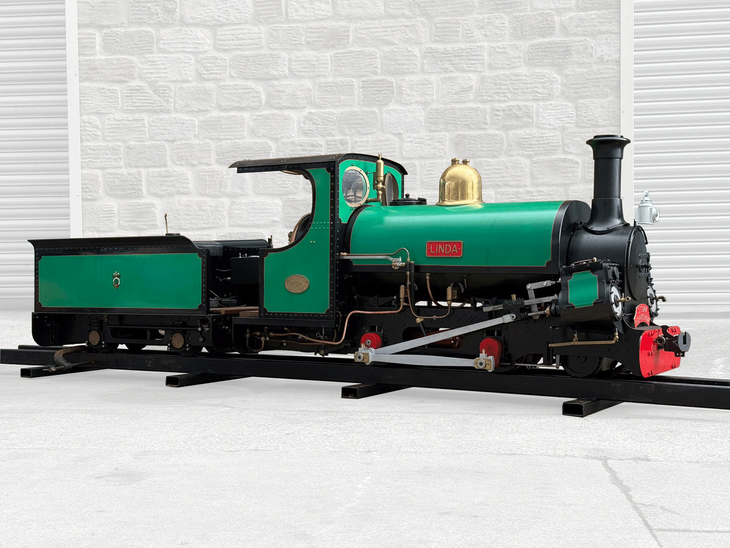 Here we have a 7 1/4" gauge Large Penrhyn Quarry Hunslet, 'Linda'. This is essentially a brand new locomotive with only a hand full of test steamings under it's belt. One of the first finished models assembled over a 12 year period from the kit available from Engineer's Empourium, but with a particularly beautiful professional steel boiler manufactured by AJB Engineering.