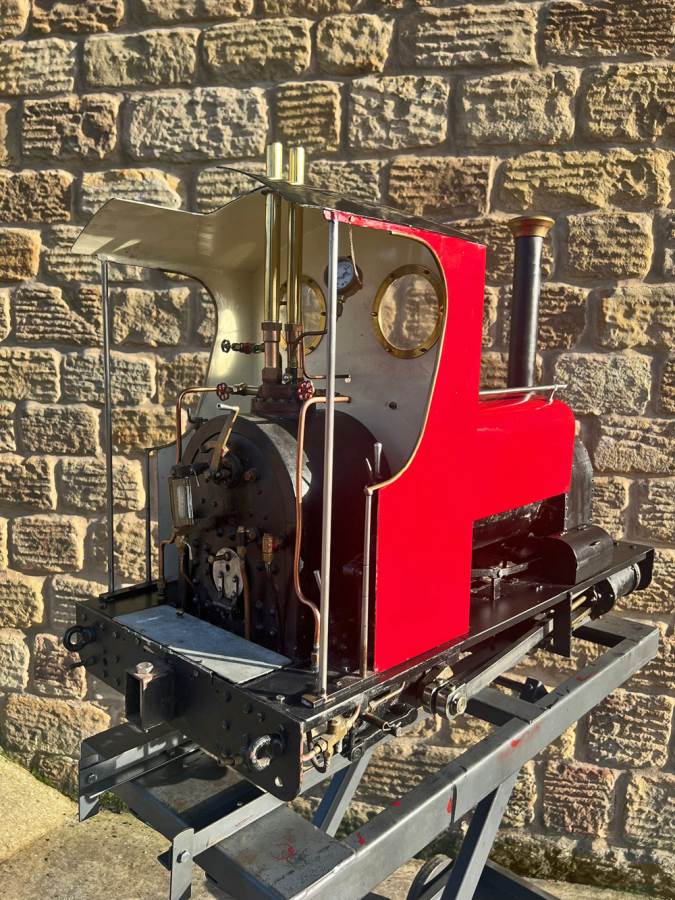 Here we have a 3" scale 7 1/4" gauge Quarry Hunslet. A slightly basic model of the iconic Alice Class Quarry Hunslet, albeit with a lovely professionally silver soldered copper boiler made by the very well respected John Ellis that as always can come with a full fresh hydraulic test and a fresh steam test to ensure all is working as it should. Machining work on the valve gear looks plain but solidly made and certainly everything runs nicely enough.