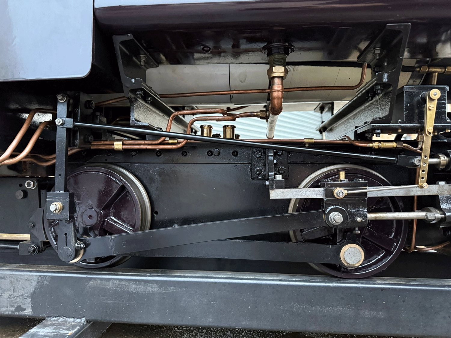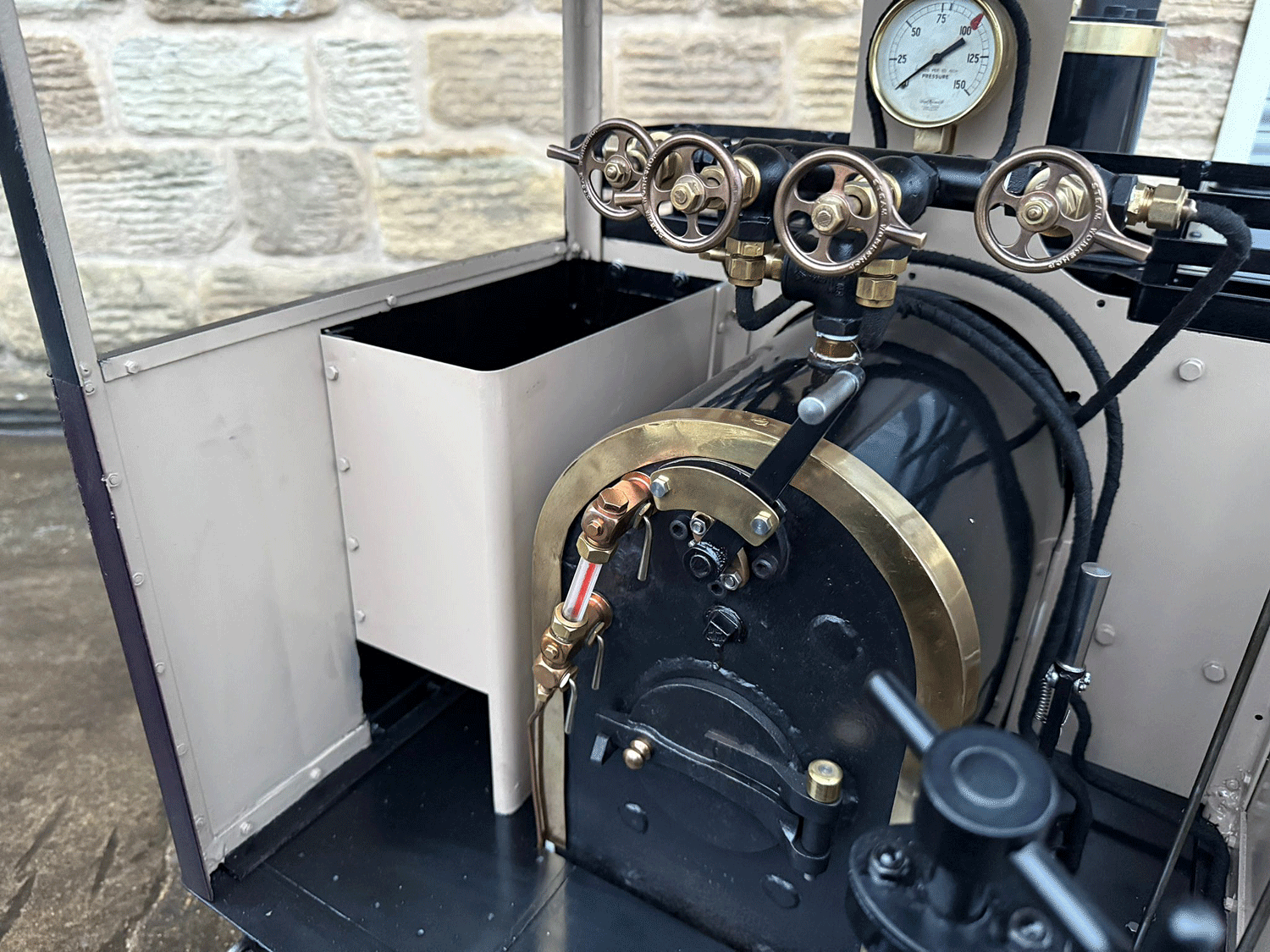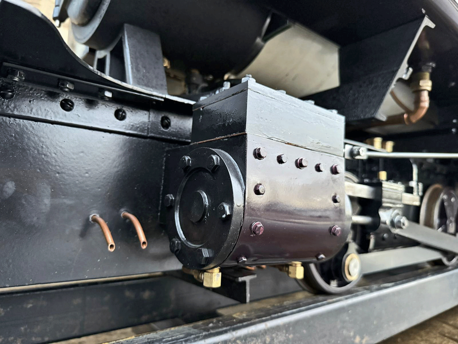 Mechanically all's well with most fittings being beefed up a little over the standard Romulus design to produce a more robust loco, and all the bushes, bearings and pins have been renewed. The boiler is steel and comes with a fresh set of new tubes, healthy ultrasonic tests and a fresh boiler test both hydraulic and steam so she's fully renewed and ready for a fresh lease of life!