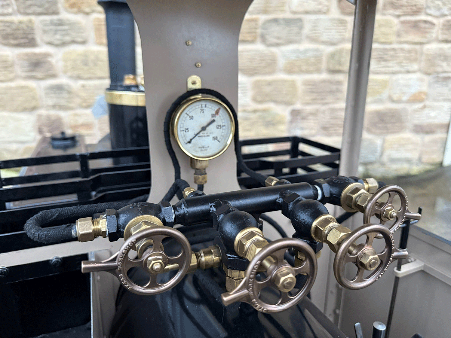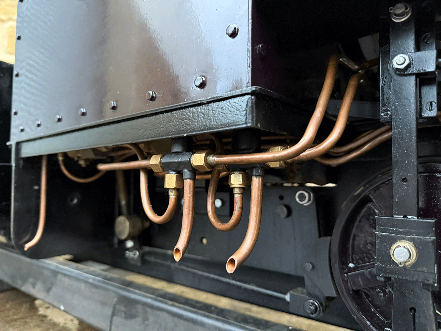 Inspired to a certain extent by the 2' gauge Hudswell Clarke 'Alpha', but obviously with a huge degree of poetic licence. There are twin injectors, one fed from the tanks and lubrication is mechanical.