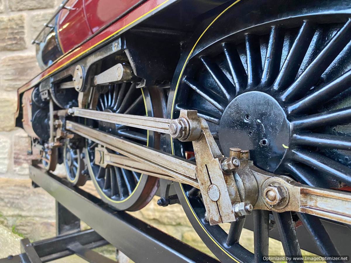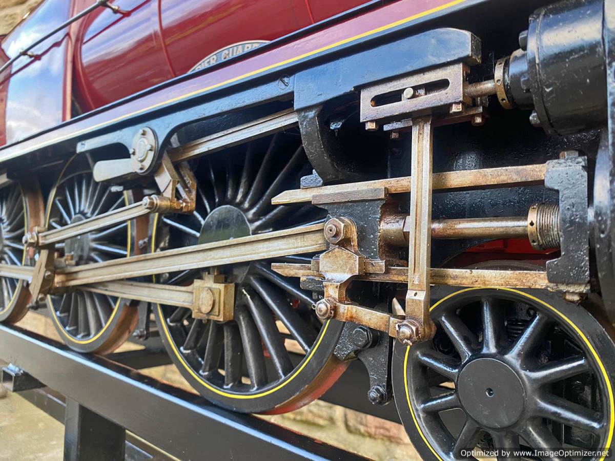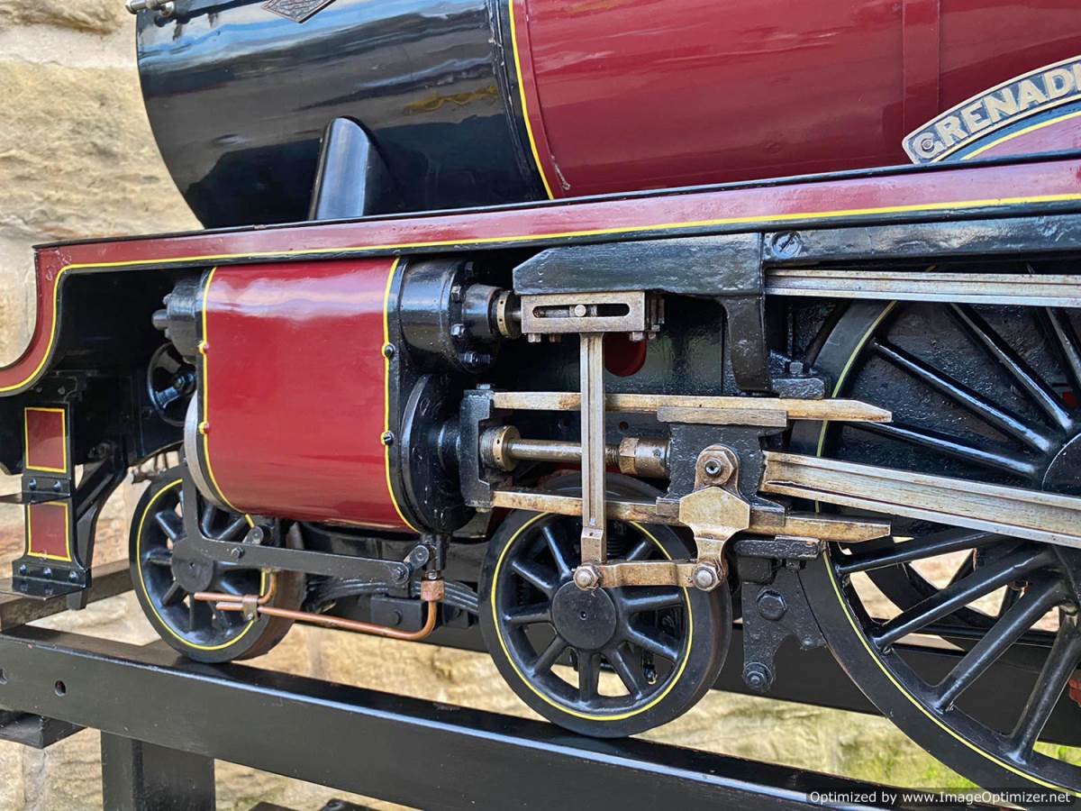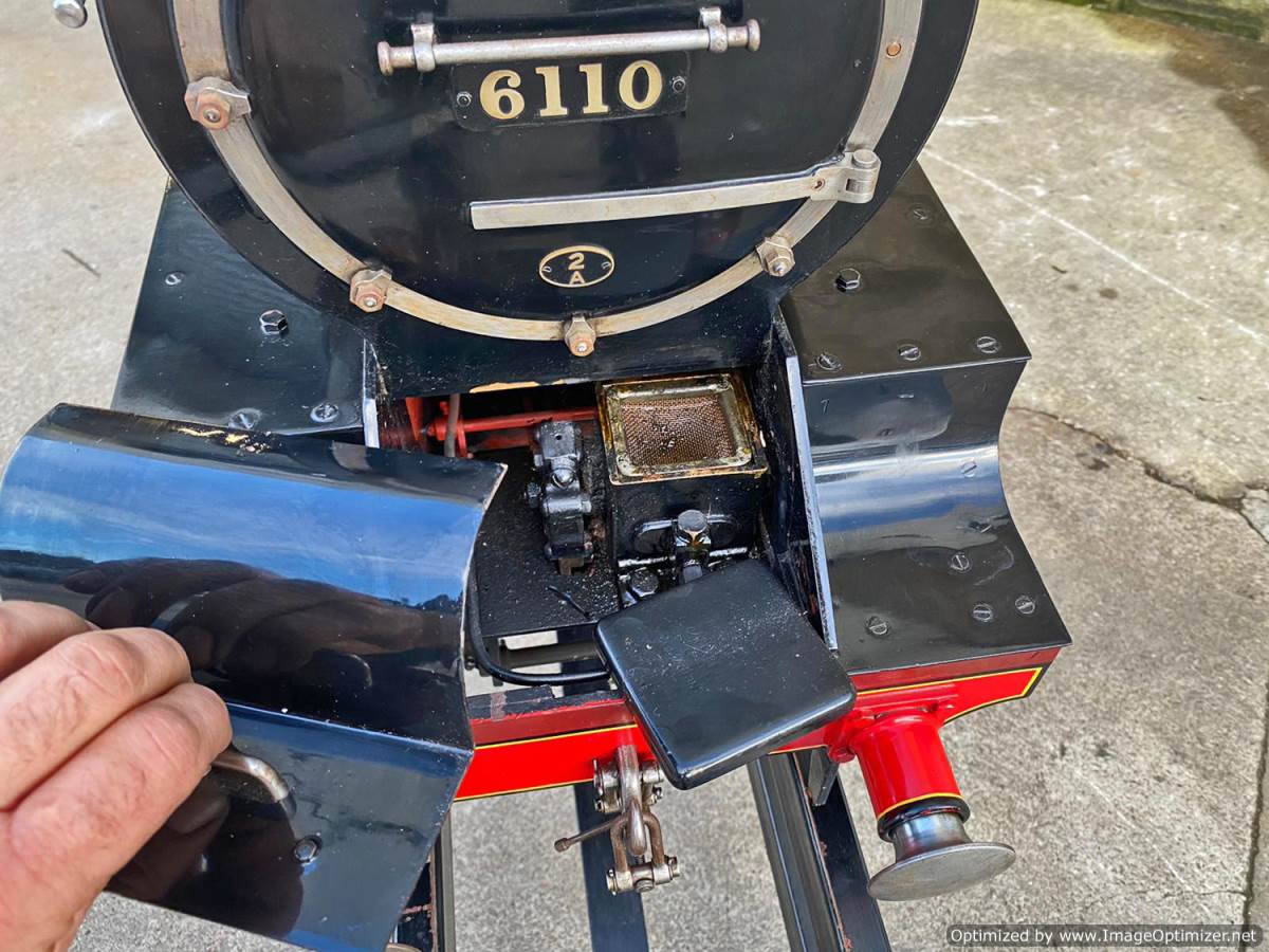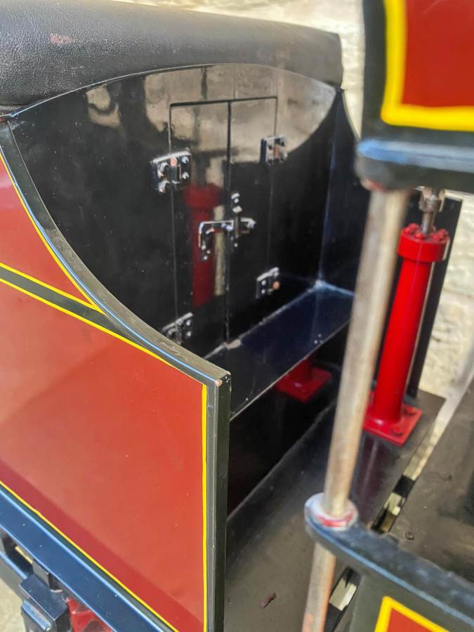 The boiler is copper and silver soldered, and can of course come with a fresh 4 year hydraulic test and annual steam test. Fitted with two injectors, a particularly sturdy looking axle pump and footplate mounted bypass valve and a hand pump in the tender. Lubrication is mechanical and hidden under the front running boards, driven from a chunky eccentric. Paint finish is superb and generally mechanically speaking the model looks like it's hardly run.