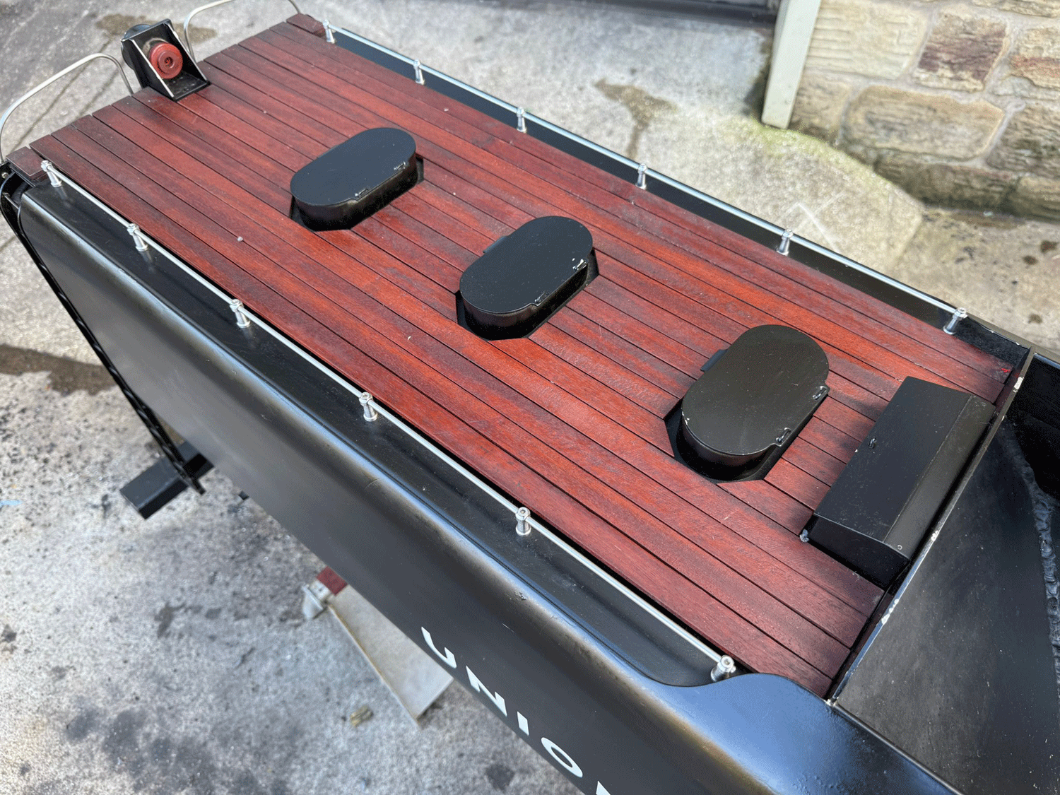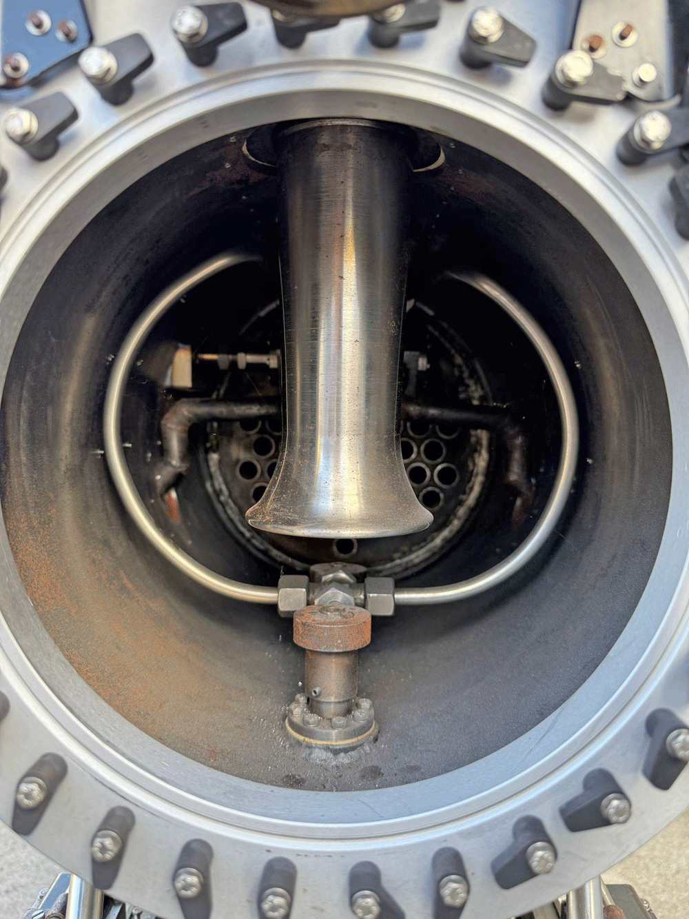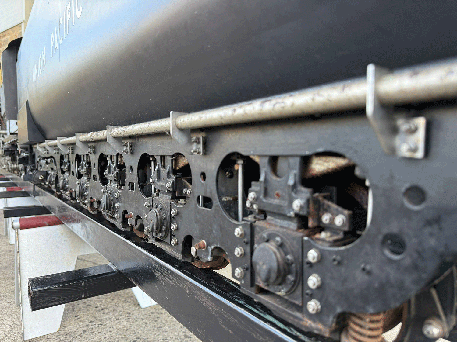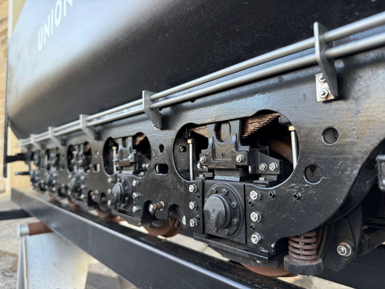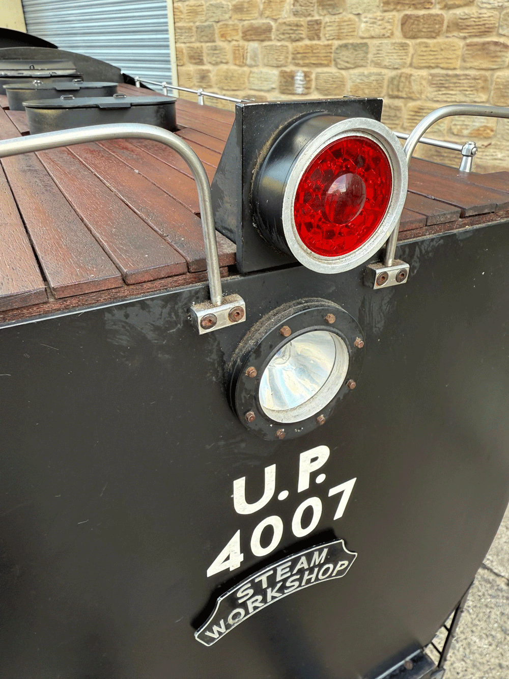 The correctly shaped boiler is steel with expanded in steel tubes, and is professionally (and nicely) made with all the important certification and paperwork. The bottom end is all there, and has run on air, and has also been tested around the track to make sure everything rolls, bends and follows the track as it should!