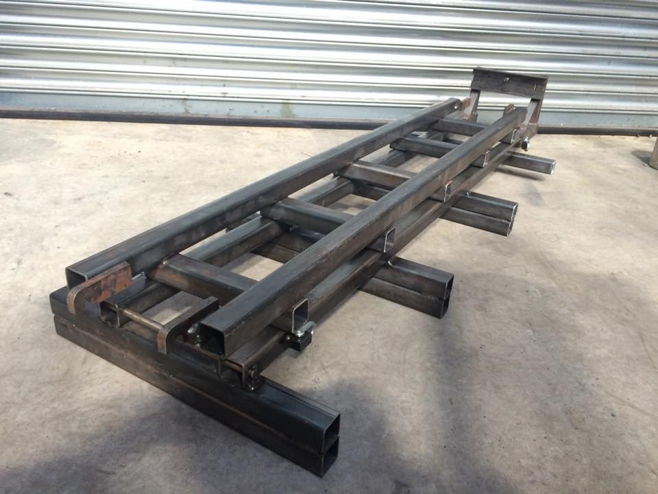....... and there's more! The solidly constructed trolley/rolling road, also comes with the model, and we can confirm that it's lovely to be able to swing her about in the workshop without inducing a hernia! Lastly there is a neatly made steel box section welded length of rail to fasten into your car, trailer or van, and a removable length of rail designed to bridge the gap between rolling road/trolley and the car. All in all a well thought out and complete set up.