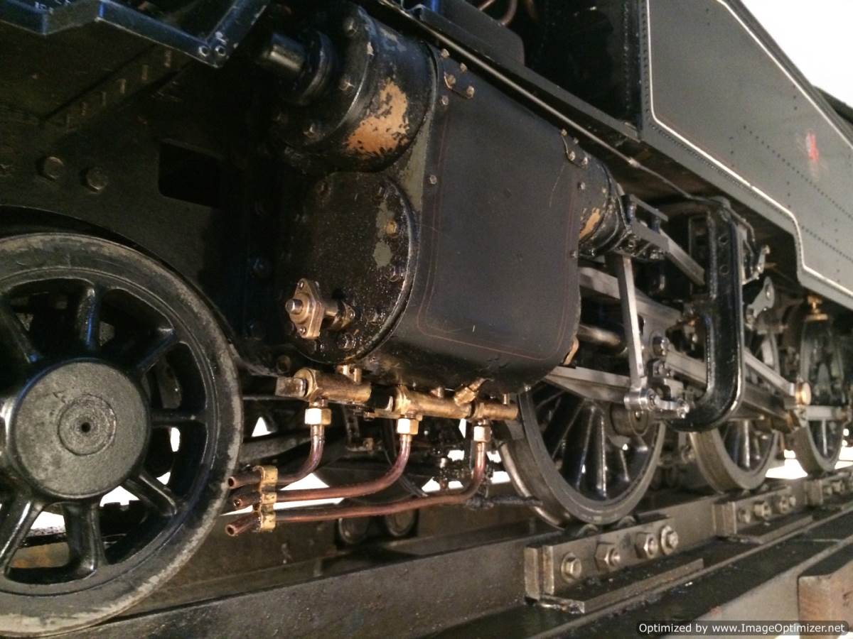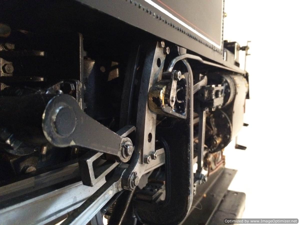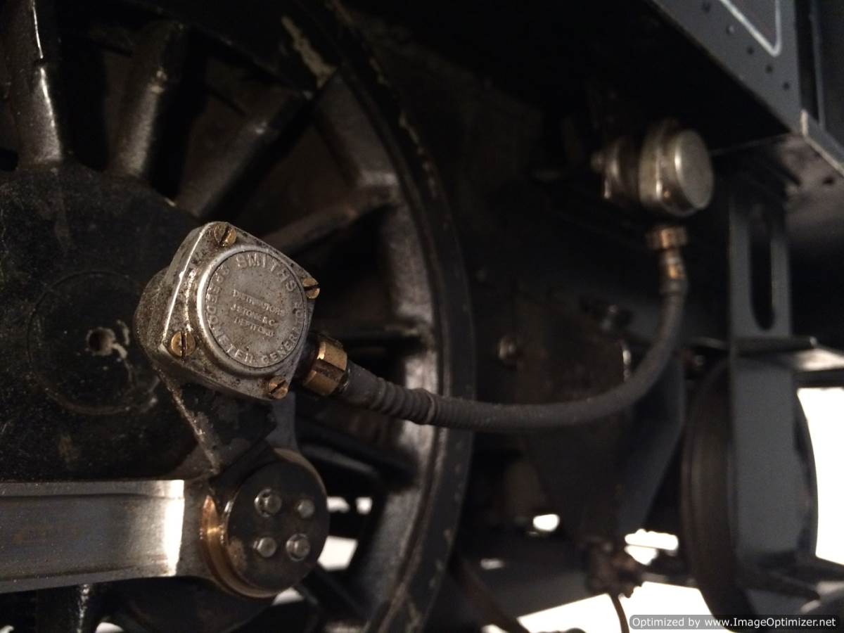 There's a hand brake, steam brakes and vacuum brakes all operated by beautiful Gresham & Craven scale fittings in the correct prototypical places. The speedometer is a work of art as far as we are concerned, fully working naturally, (driven by a delicate little sensor hidden in the Smiths gearbox on the return crank), as are all the other gauges and dials on the footplate. Both the small and large ejector are fully functional, raising a healthy vacuum on the gauge just as you would hope for such a detailed working model. Particularly interesting is the scale Autotrain 'push-pull' vacuum gear either side of the smokebox, certainly something that you're unlikely to see on another model. There's lovely little details like the fireman's slacking hose and even carriage steam heating fitted!