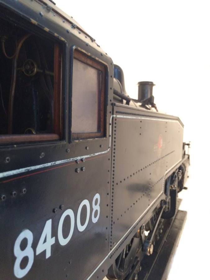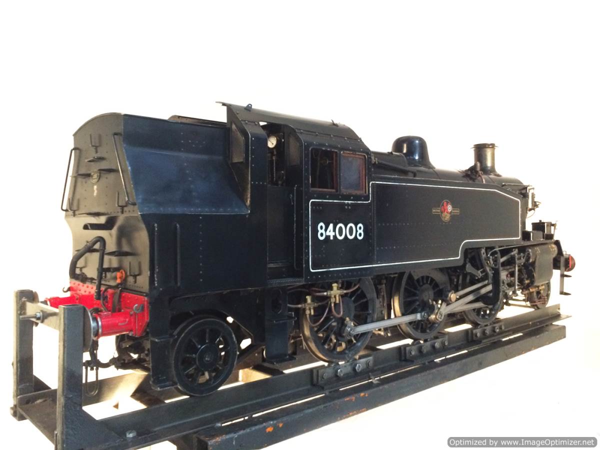 Here we have a rare and particularly nicely built BR Class 2 2-6-2, made by the same builder as the 7 1/4" Terrier tank that you may remember we had in last year. The level of detail in this one is really first class. All the usual things you'd like to see are there. Twin injectors fed from the side tanks and the riding truck (which is also here included with the locomotive), or by a re-distribution of the hoses you can run just from the tanks. There are footplate operated draincocks etc. Lubricators are mechanical and mounted prototypically up the front on the running boards. The boiler is a copper silver soldered one set to run up at 100psi.