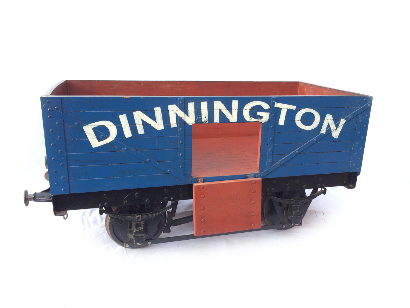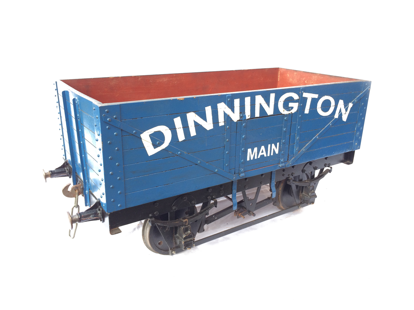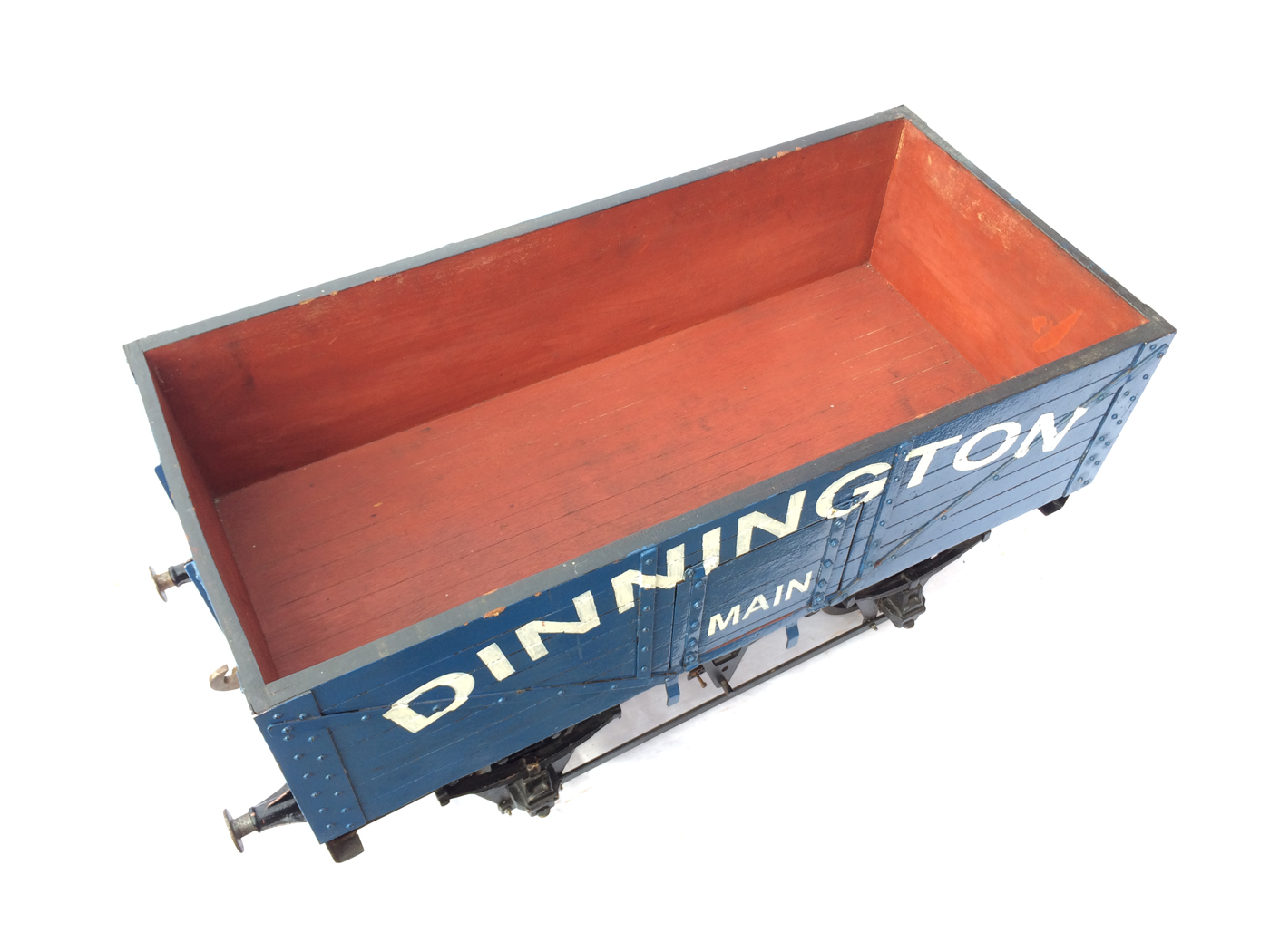 Here we have a scratch built 7 1/4" colliery wagon, painted in Dinnington Colliery livery.  This is one that we've had for years, and since our move to play more with 5" it,..... along with the rest of our 7 1/4" fleet has fallen into diss-use.  Time to offer it to pastures new rather than see it languish any longer at the back of the store!