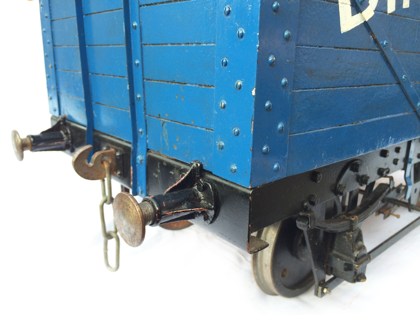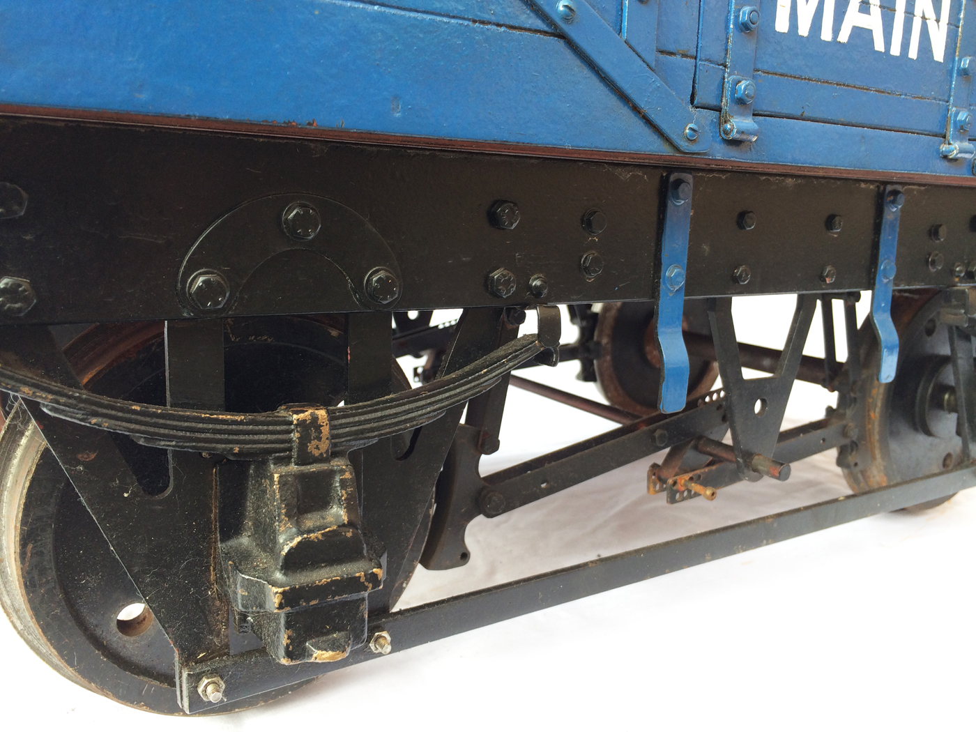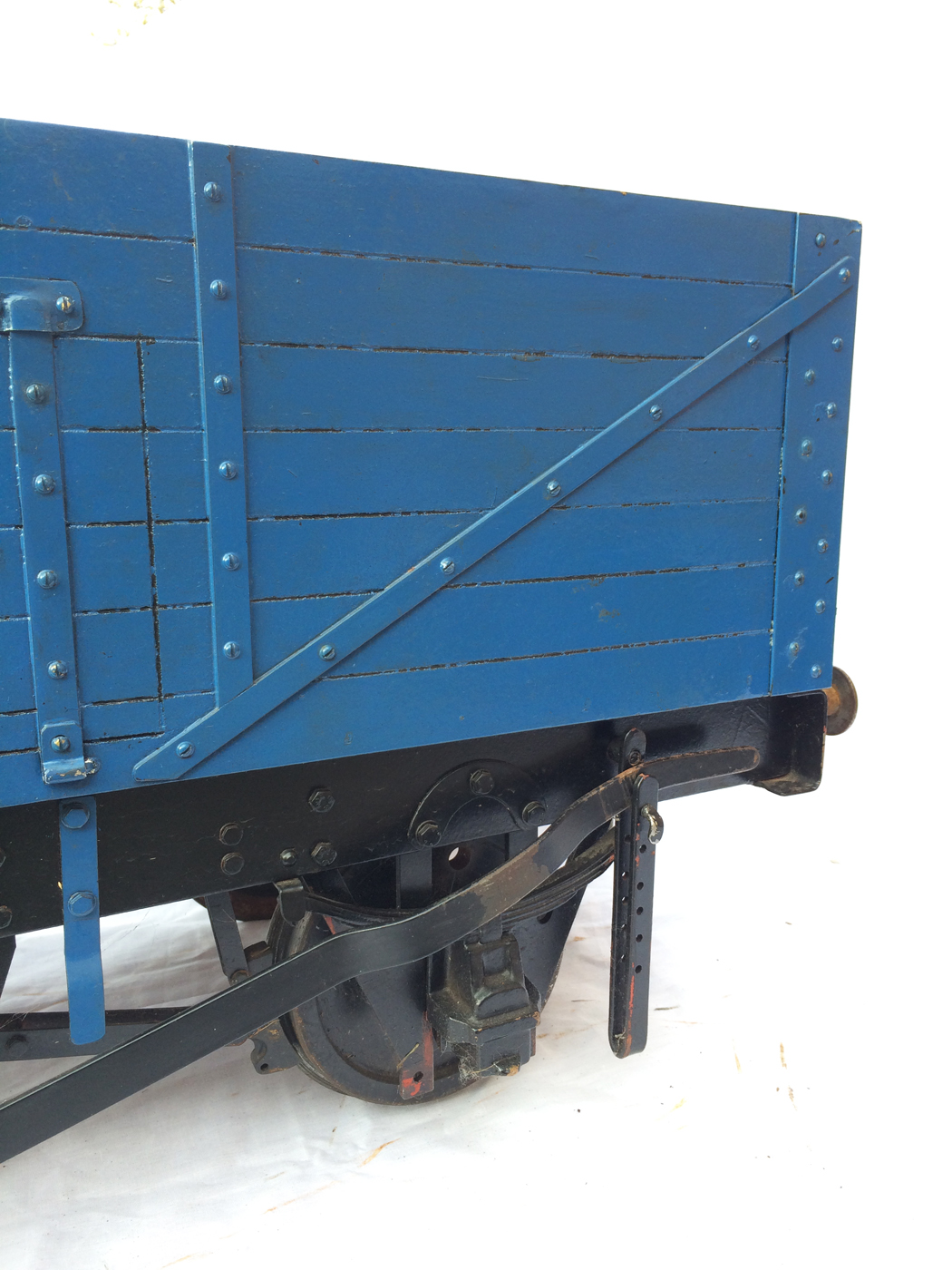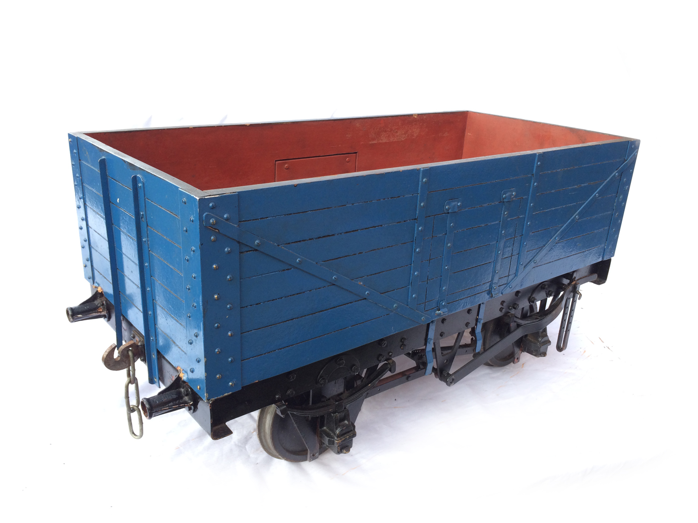 Here we have a scratch built 7 1/4" colliery wagon, painted in Dinnington Colliery livery.  This is one that we've had for years, and since our move to play more with 5" it,..... along with the rest of our 7 1/4" fleet has fallen into diss-use.  Time to offer it to pastures new rather than see it languish any longer at the back of the store!