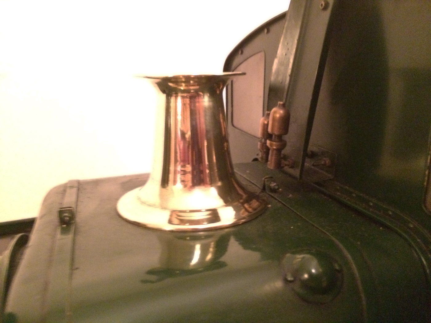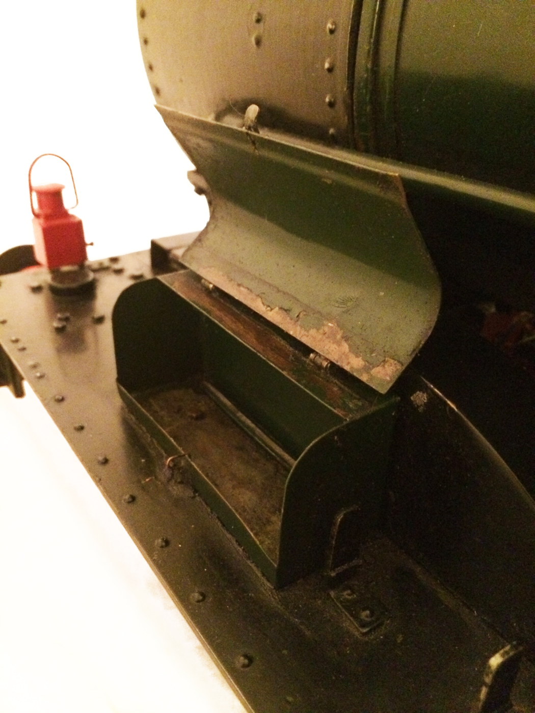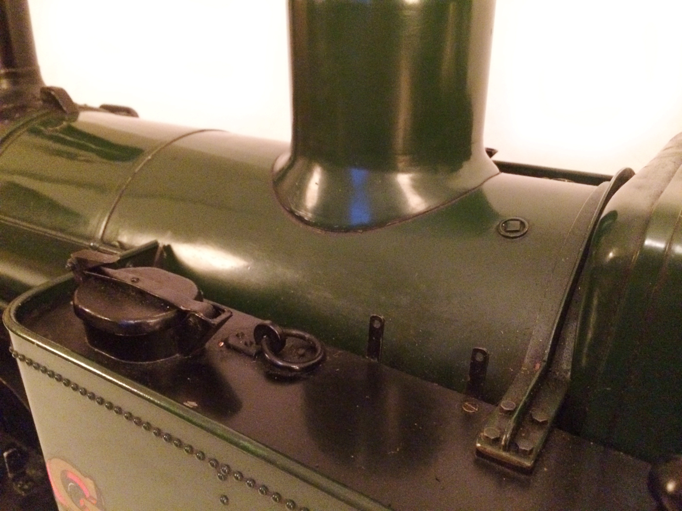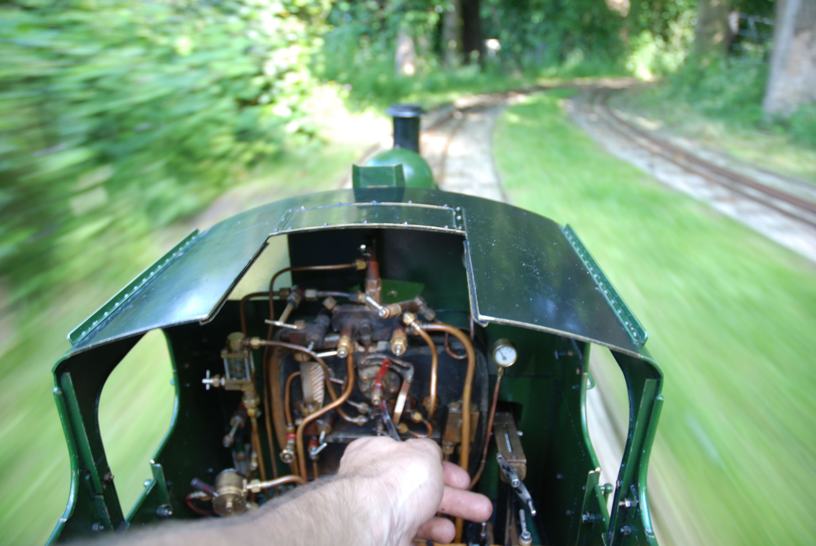 She is built mostly to the Martin Evan's well proven 'Dart' design, although the safety valve bonnet has been relocated to the correct position, and the cylinders are of a slightly larger bore to give her a little more power.  (Under a decent load, she will suck the coal off the shovel!)