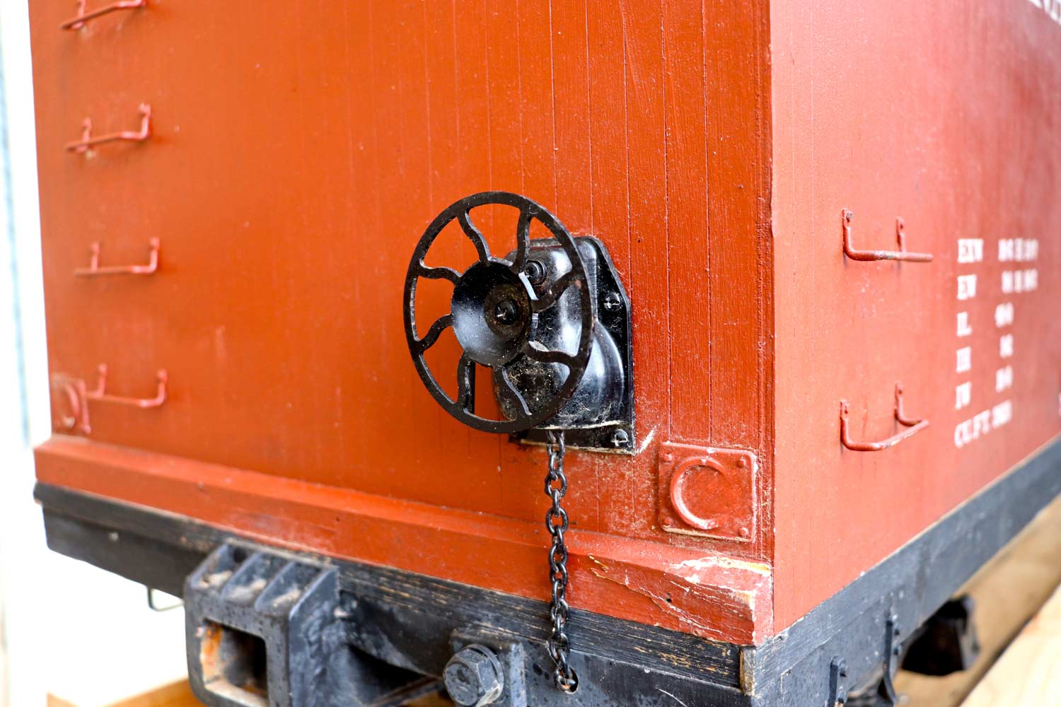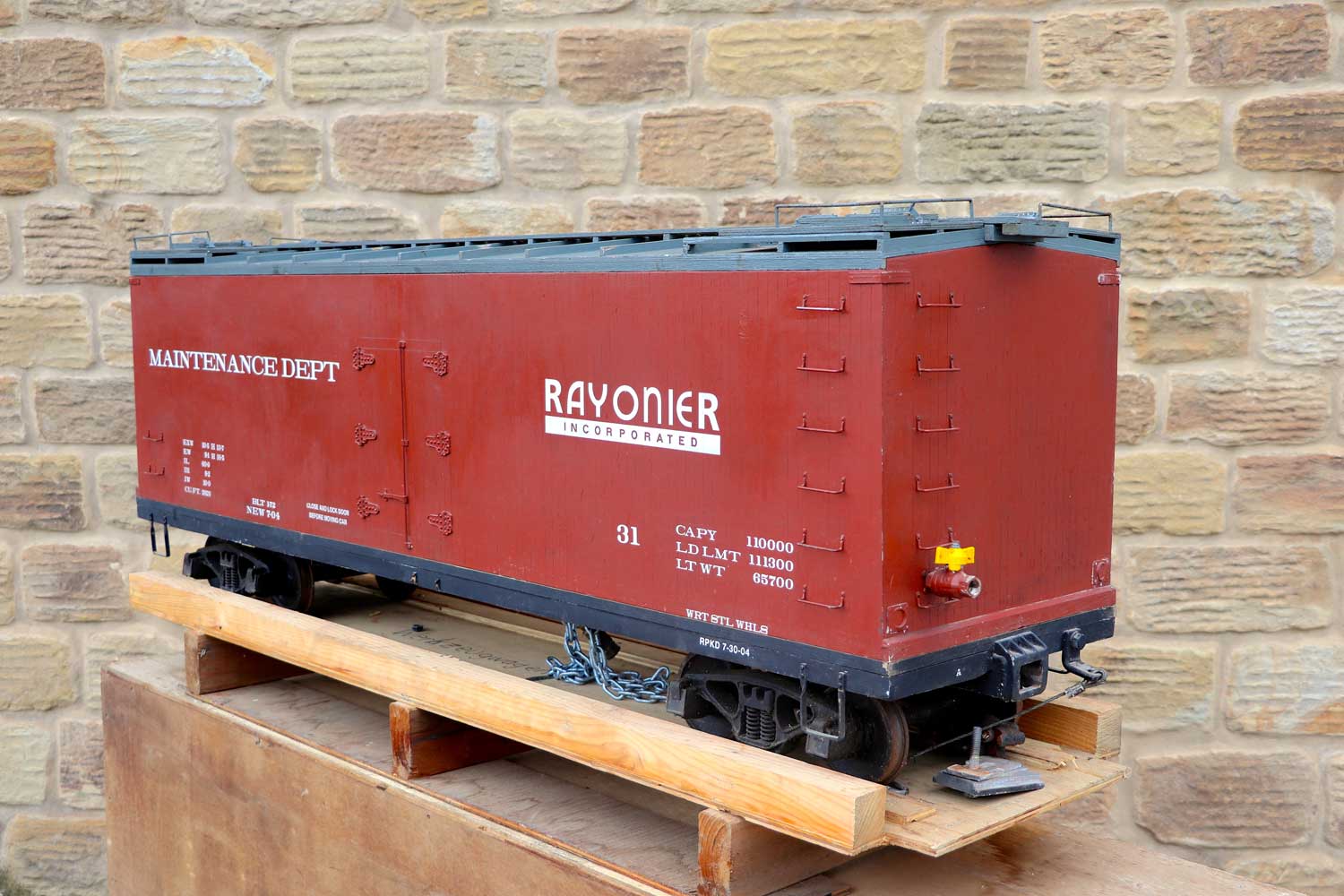 Here we have a 7 1/4" gauge American Railroad van.  Ideally to go with the Heisler locomotive that we have in stock.  It was to hold the gas bottles for the loco as she is currently gas fired, but we anticipate that the loco will be converting the model to coal firing upon sale so the need to carry gas will be gone.  As usual we are really busy in the workshop so for the moment have a good look at the photographs and any questions give us a bell!