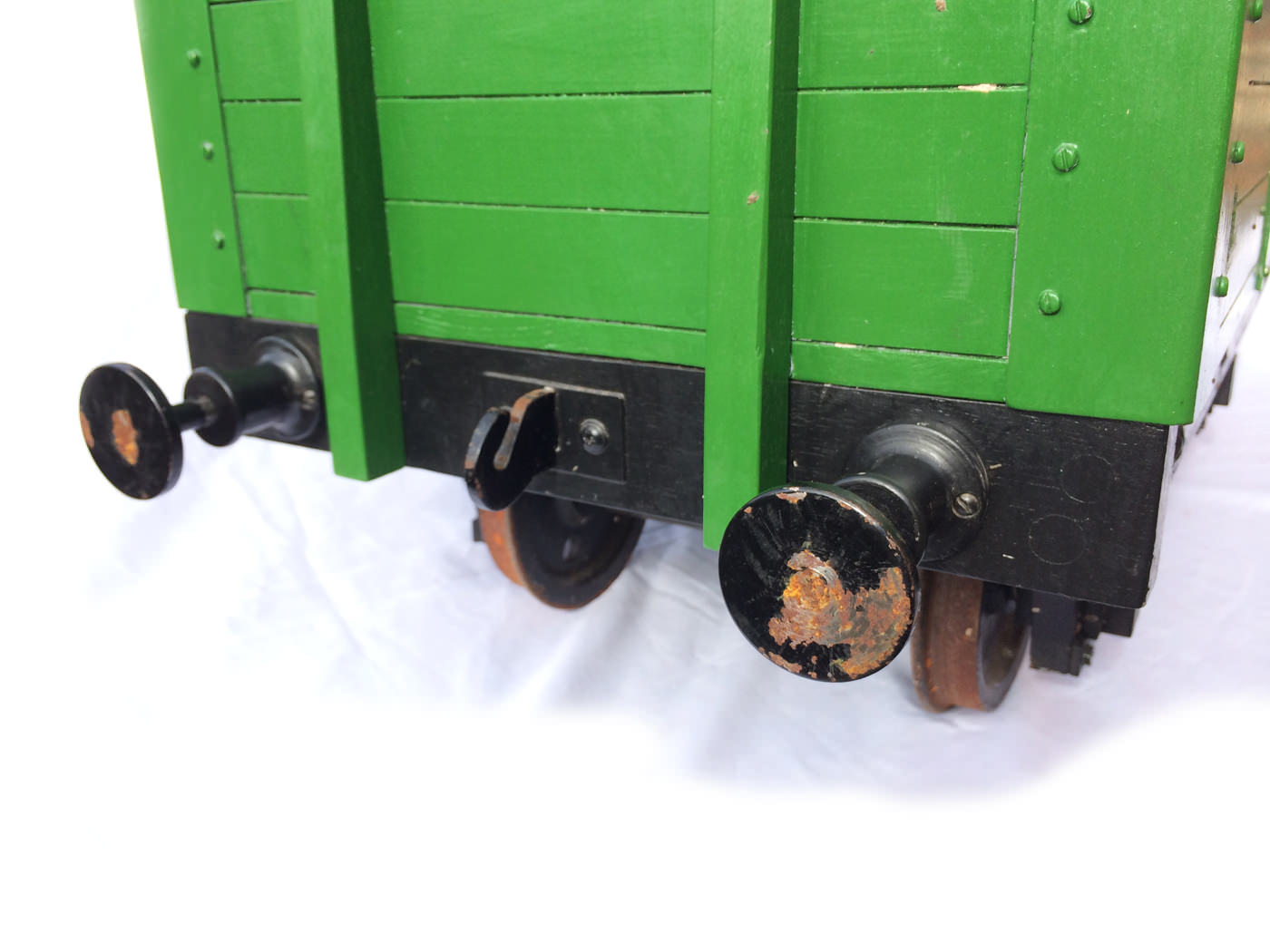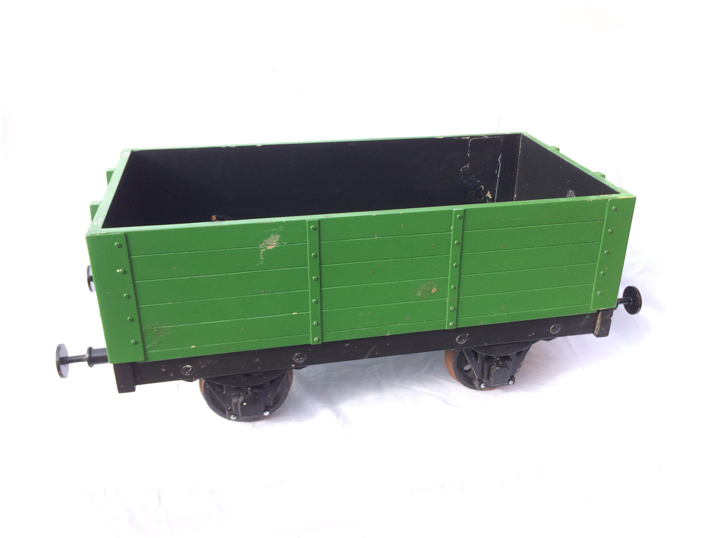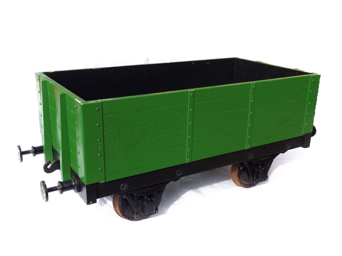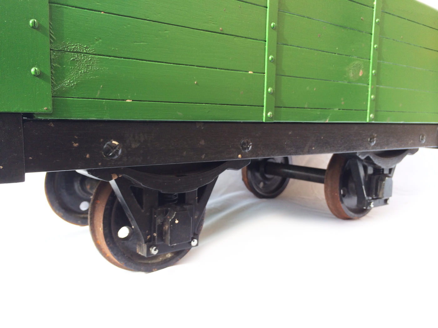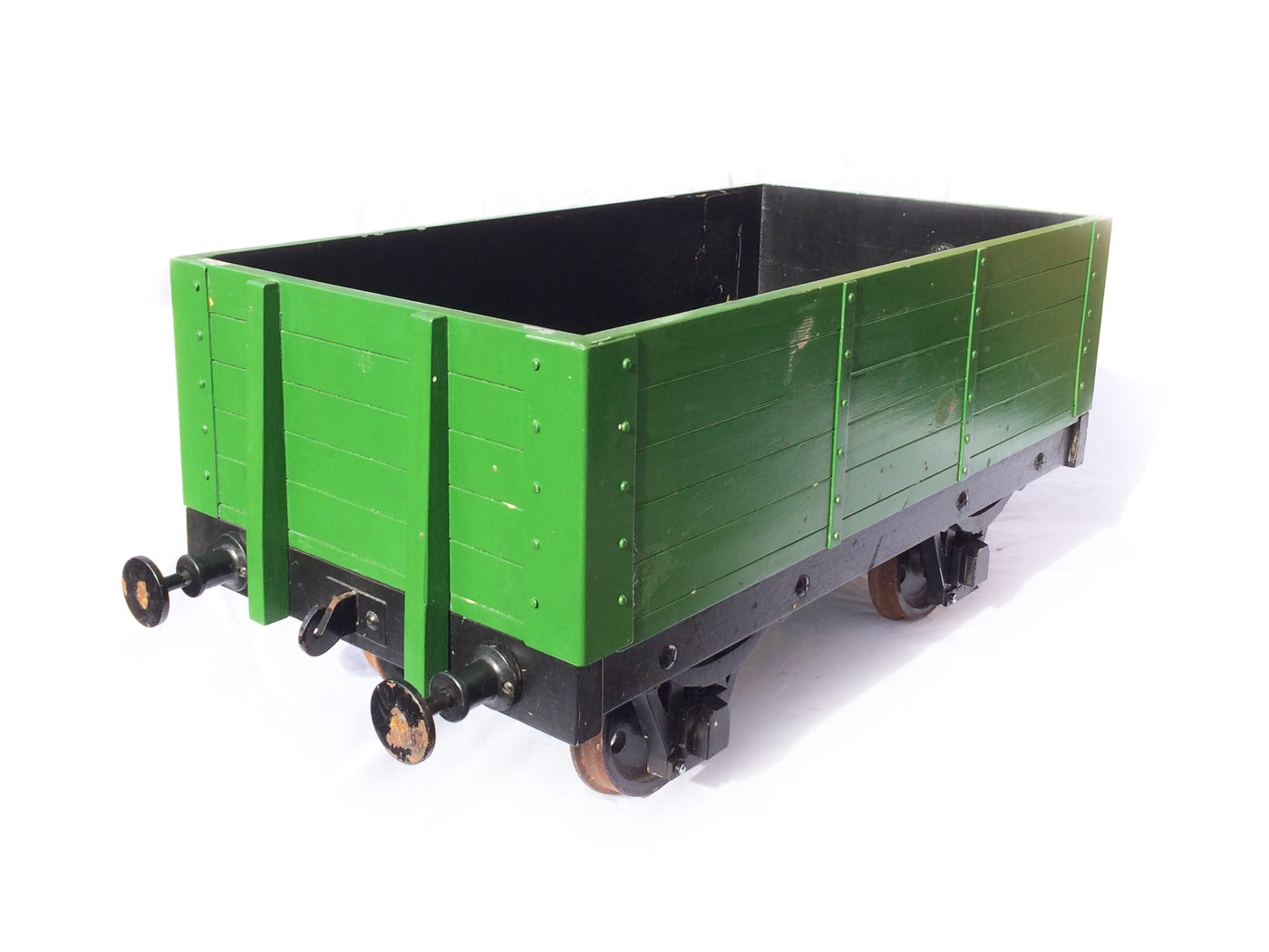 Here we have a 7 1/4" Gauge scale wagon. It's not the sort of 'fine scale' and highly detailed model that you might expect to see trundling around Gilling, but more a fair and robust representation of a standard gauge wagon.