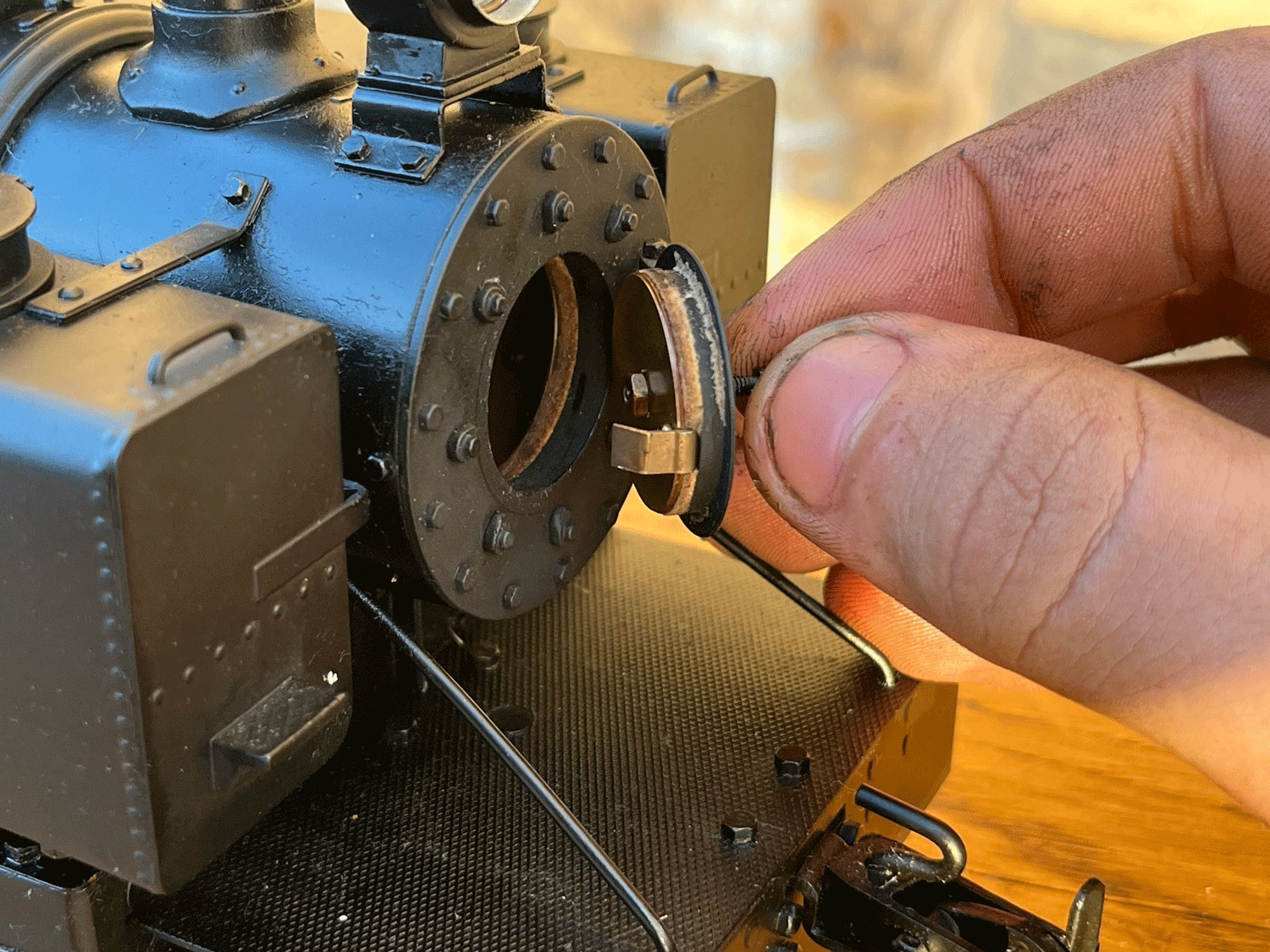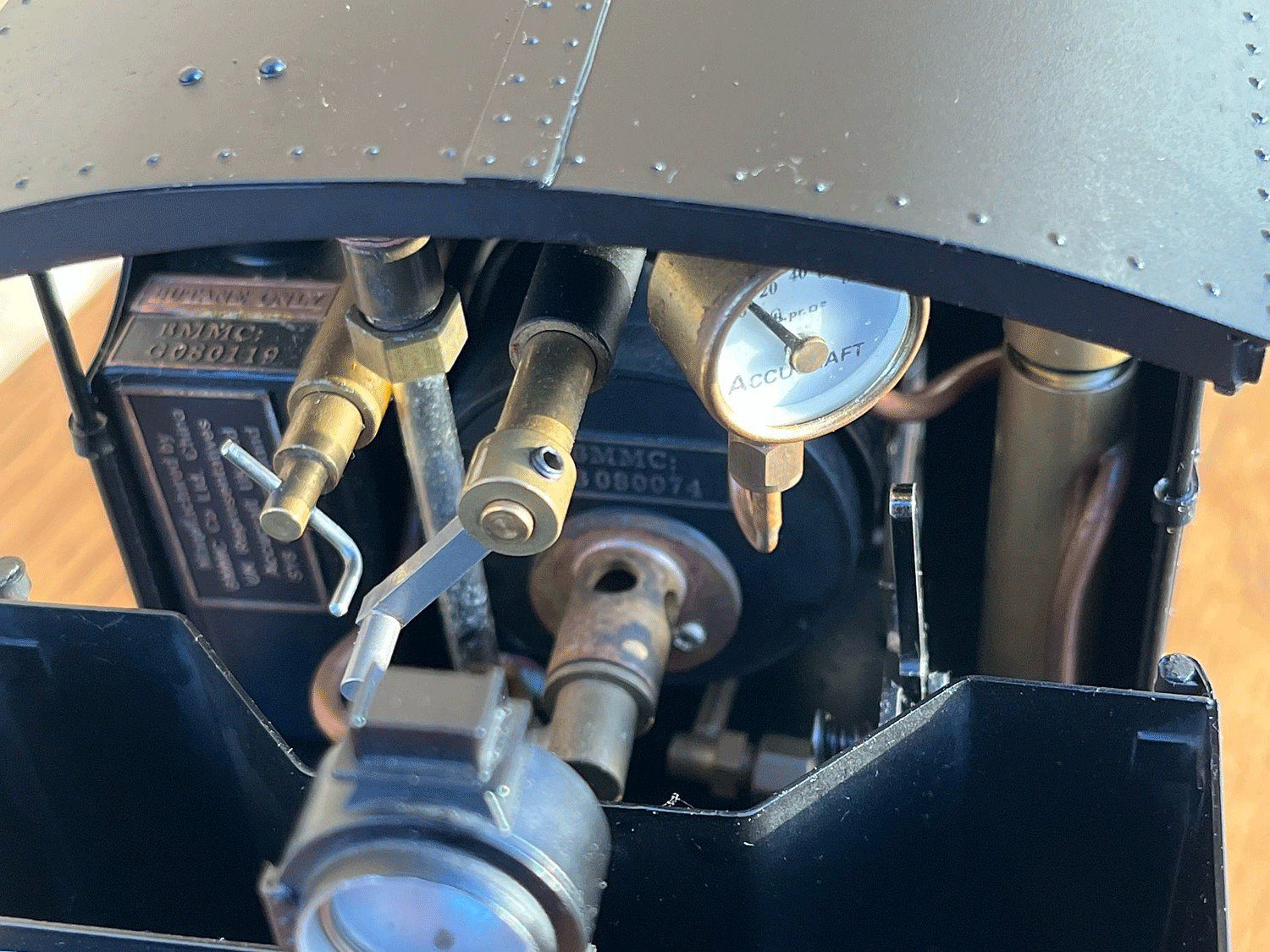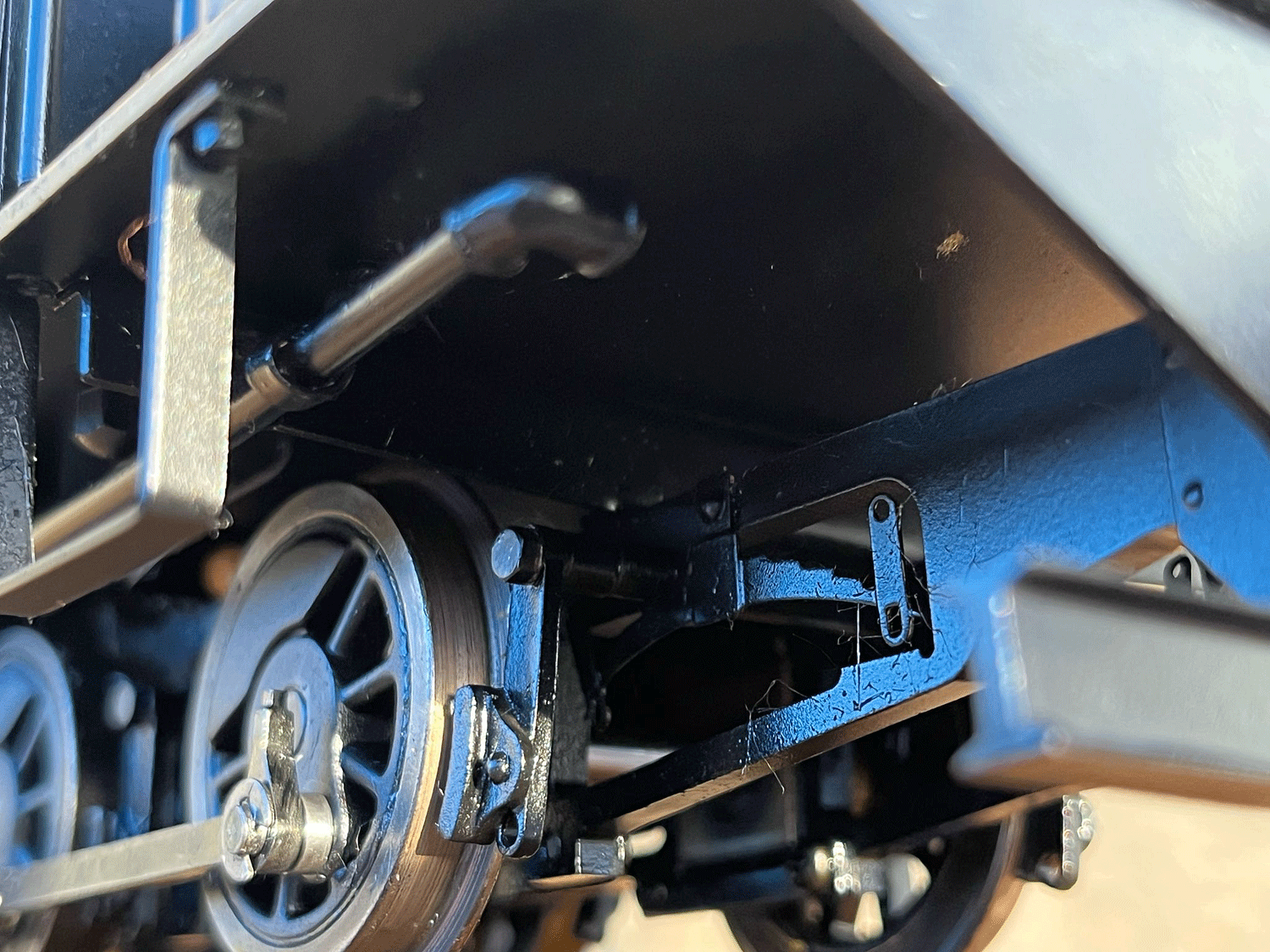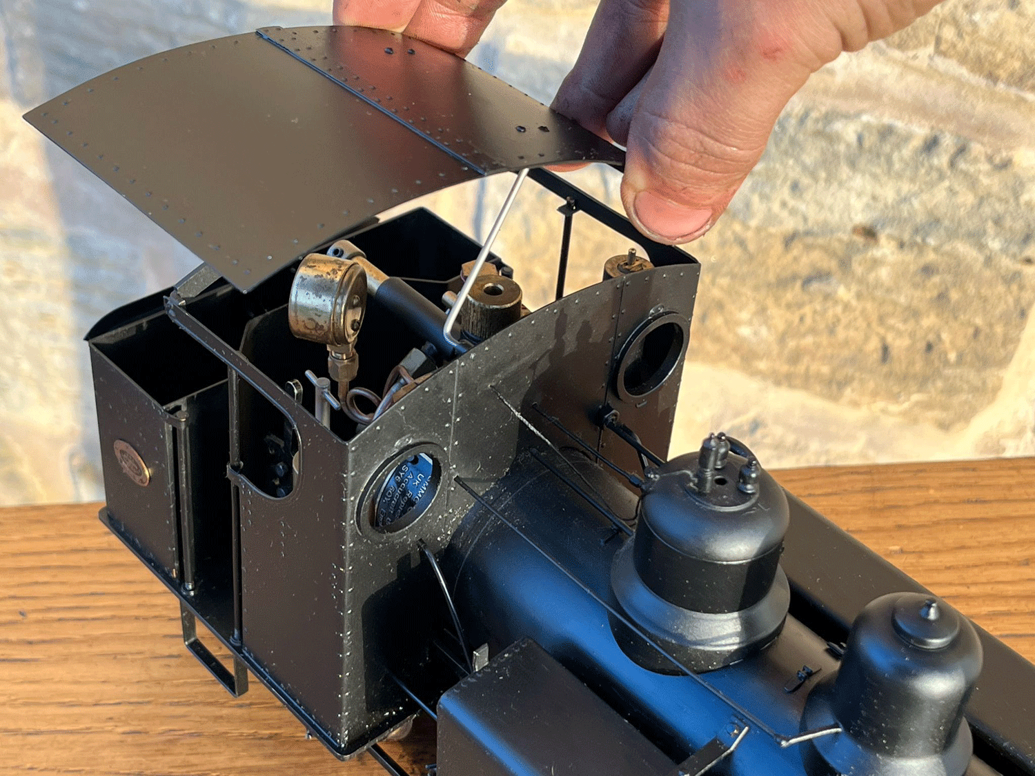 Here we have a 45mm Baldwin 10-12-D 4-6-0. The model is internally gas fired and is constructed from etched brass and stainless steel. The model was only ever available in manual control version. The boiler is fitted with a water gauge glass. The locomotive comes fitted with Accucraft standard square headed chopper couplings. The wheels are insulated as standard. The cab roof lifts up and tilts sideways to give easy access to the cab interior.