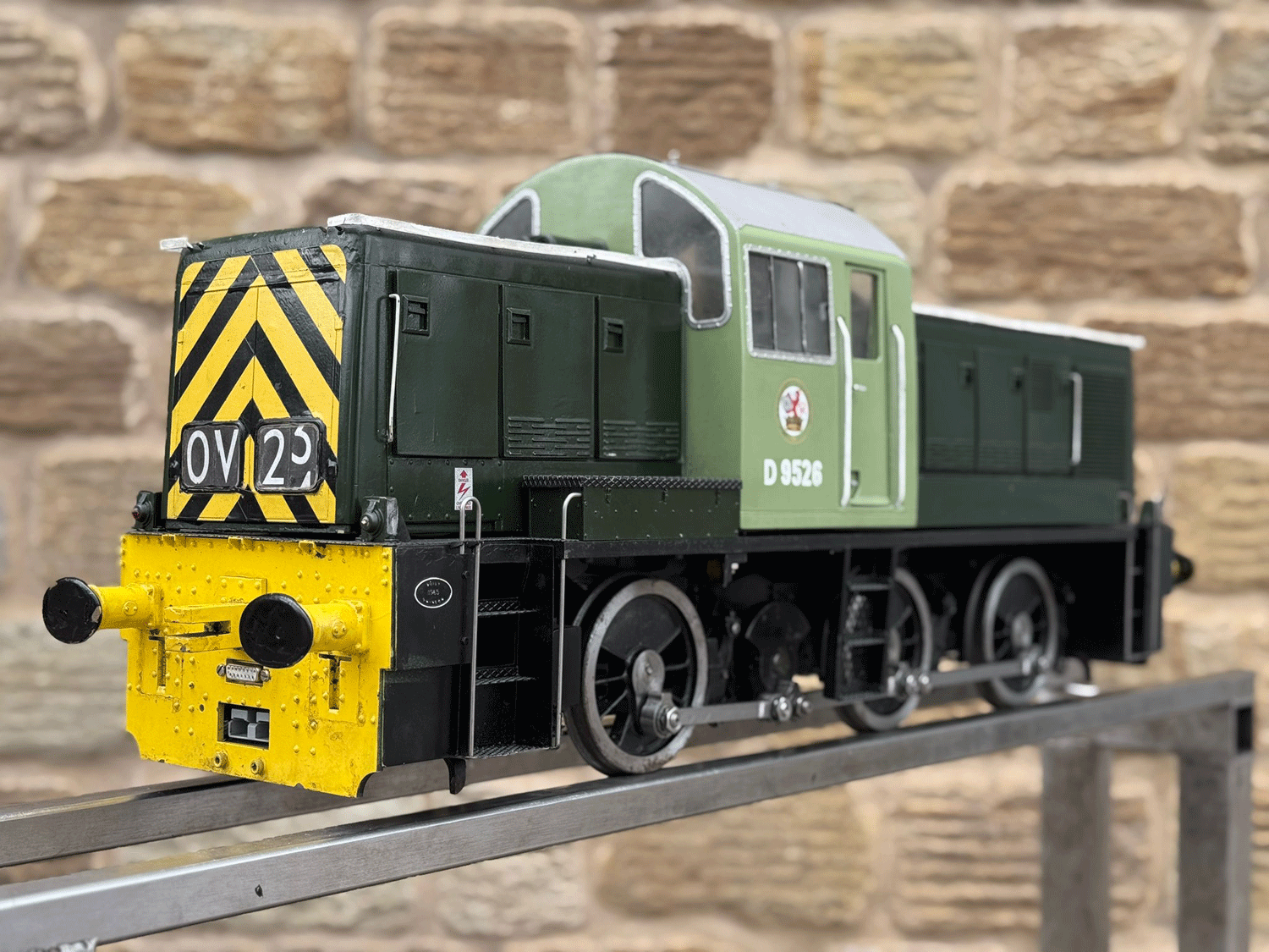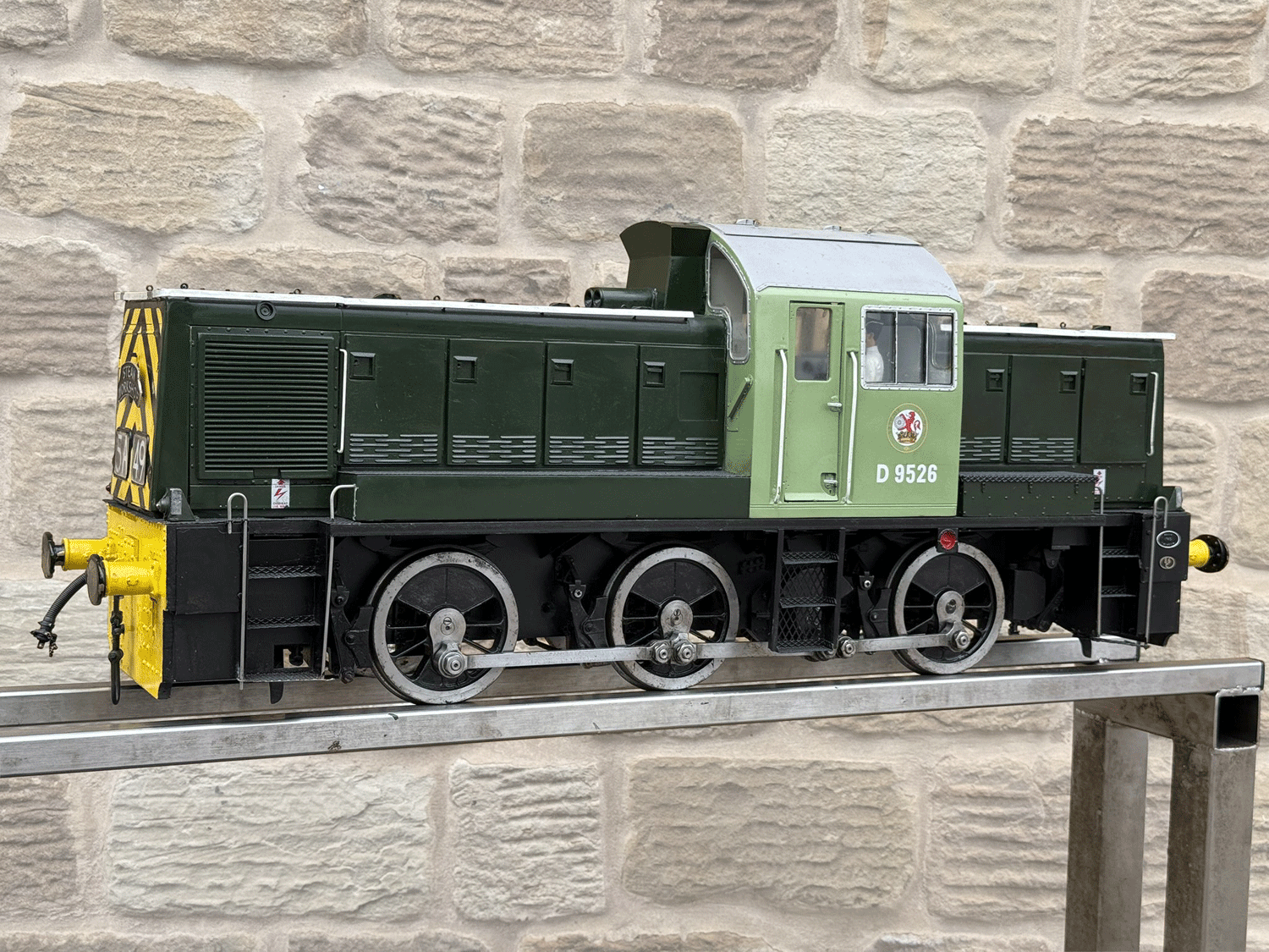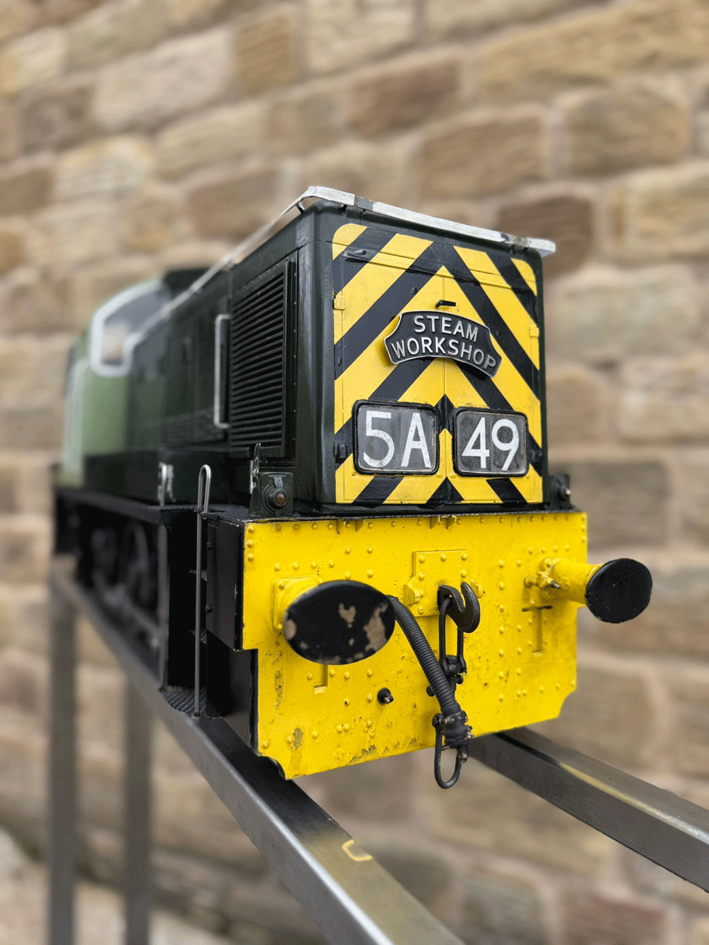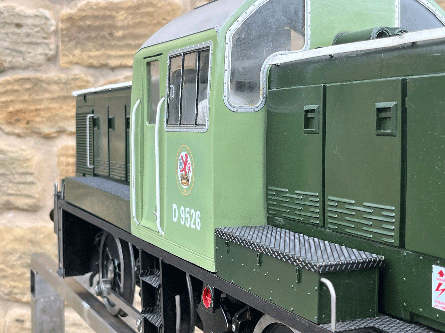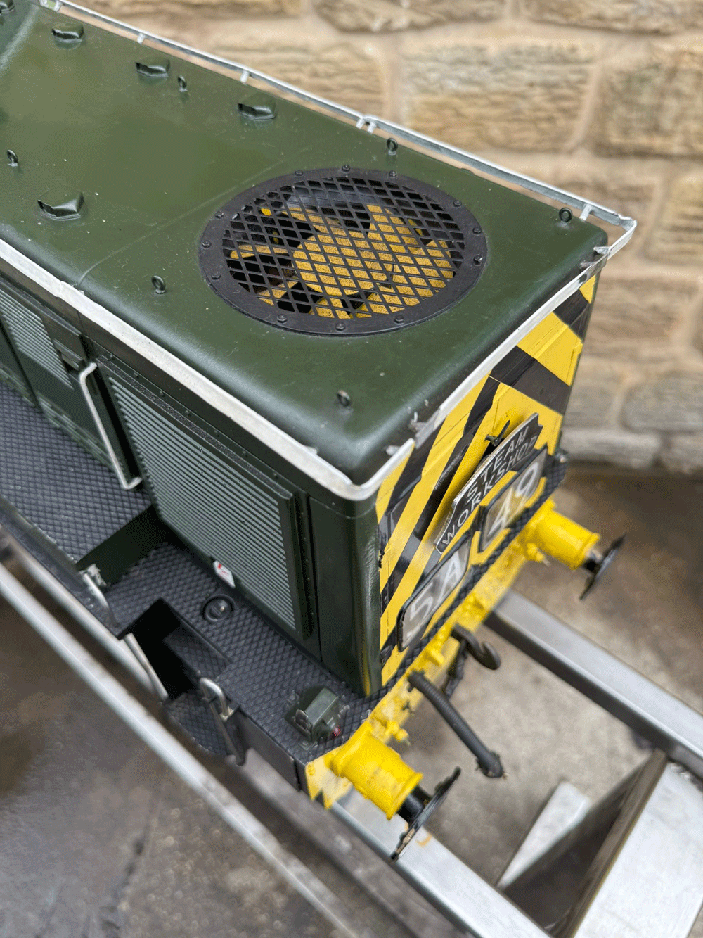 Here we have a rather lovely 5" gauge BR Class 14 'Teddy bear'. Made from the superbly detailed etched brass kit supplied by Phoenix, this is an extremely lovely model. The carriage is there to both ride on and to house the batteries to give the model a decent range, and indeed that whole set up works very well.