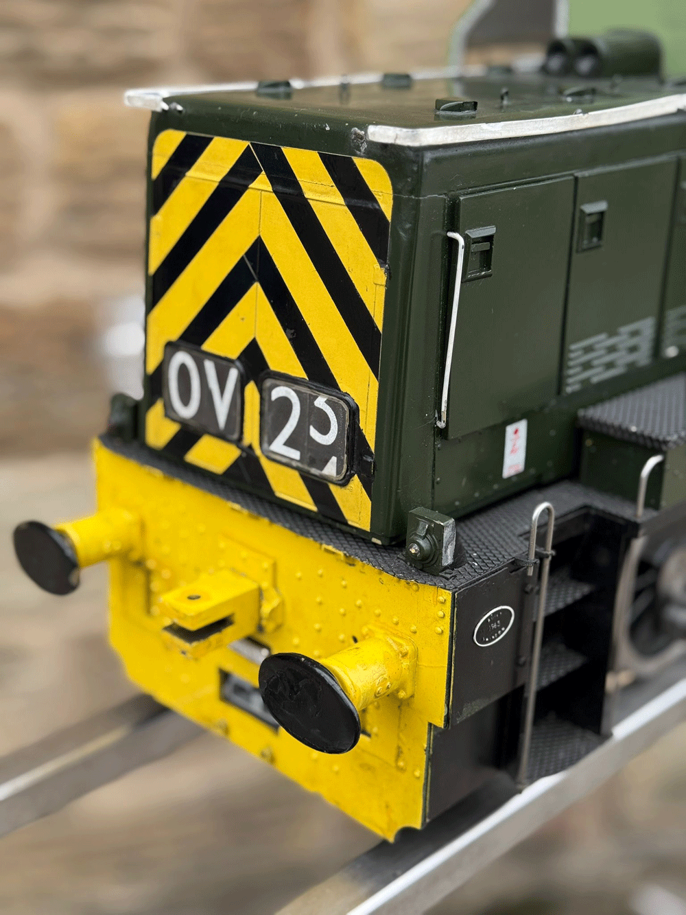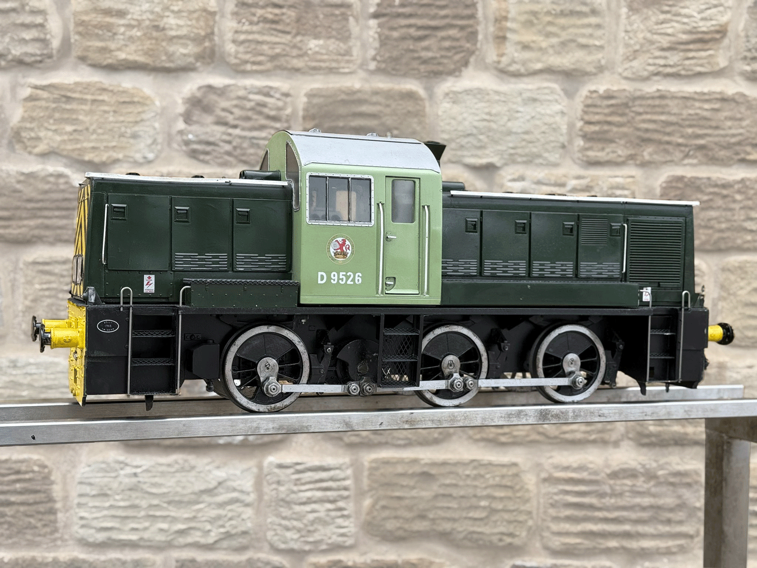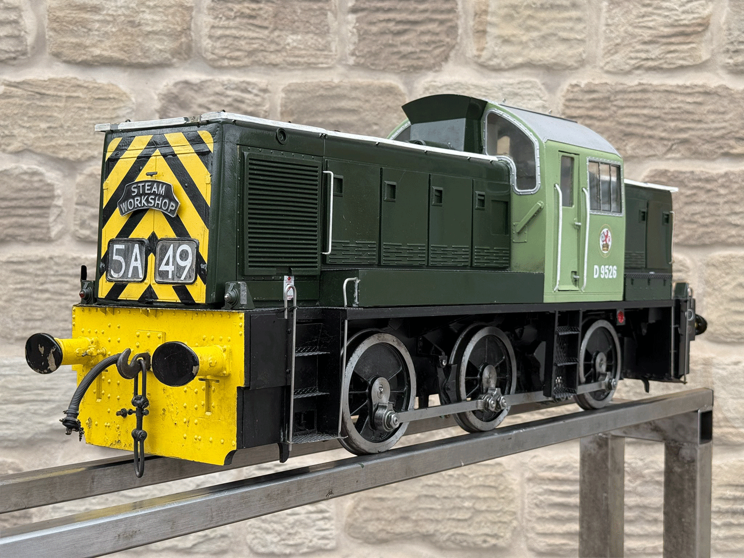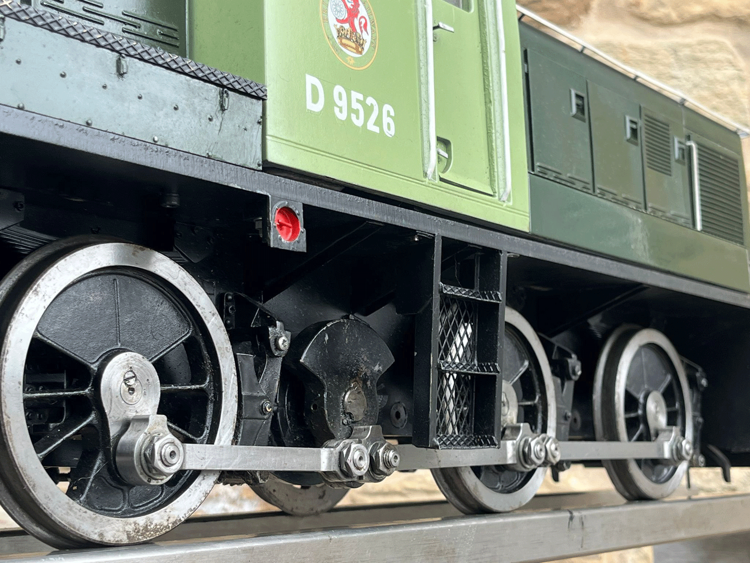 Here we have a rather lovely 5" gauge BR Class 14 'Teddy bear'. Made from the superbly detailed etched brass kit supplied by Phoenix, this is an extremely lovely model. The carriage is there to both ride on and to house the batteries to give the model a decent range, and indeed that whole set up works very well.