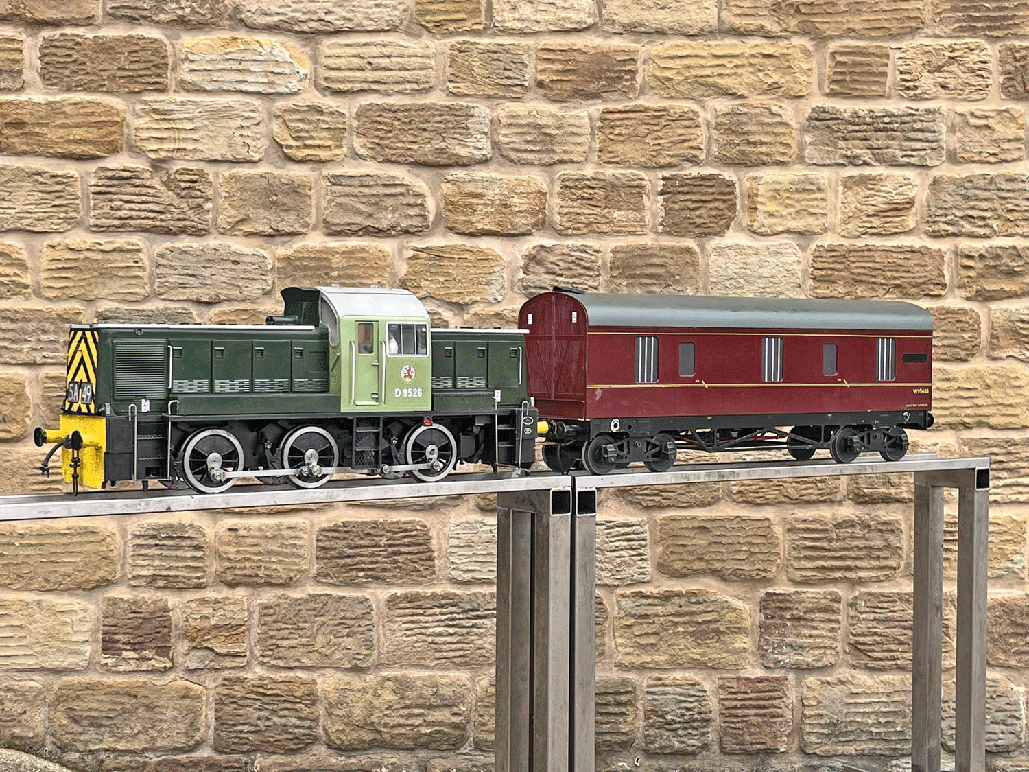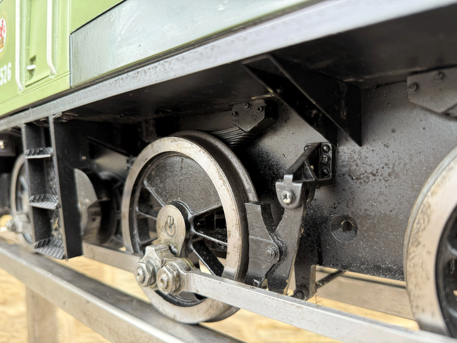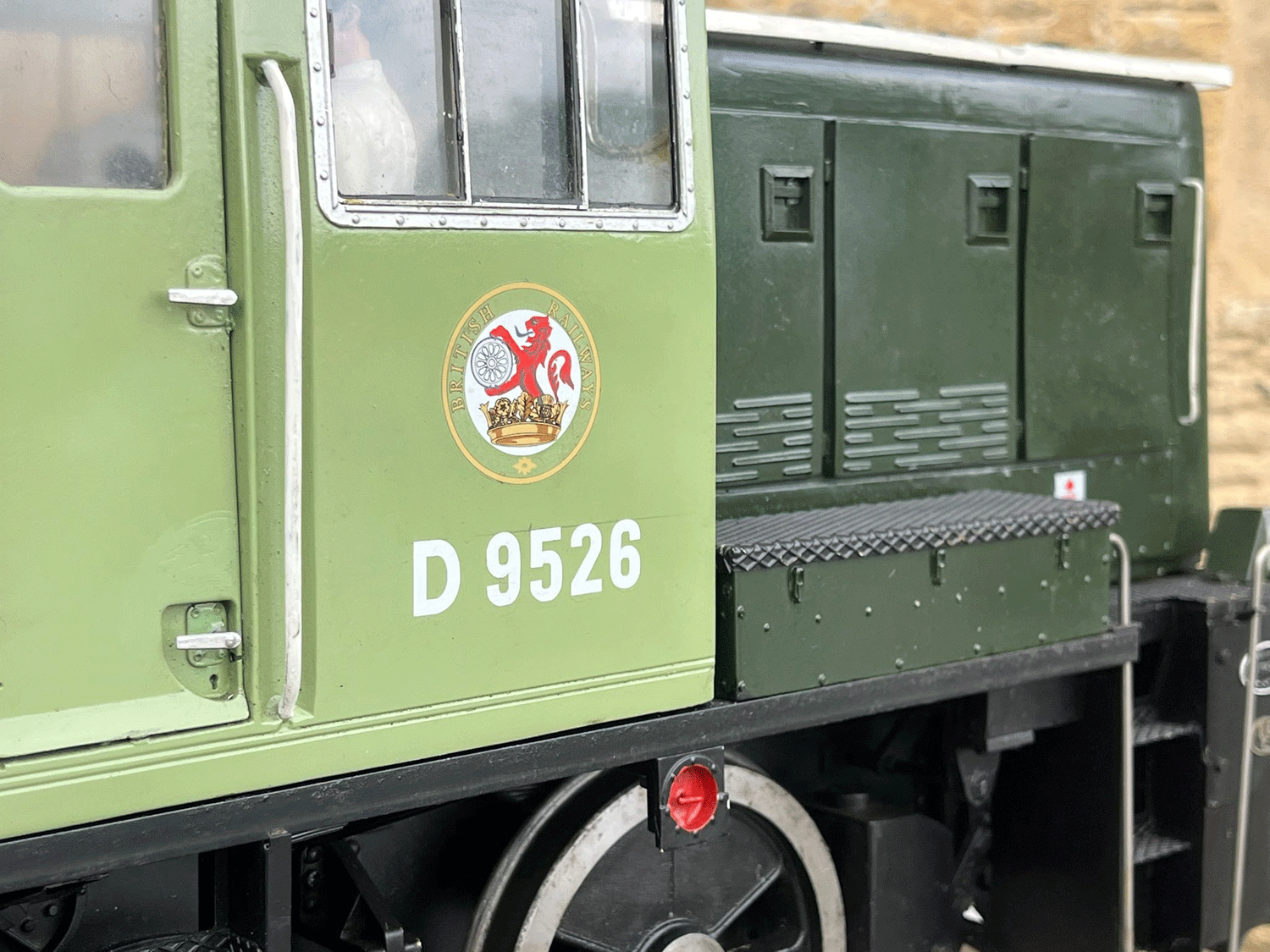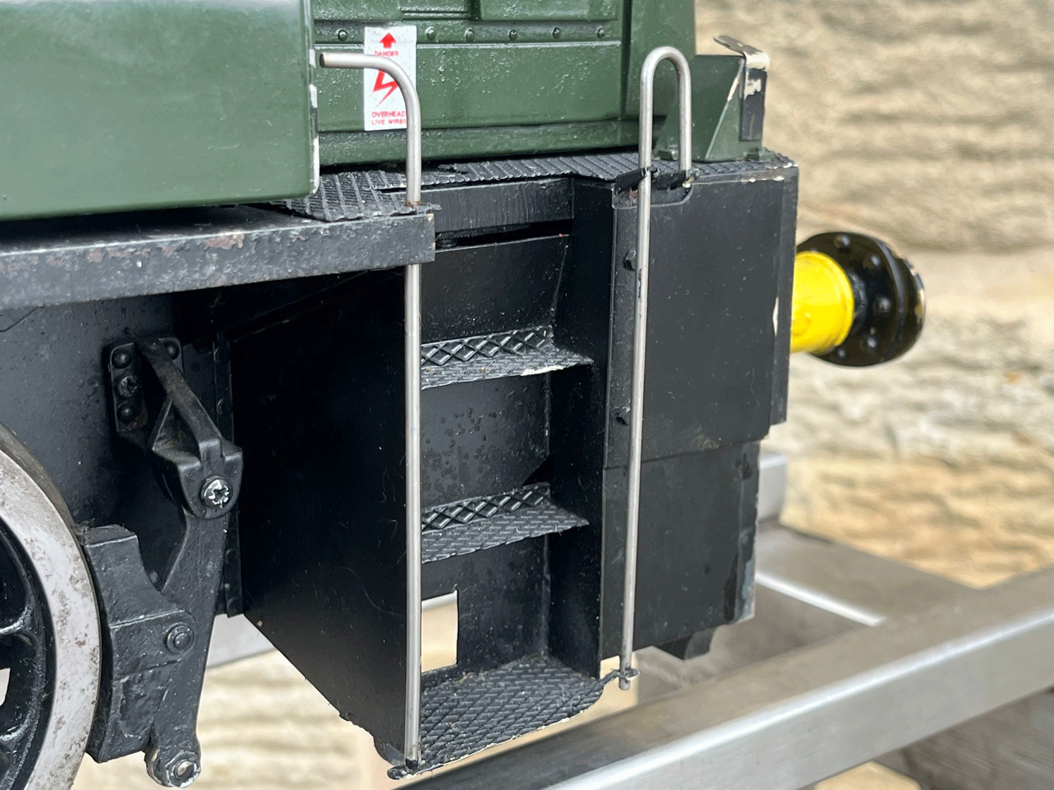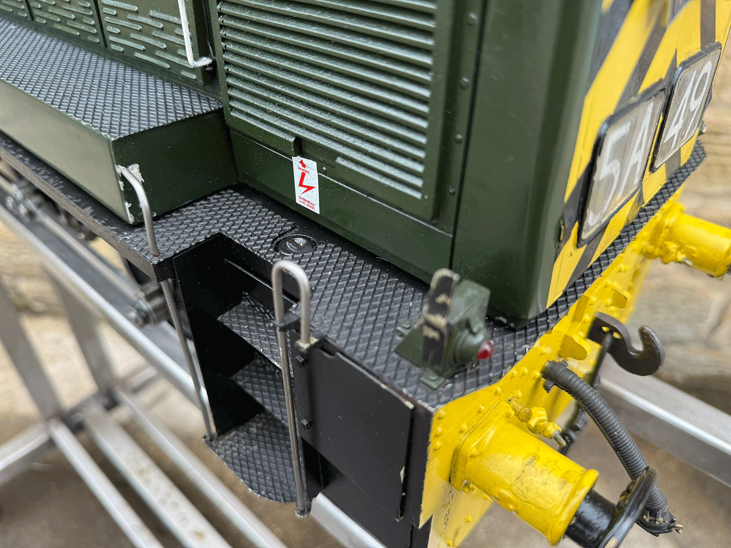 Here we have a rather lovely 5" gauge BR Class 14 'Teddy bear'. Made from the superbly detailed etched brass kit supplied by Phoenix, this is an extremely lovely model. The carriage is there to both ride on and to house the batteries to give the model a decent range, and indeed that whole set up works very well.