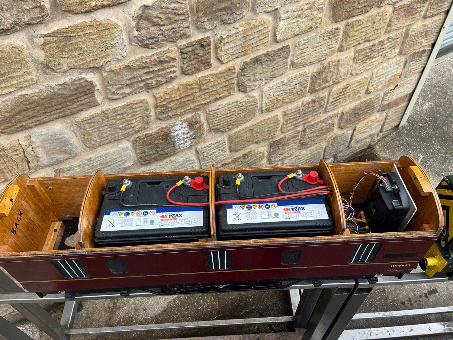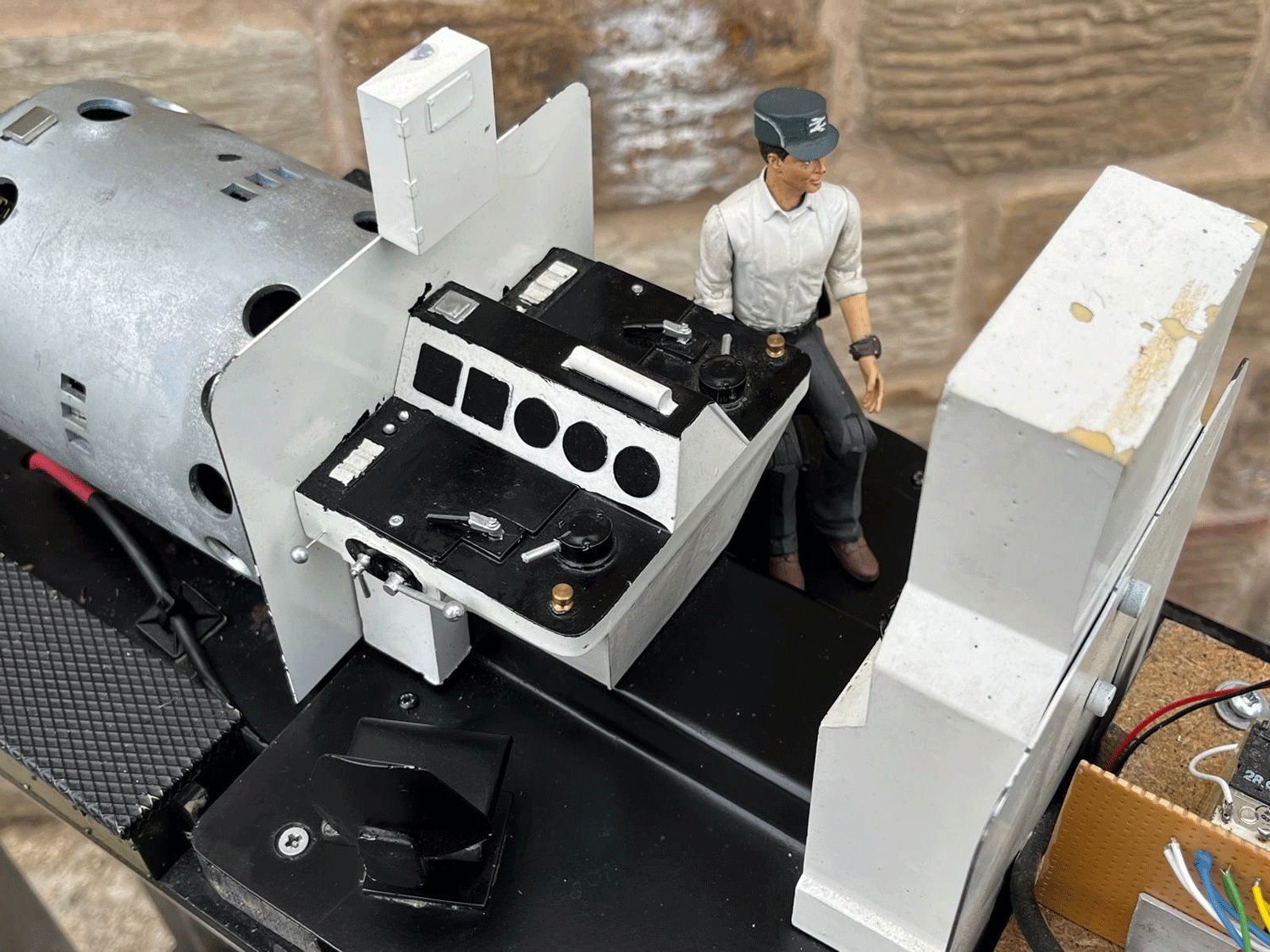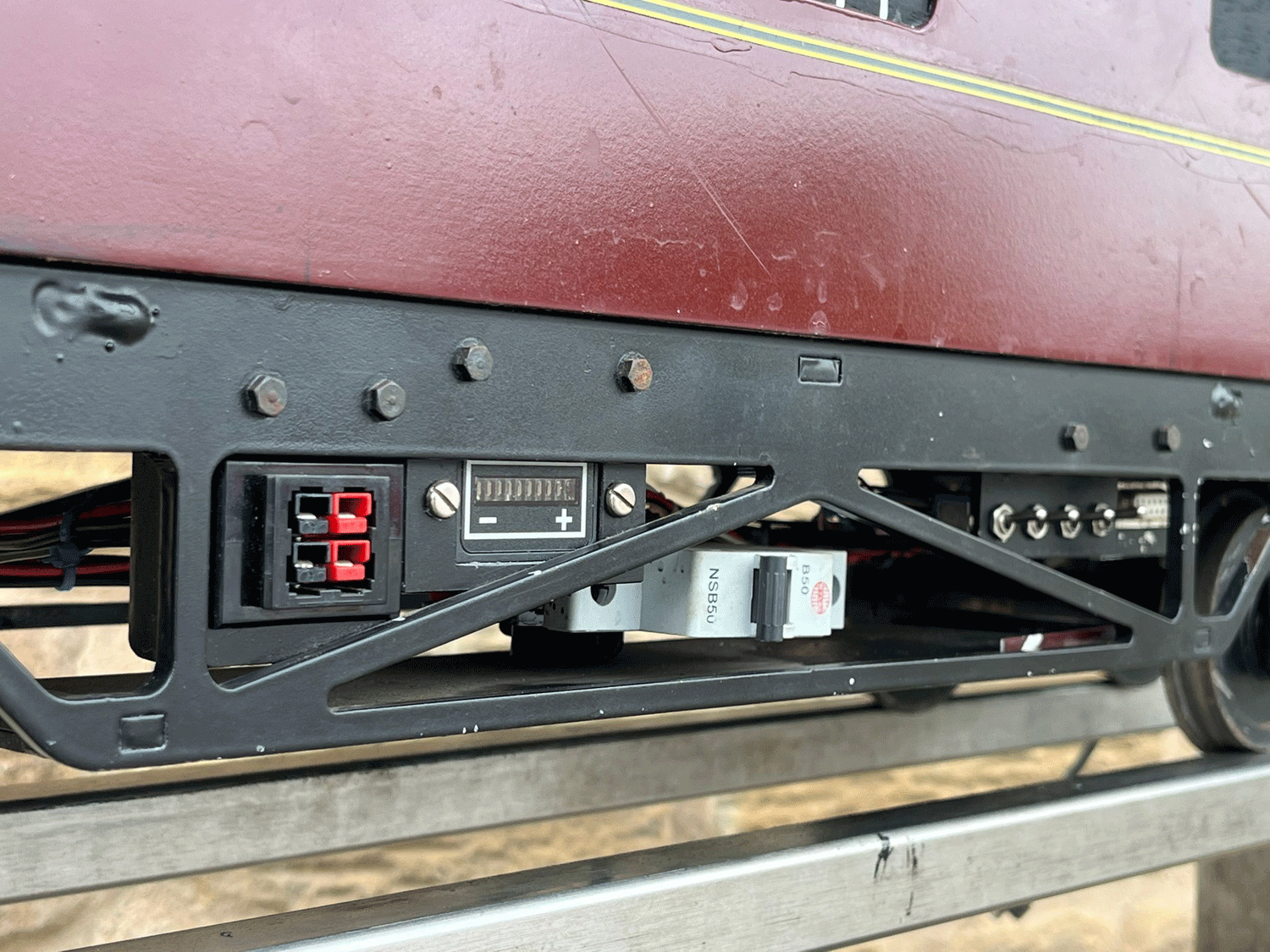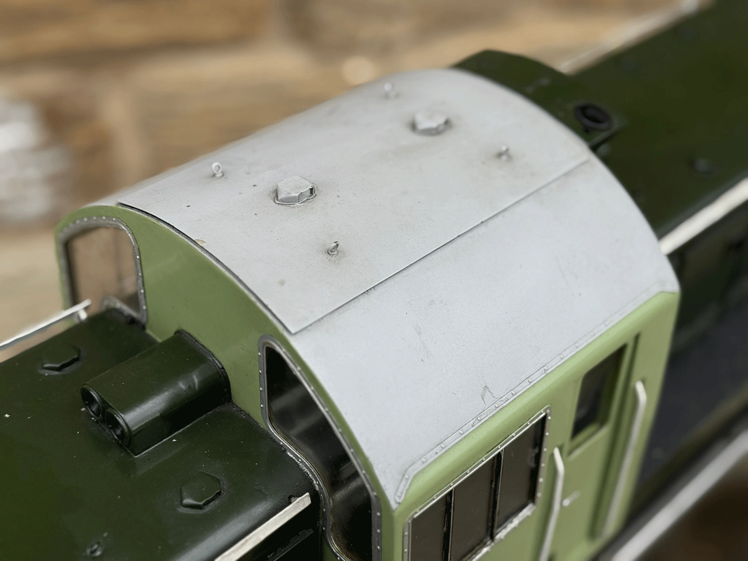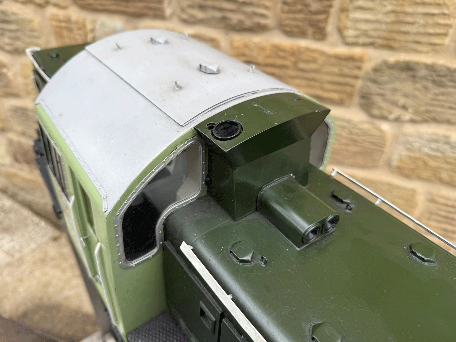 Here we have a rather lovely 5" gauge BR Class 14 'Teddy bear'. Made from the superbly detailed etched brass kit supplied by Phoenix, this is an extremely lovely model. The carriage is there to both ride on and to house the batteries to give the model a decent range, and indeed that whole set up works very well.