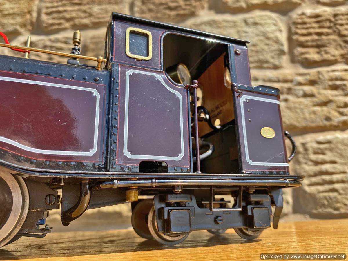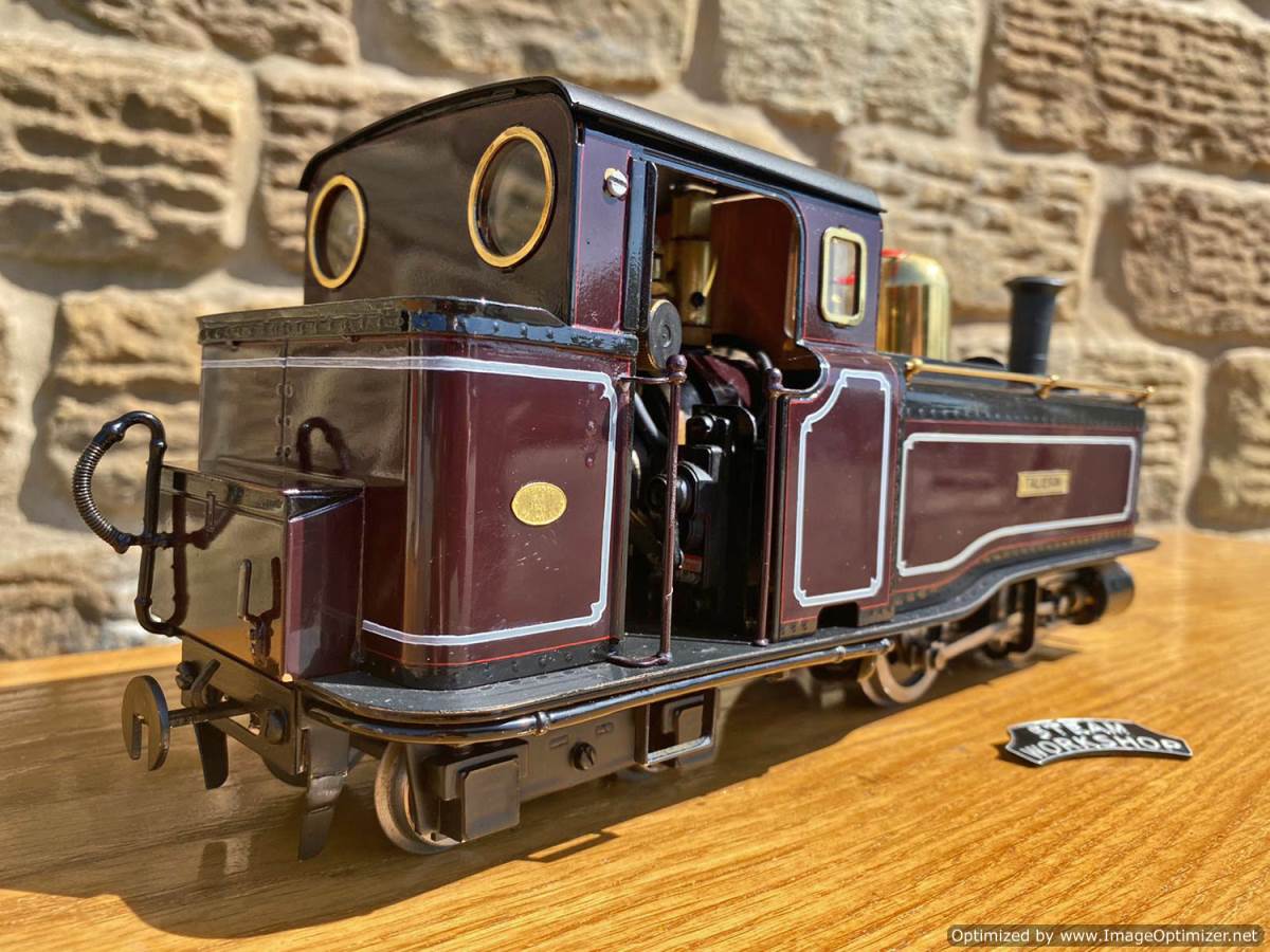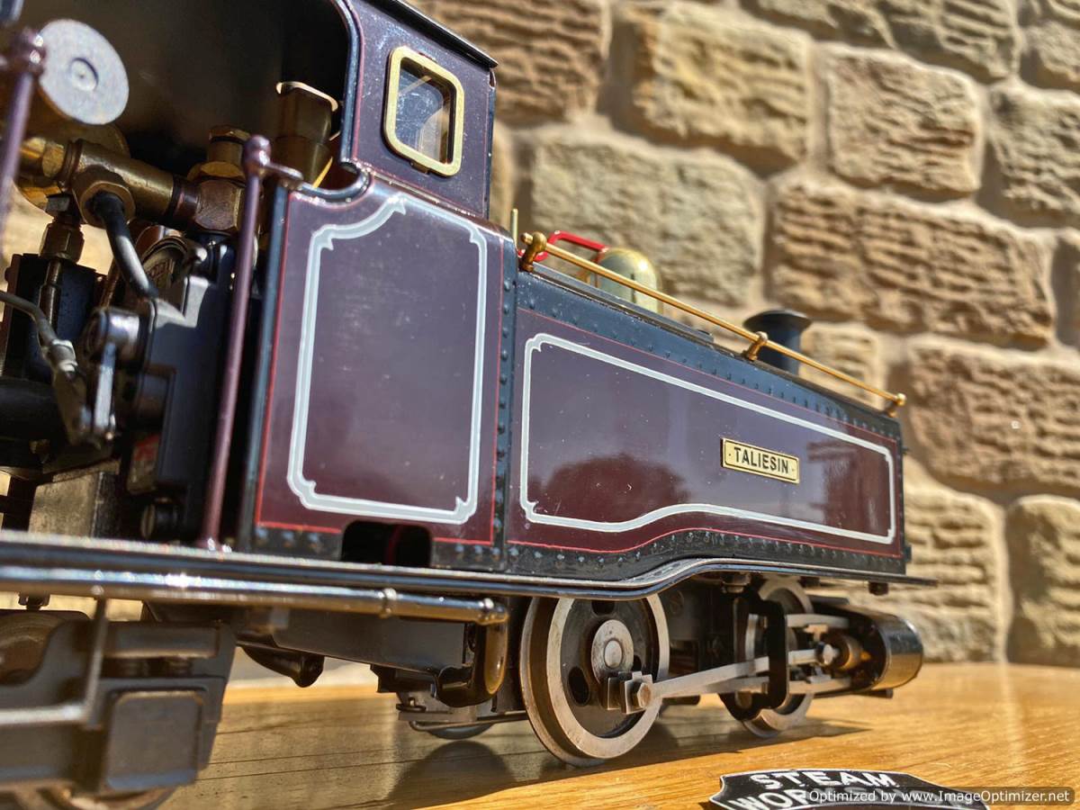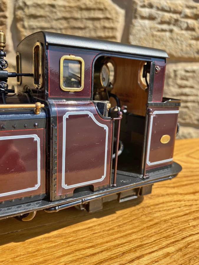 Here we have a 45mm version of the sought after Roundhouse Single Fairlie Taliesin. We've hand painted and lined this one here in our workshops and we are really pleased with the results. The inside of the cab is nicely scumbled and the livery is our version of the complex Ffestiniog's Victorian plumb. More information to follow but for now have a good look at the photos to hopefully give you a good idea!