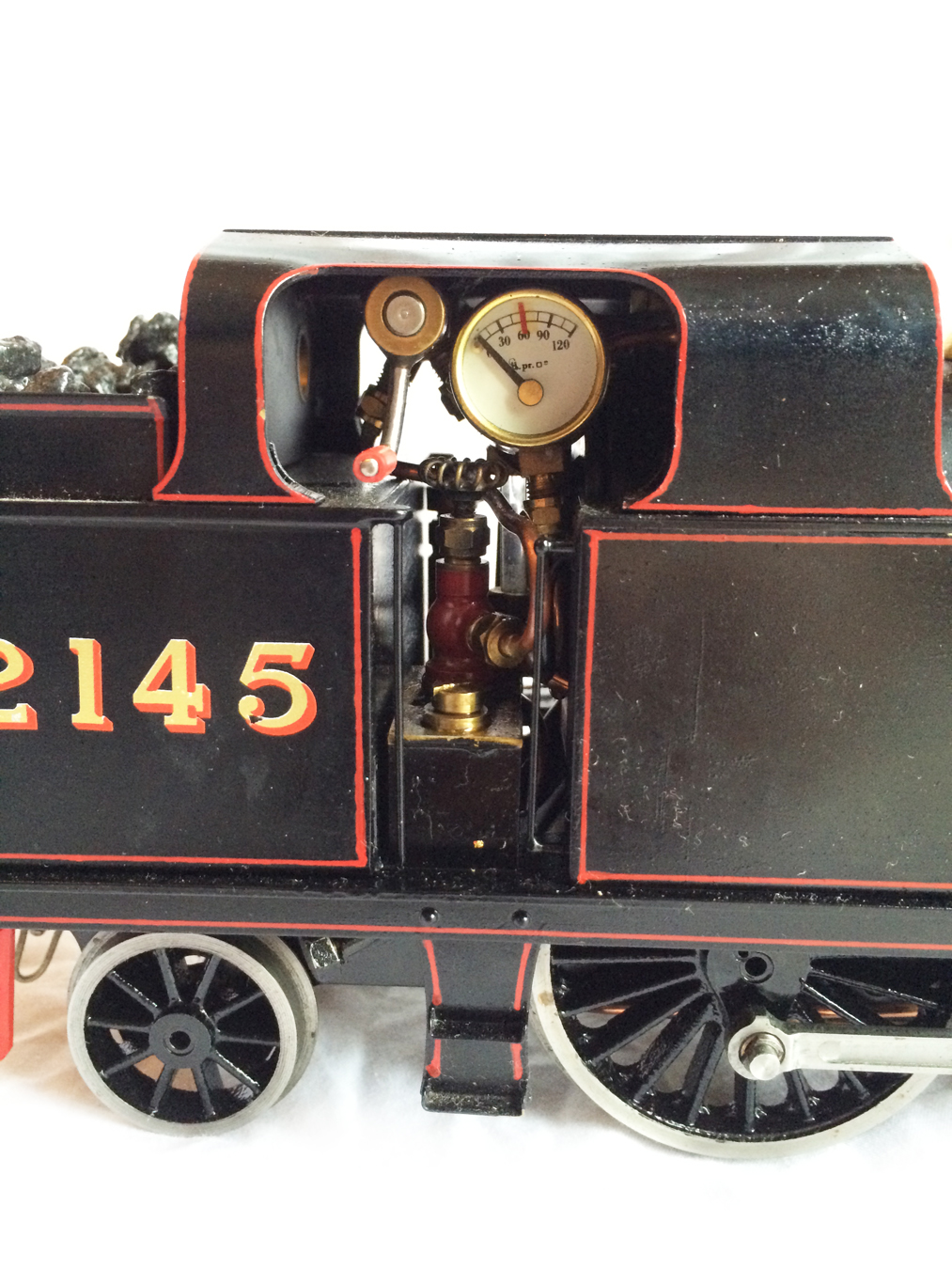 Here we have a rather lovely Gauge 1 live steam 4-4-0 Tilbury Tank. It's been very neatly scratch built and finished by a skilled and experienced modeler,..... and runs like a sewing machine. More details will of course follow very shortly, but for now, here's a bunch of photos for you to pour over.