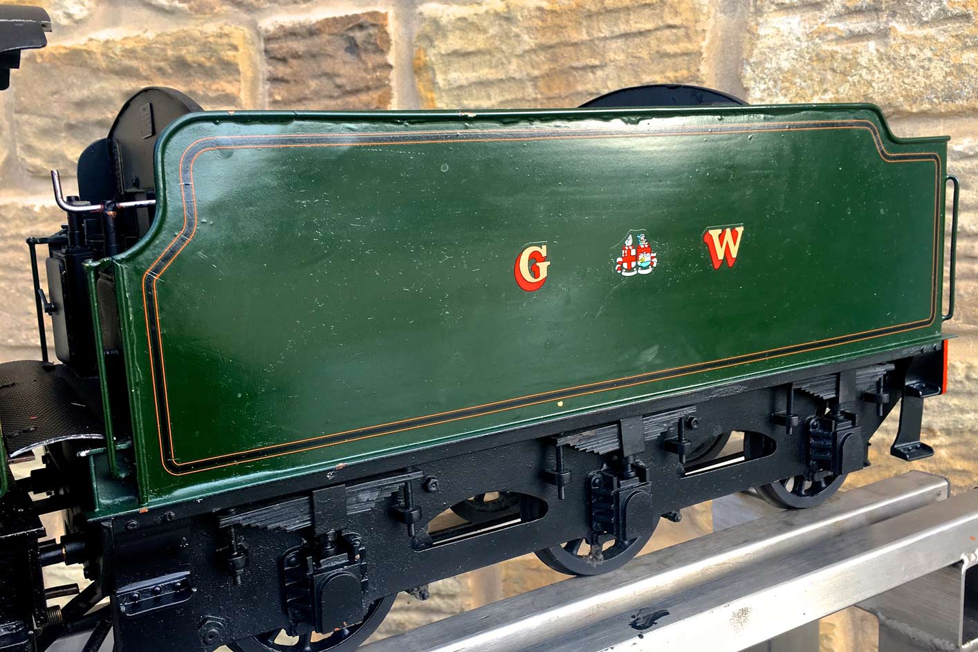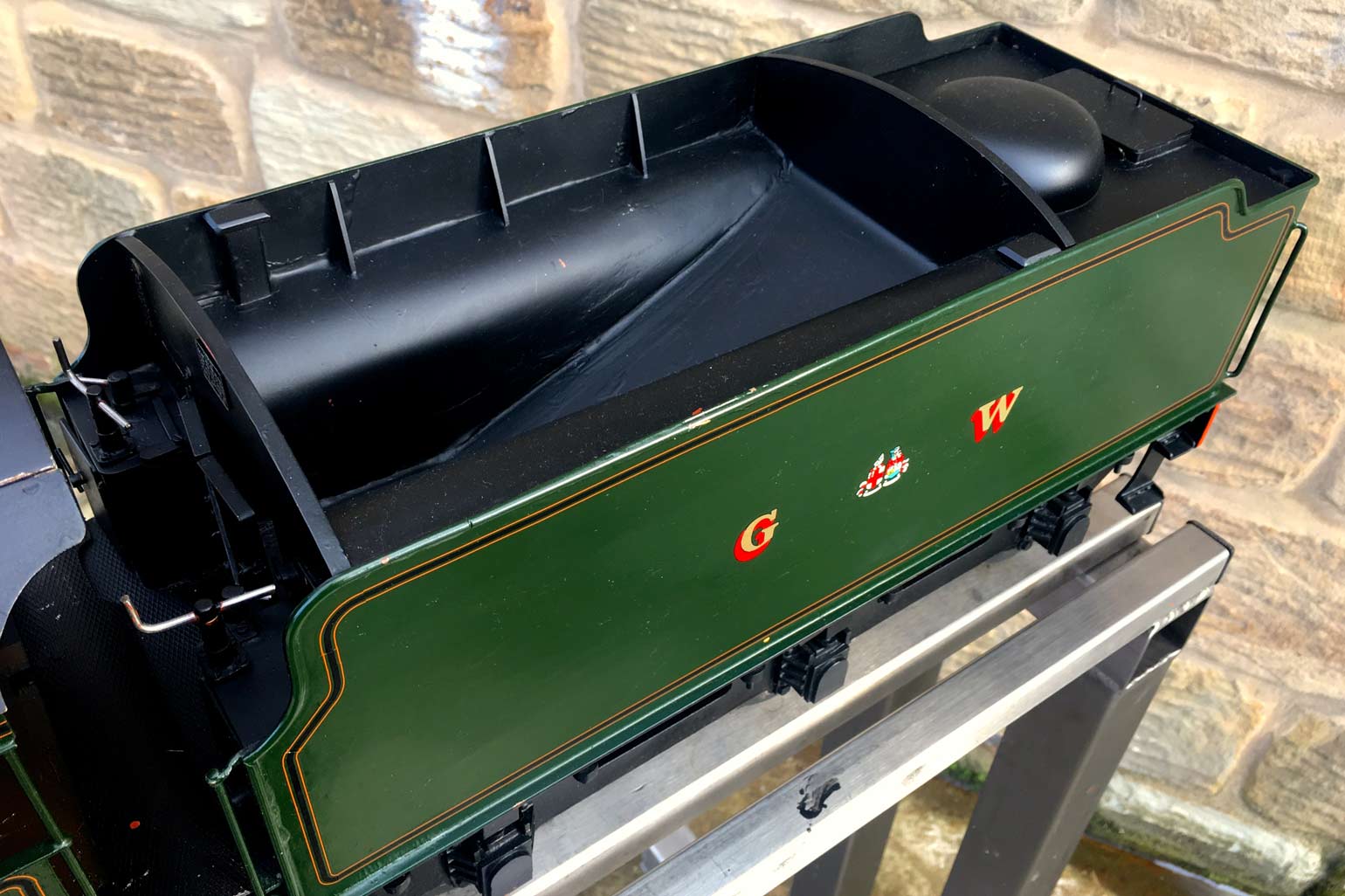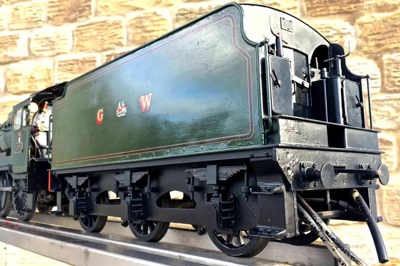Here we have a nicely made 3 1/2" GWR Hawksworth County, 1004 'County of Somerset'.  We've had a few GWR counties through before and they make a nice looking model, and the design certainly seems to perform well.  There's a lot of nice detail on this one, the model engineer has certainly taken his time on the build and not just built to the drawings.  The tender particularly, as you'll see from the photos has a very good level of detail with all the tool lockers there and working,...... not something that you usually find on a 3 1/2" model.