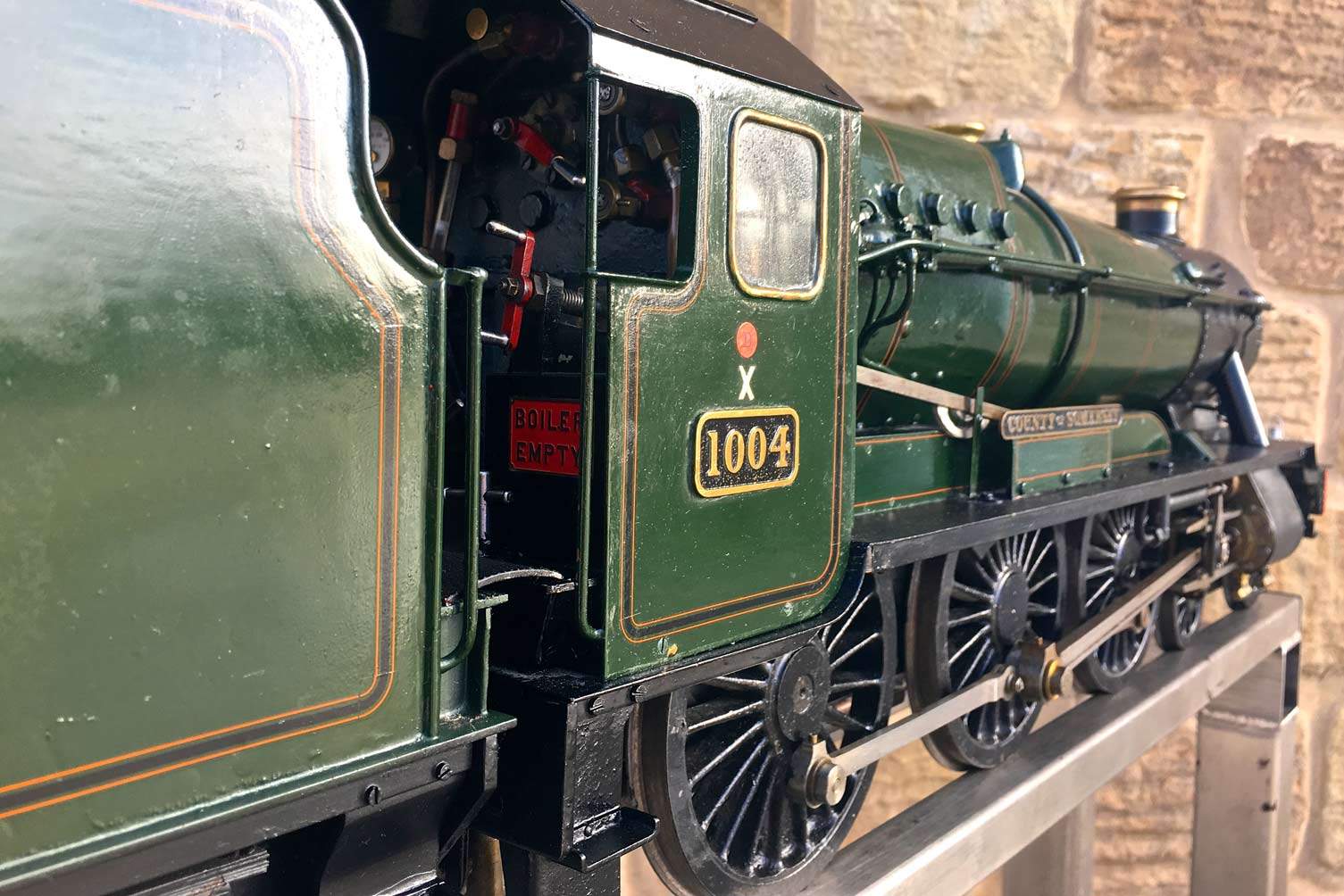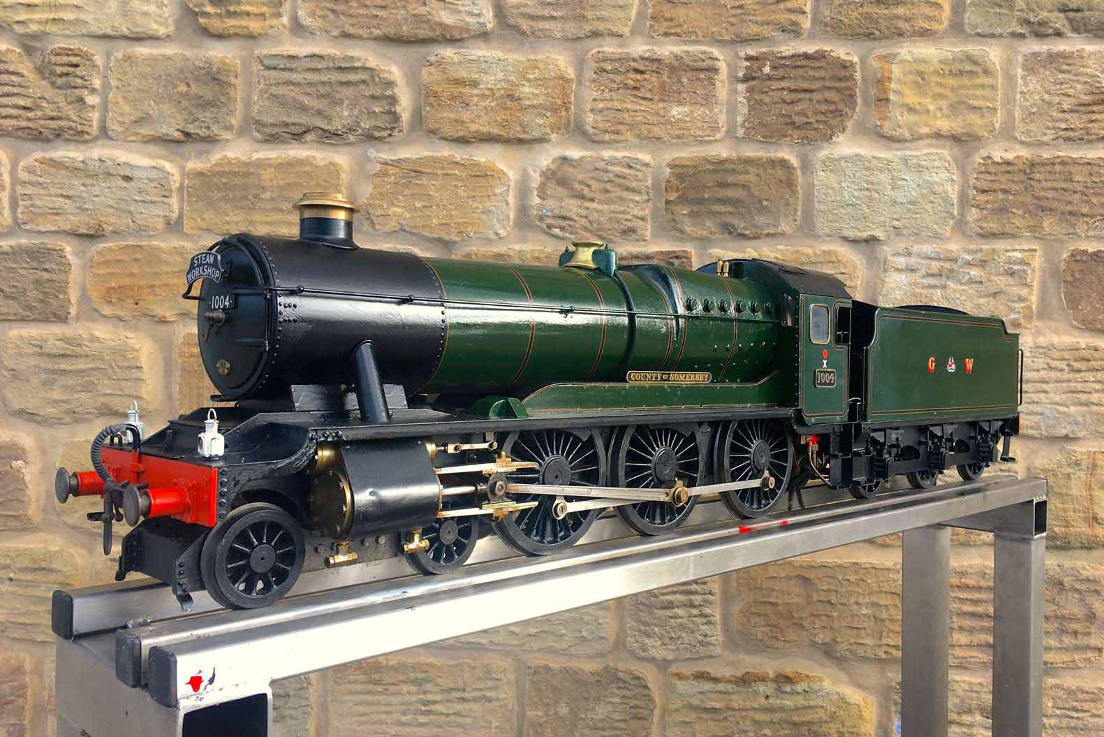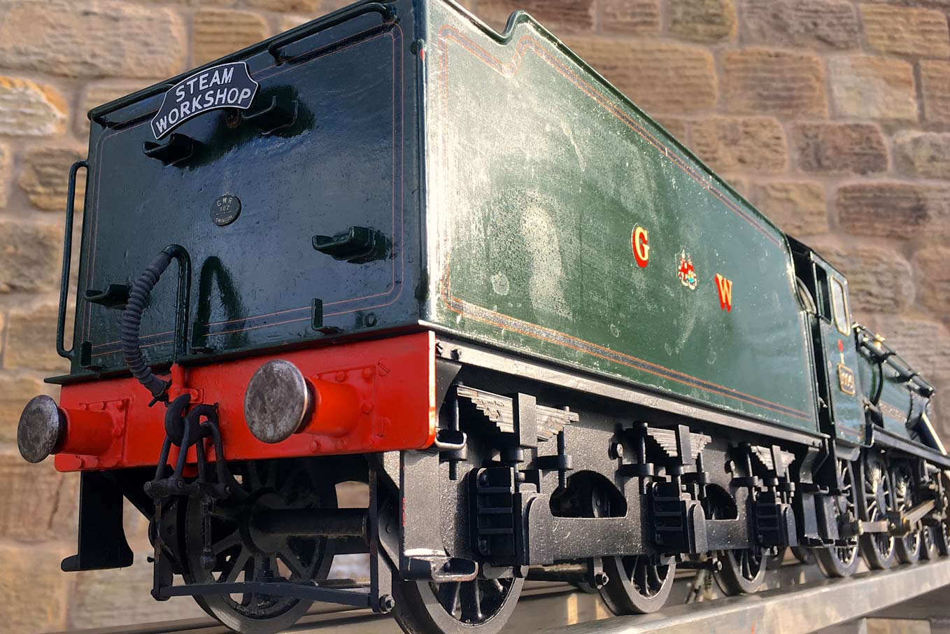 Here we have a nicely made 3 1/2" GWR Hawksworth County, 1004 'County of Somerset'.  We've had a few GWR counties through before and they make a nice looking model, and the design certainly seems to perform well.  There's a lot of nice detail on this one, the model engineer has certainly taken his time on the build and not just built to the drawings.  The tender particularly, as you'll see from the photos has a very good level of detail with all the tool lockers there and working,...... not something that you usually find on a 3 1/2" model.