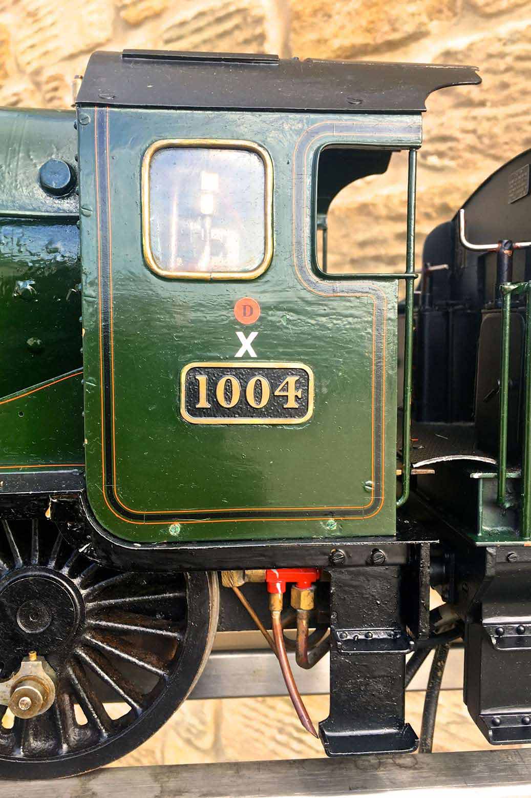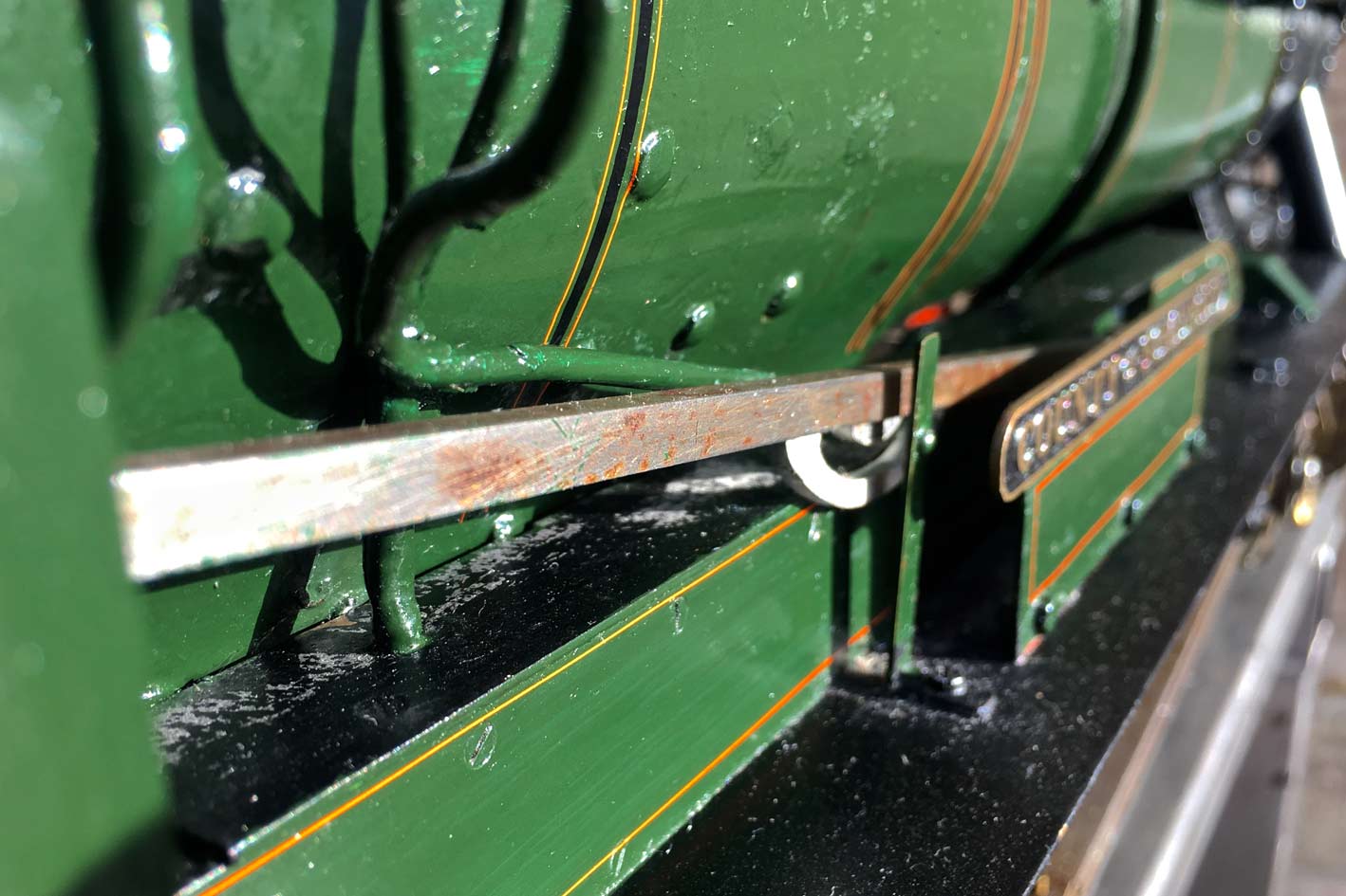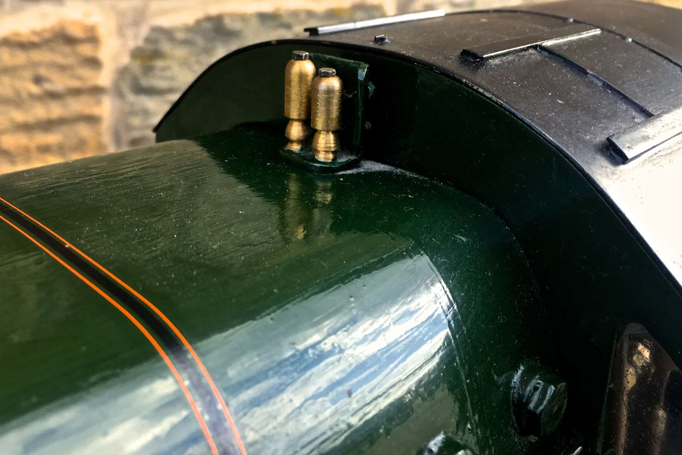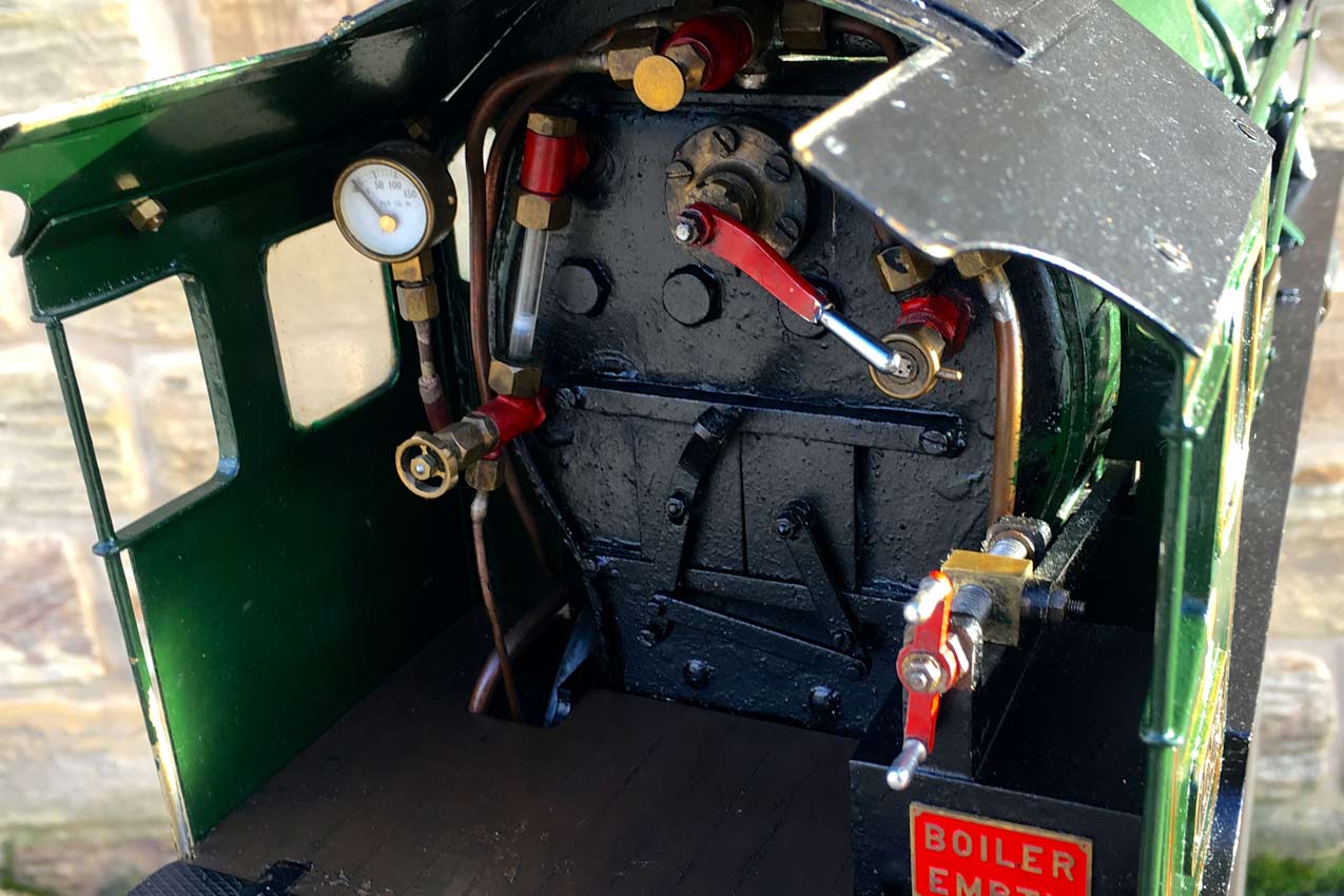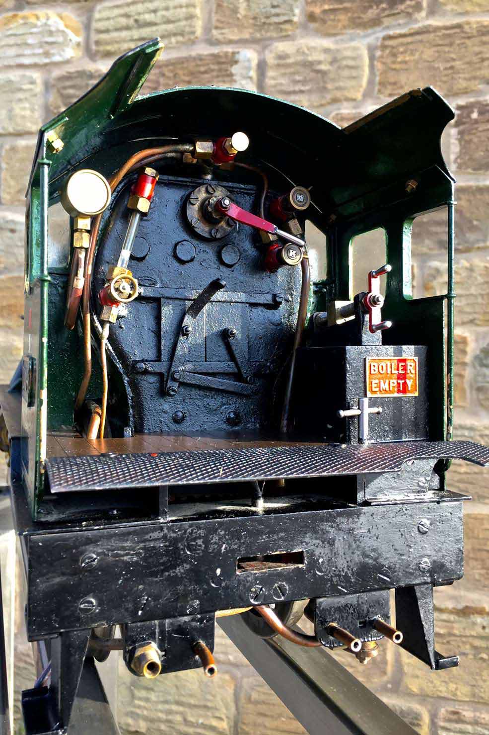 Fitted with an injector, a crosshead pump on the right hand side and a hand pump in the tender.  Lubrication is mechaical and hidden under the front running board in the usual manor.  The boiler is silver soldered copper and can come with the usual twice working pressure hydraulic test and fresh annual steam test.