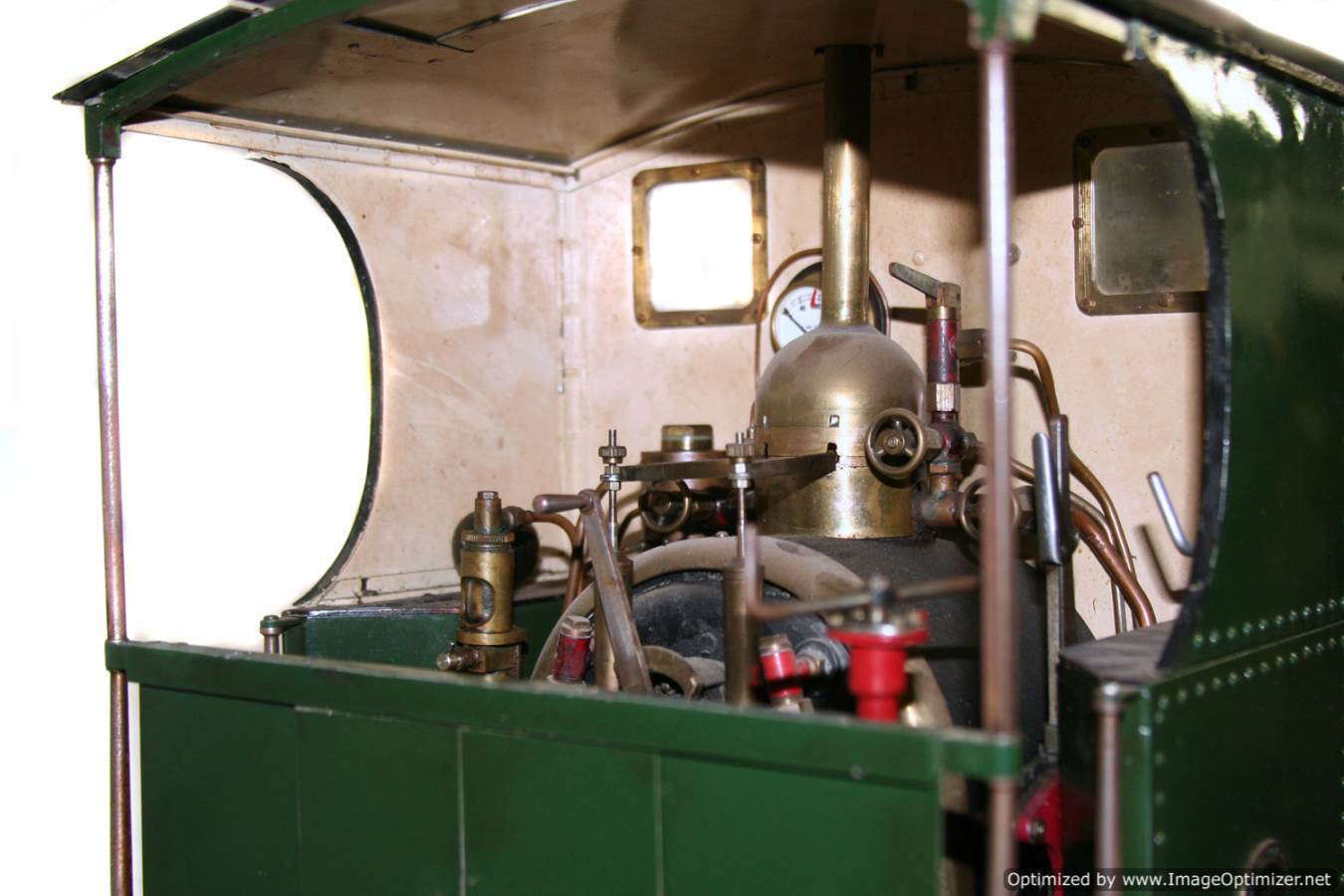 The Photos should hopefully give you a good idea of the quality of the workmanship, and the finish, which in this case is tidy and neat rather than exhibition quality. We are quite taken with this little beauty, it's a very lovely thing in the flesh. Two types of lubrication fitted, there is a mechanical on the running board, and there is a displacement with a sight feed on the footplate. Draincocks are footplate operated, and there is an injector, an axle pump and footplate mounted bypass,..... and the ubiquitous emergency hand pump sneaked away tidily in the dummy coal bunker inside the cab.