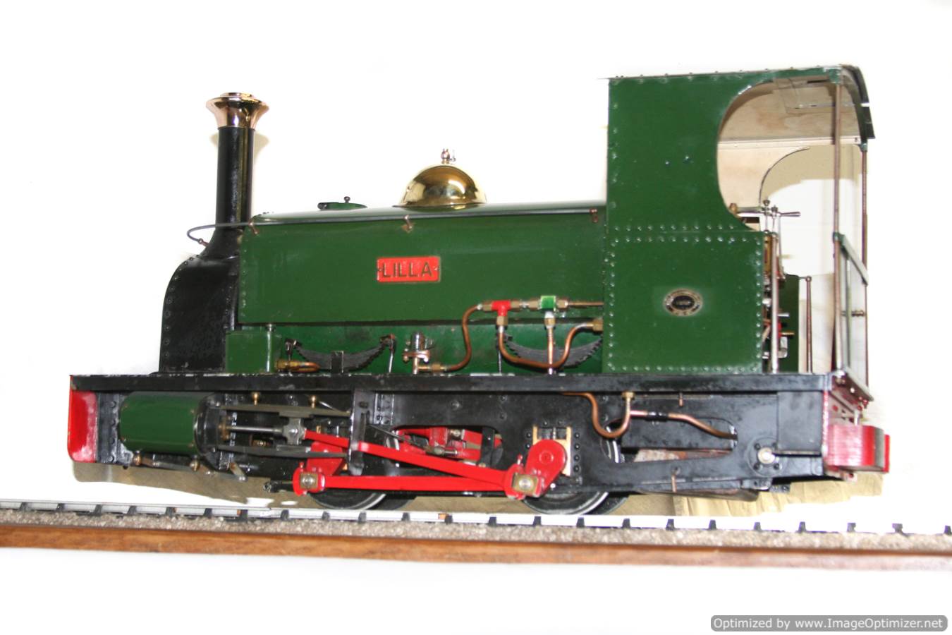 Here we have a rather lovely 3 1/2" gauge 'Port' class quarry Hunslet to the 'Lilla' design by Ross Harrison. It isn't one of the much more common, Martin Evans' designed 'Conway' models which is actually a freelance design. 'Lilla' works out at quite a large model in 3 1/2", as big as your average 5" gauge Butch, Chub, Ajax,..... even getting close to the size of a Simplex. It's also a satisfyingly prototypically accurate model.